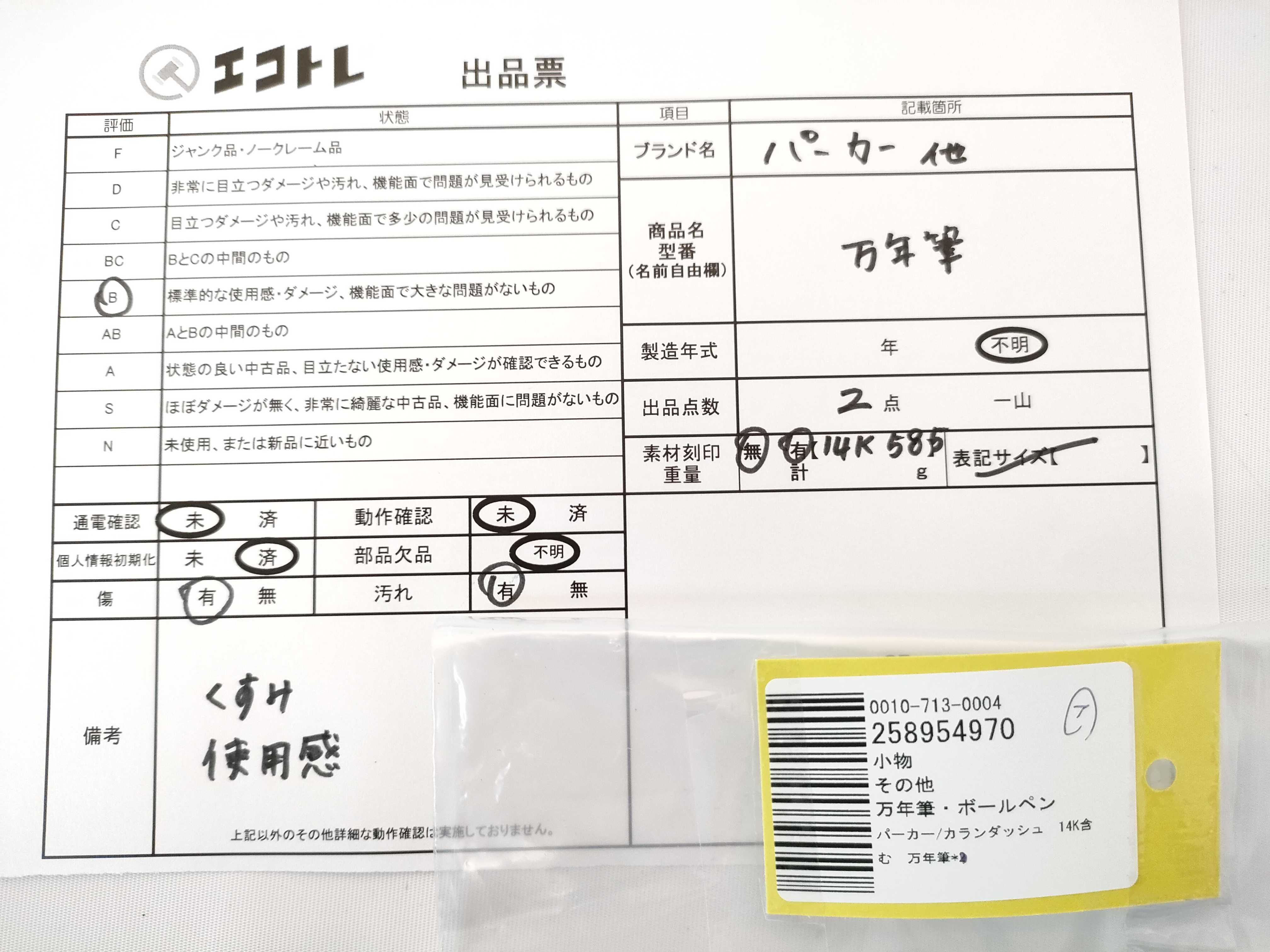 商品内容によって、JITBOXなどでの発送となる可能性がございます事ご理解下さい。年式などの商品情報詳細は写真にてご確認願います。※ご入札の際はご利用規約をよくお読みになってからのご参加お願いします。","タイプライン":"","カテゴリ":"小物","形状コード":"ペン・万年筆","付属品コード":"","シリアル・シール・型番":""