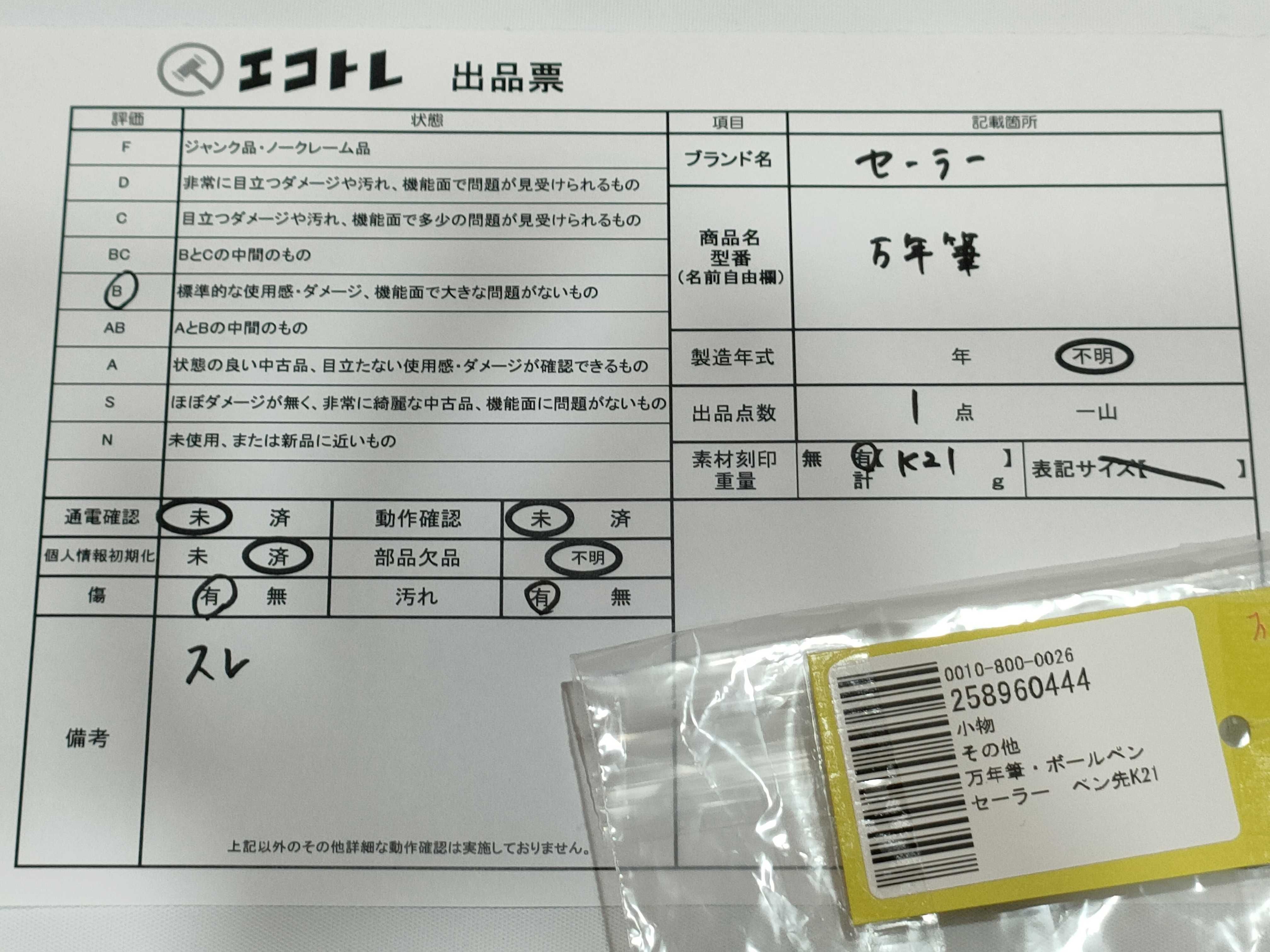 商品内容によって、JITBOXなどでの発送となる可能性がございます事ご理解下さい。年式などの商品情報詳細は写真にてご確認願います。※ご入札の際はご利用規約をよくお読みになってからのご参加お願いします。","タイプライン":"","カテゴリ":"小物","形状コード":"ペン・万年筆","付属品コード":"","シリアル・シール・型番":""