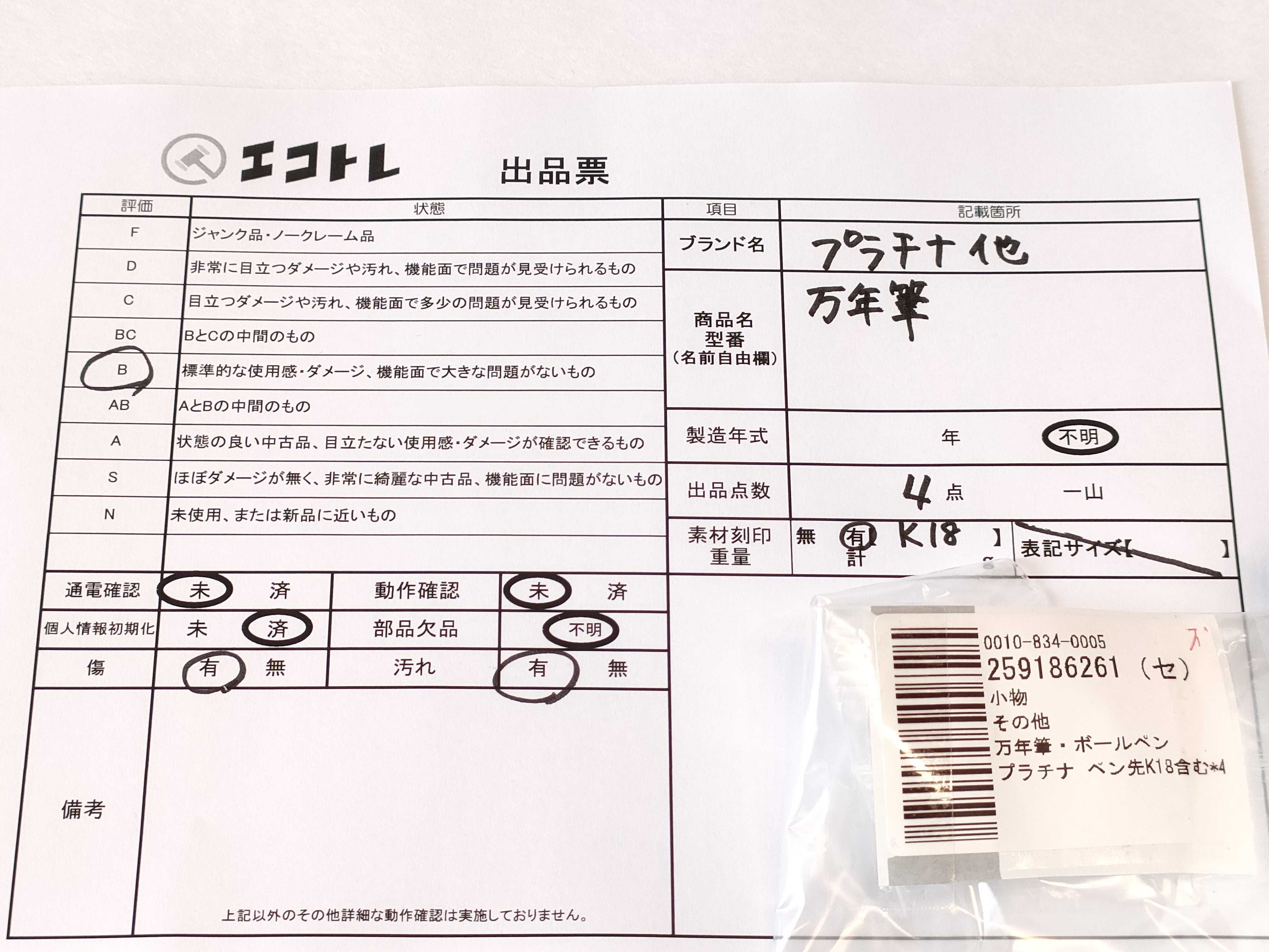 商品内容によって、JITBOXなどでの発送となる可能性がございます事ご理解下さい。年式などの商品情報詳細は写真にてご確認願います。※ご入札の際はご利用規約をよくお読みになってからのご参加お願いします。","タイプライン":"","カテゴリ":"小物","形状コード":"ペン・万年筆","付属品コード":"","シリアル・シール・型番":""