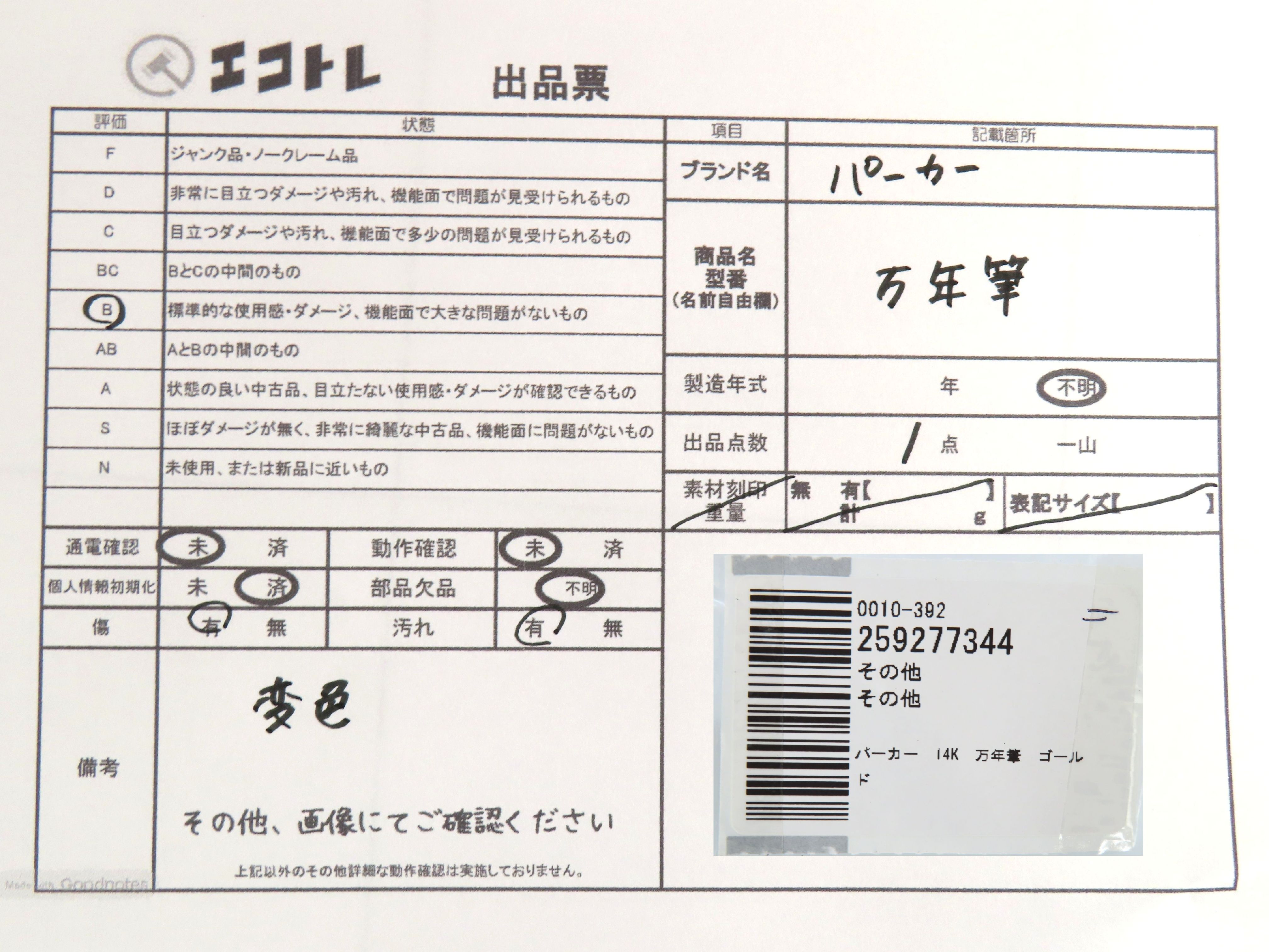 商品内容によって、JITBOXなどでの発送となる可能性がございます事ご理解下さい。年式などの商品情報詳細は写真にてご確認願います。※ご入札の際はご利用規約をよくお読みになってからのご参加お願いします。","タイプライン":"","カテゴリ":"小物","形状コード":"ペン・万年筆","付属品コード":"","シリアル・シール・型番":""