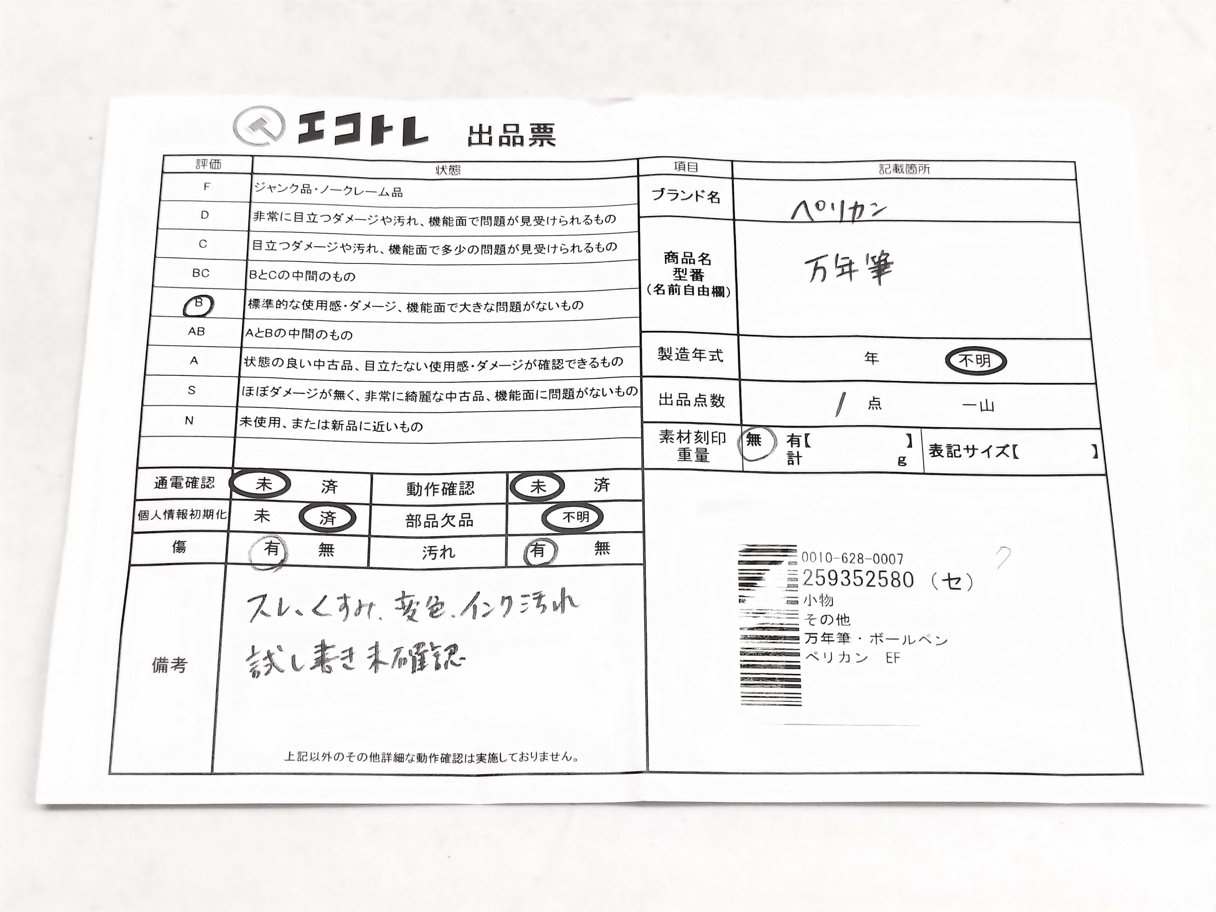 商品内容によって、JITBOXなどでの発送となる可能性がございます事ご理解下さい。年式などの商品情報詳細は写真にてご確認願います。※ご入札の際はご利用規約をよくお読みになってからのご参加お願いします。","タイプライン":"","カテゴリ":"小物","形状コード":"ペン・万年筆","付属品コード":"","シリアル・シール・型番":""