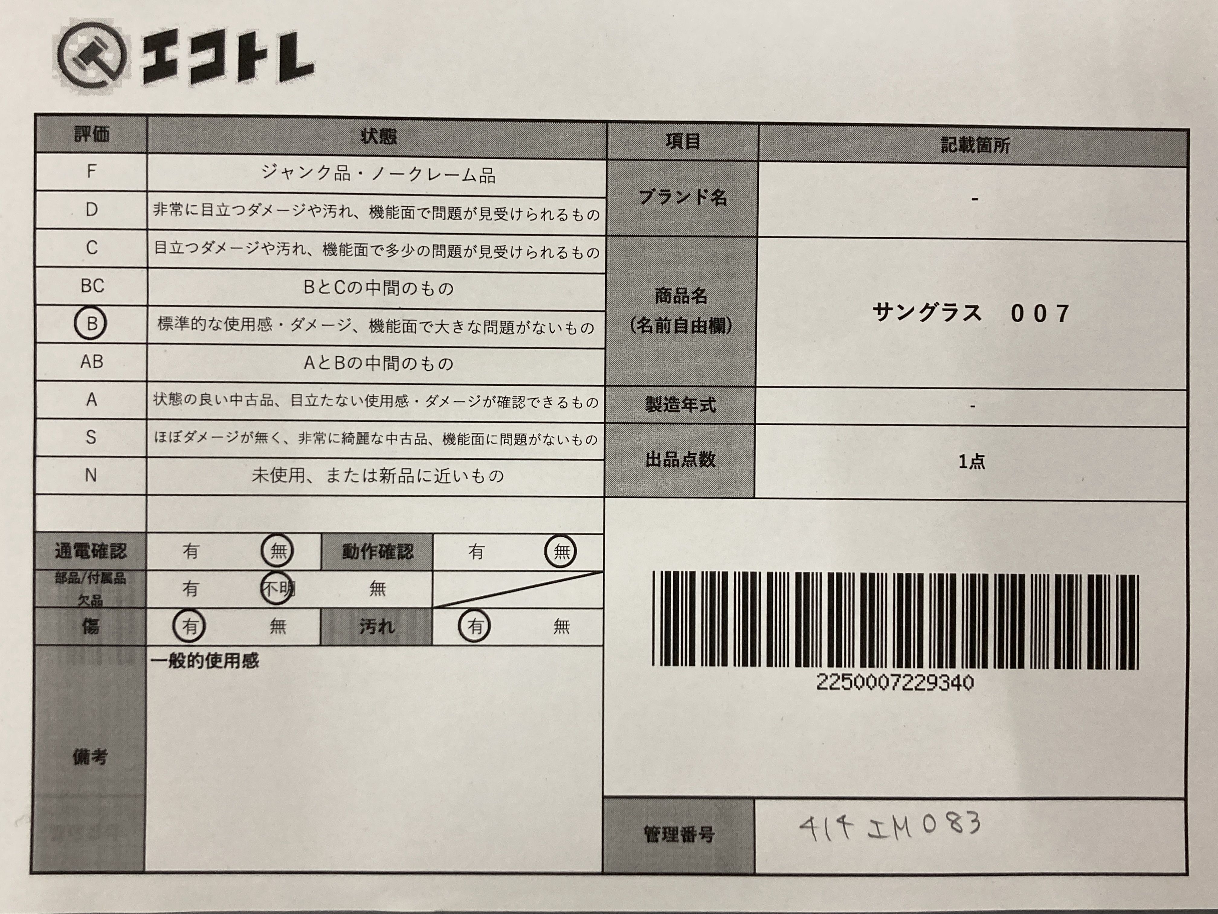 ◆CAN’T SHIPPING TO USA◆商品内容によって、JITBOXなどでの発送となる可能性がございます事ご理解下さい。年式などの商品情報詳細は写真にてご確認願います。※ご入札の際はご利用規約をよくお読みになってからのご参加お願いします。","タイプライン":"","カテゴリ":"小物","形状コード":"サングラス・メガネ","付属品コード":"","シリアル・シール・型番":""