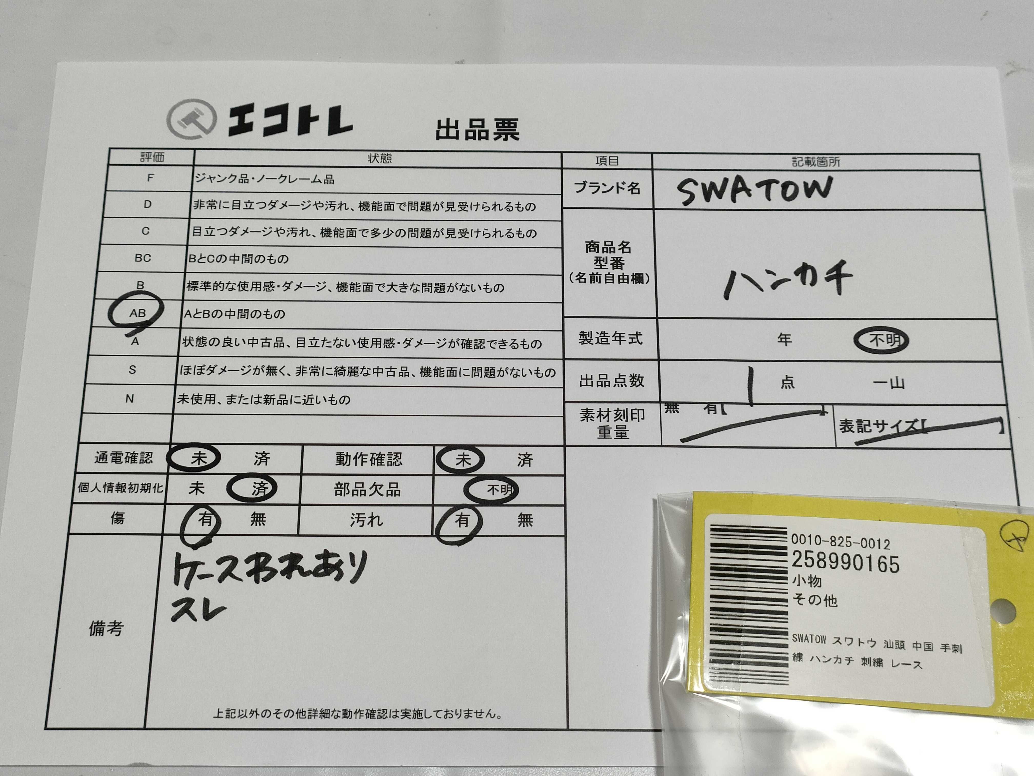 (J_0872)▼SWATOW スワトウ 汕頭 中国 手刺繍 ハンカチ 刺繍 レース その他小物