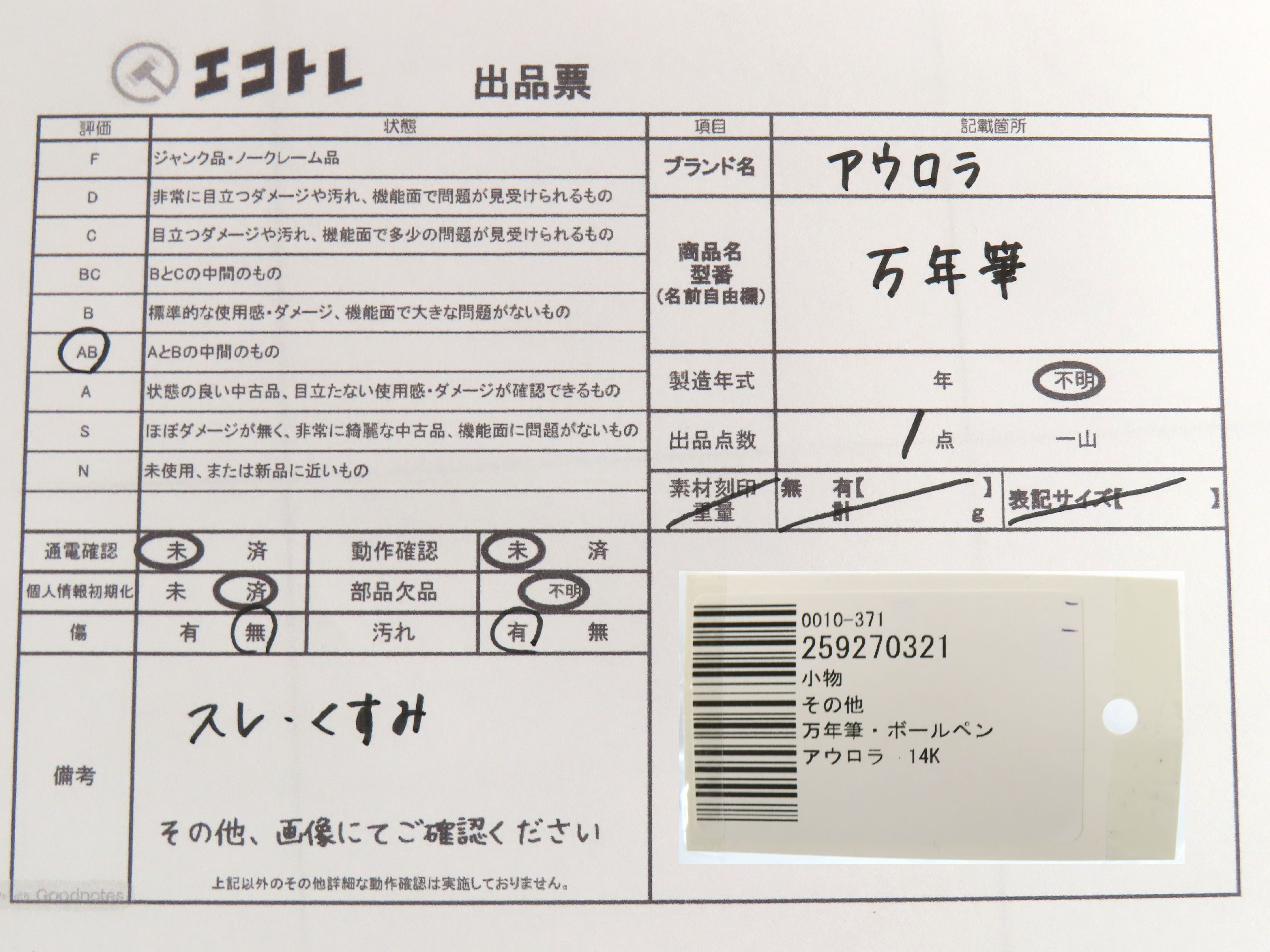 商品内容によって、JITBOXなどでの発送となる可能性がございます事ご理解下さい。年式などの商品情報詳細は写真にてご確認願います。※ご入札の際はご利用規約をよくお読みになってからのご参加お願いします。","タイプライン":"","カテゴリ":"小物","形状コード":"ペン・万年筆","付属品コード":"","シリアル・シール・型番":""