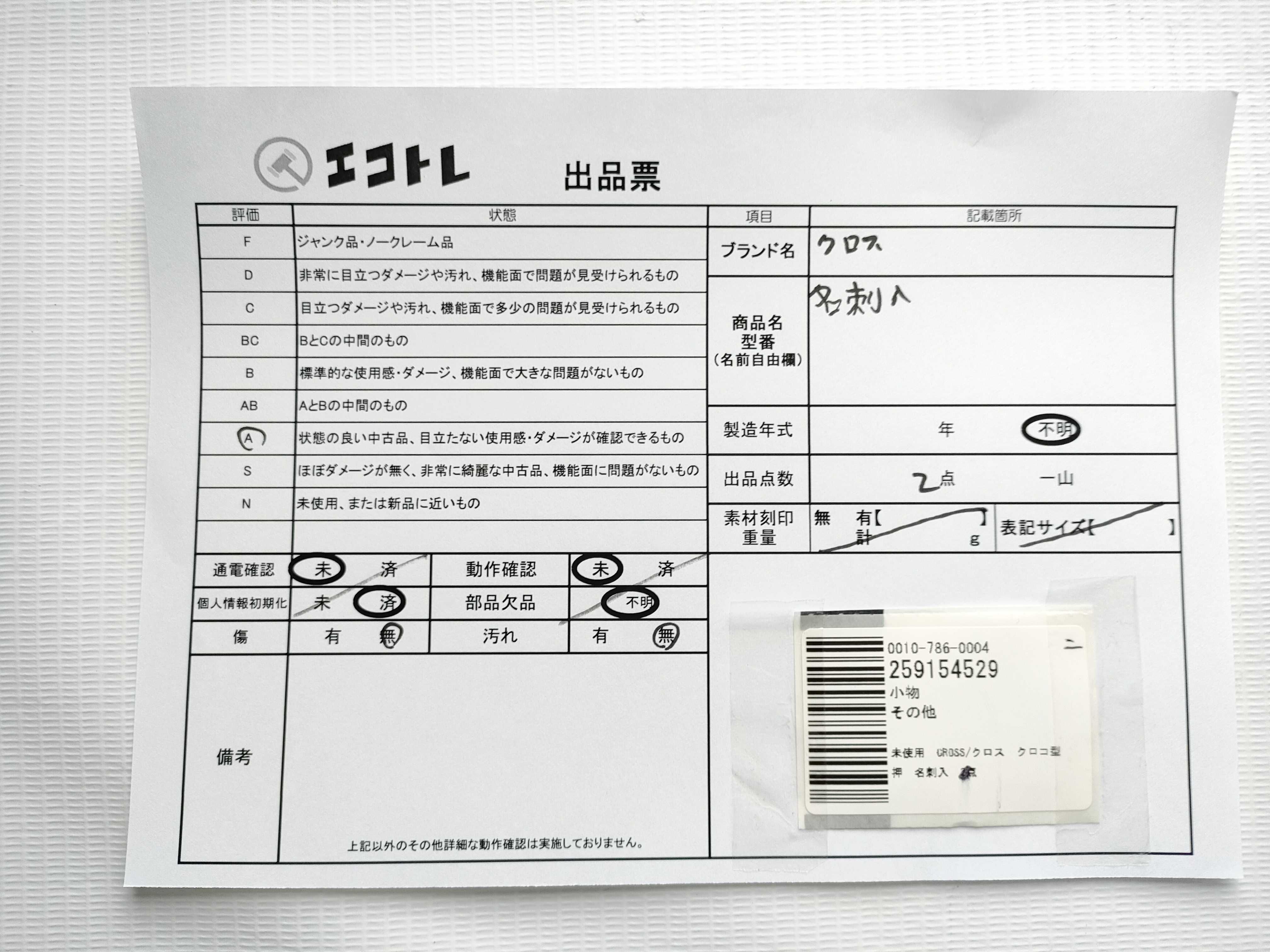 商品内容によって、JITBOXなどでの発送となる可能性がございます事ご理解下さい。年式などの商品情報詳細は写真にてご確認願います。※ご入札の際はご利用規約をよくお読みになってからのご参加お願いします。","タイプライン":"","カテゴリ":"小物","形状コード":"その他小物","付属品コード":"","シリアル・シール・型番":""