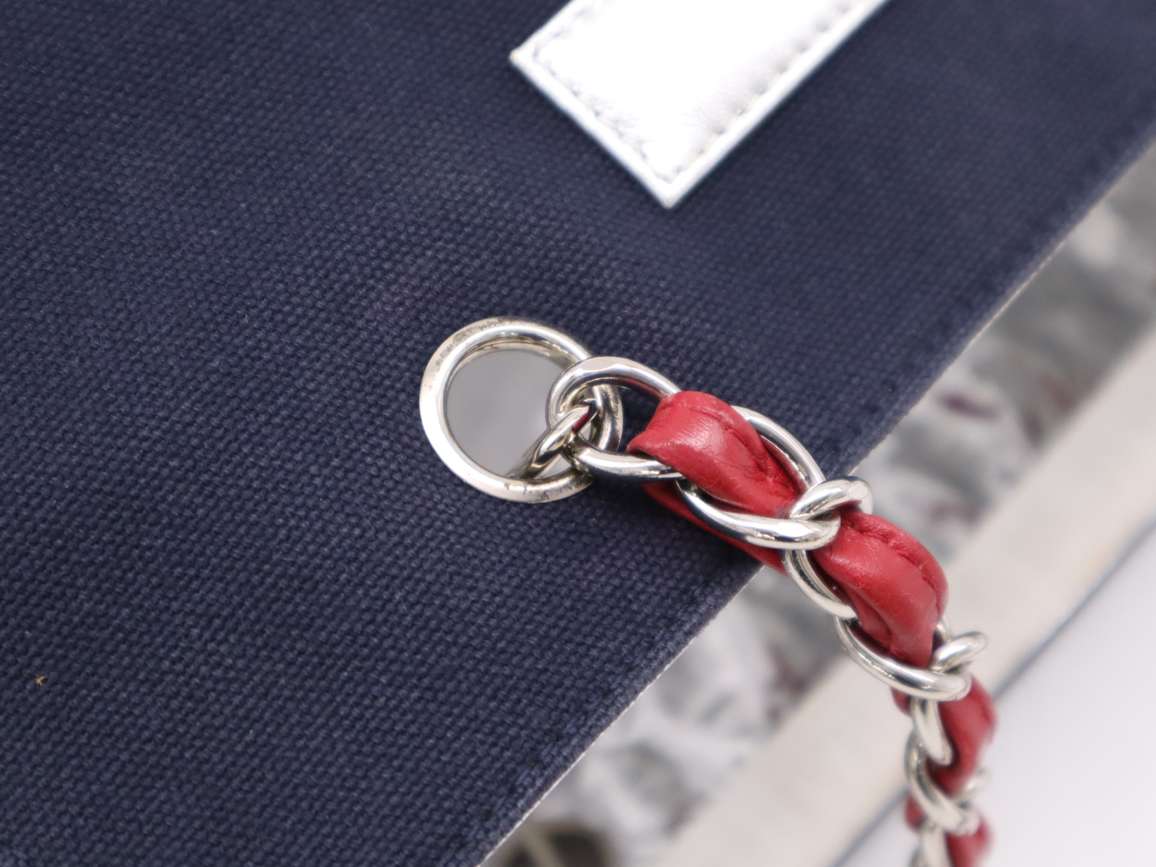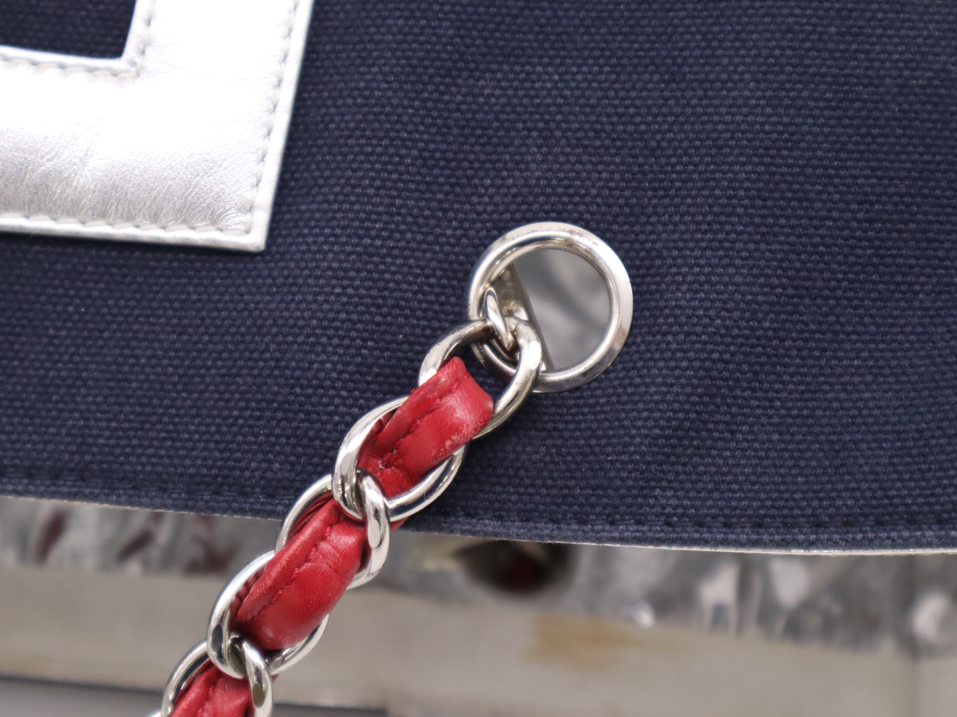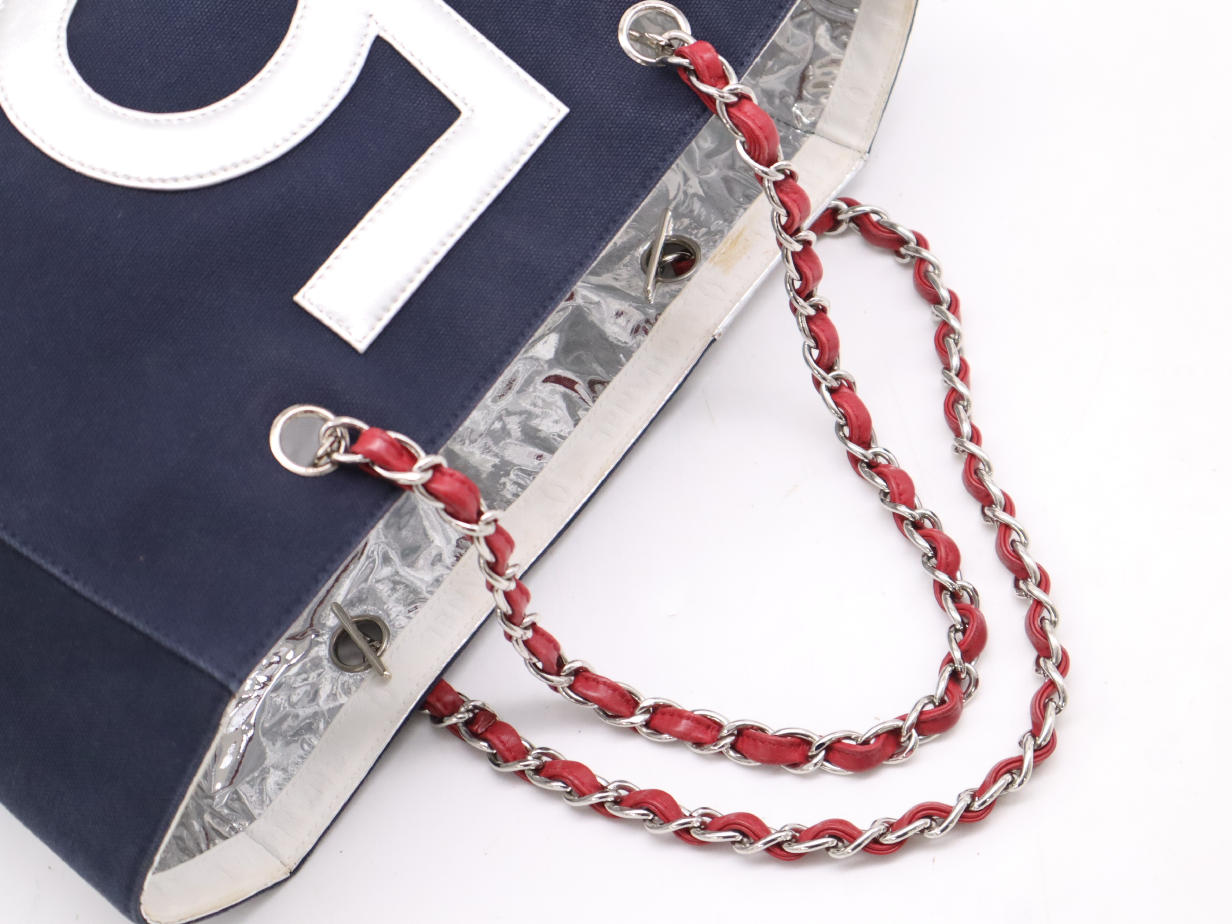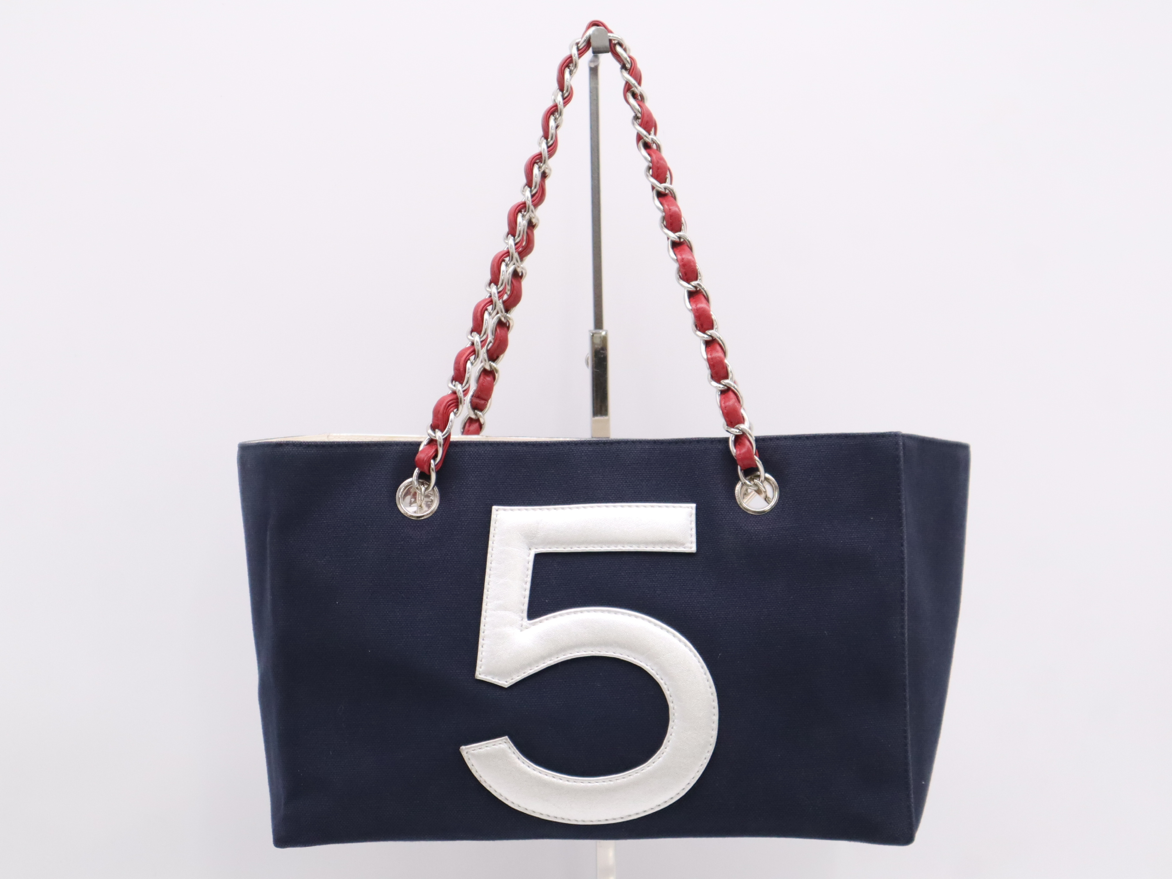 (10976_0803)CHANEL キャンバス×レザー No.5 トートバッグ ネイビー シルバー シール 7512159 トートバッグ