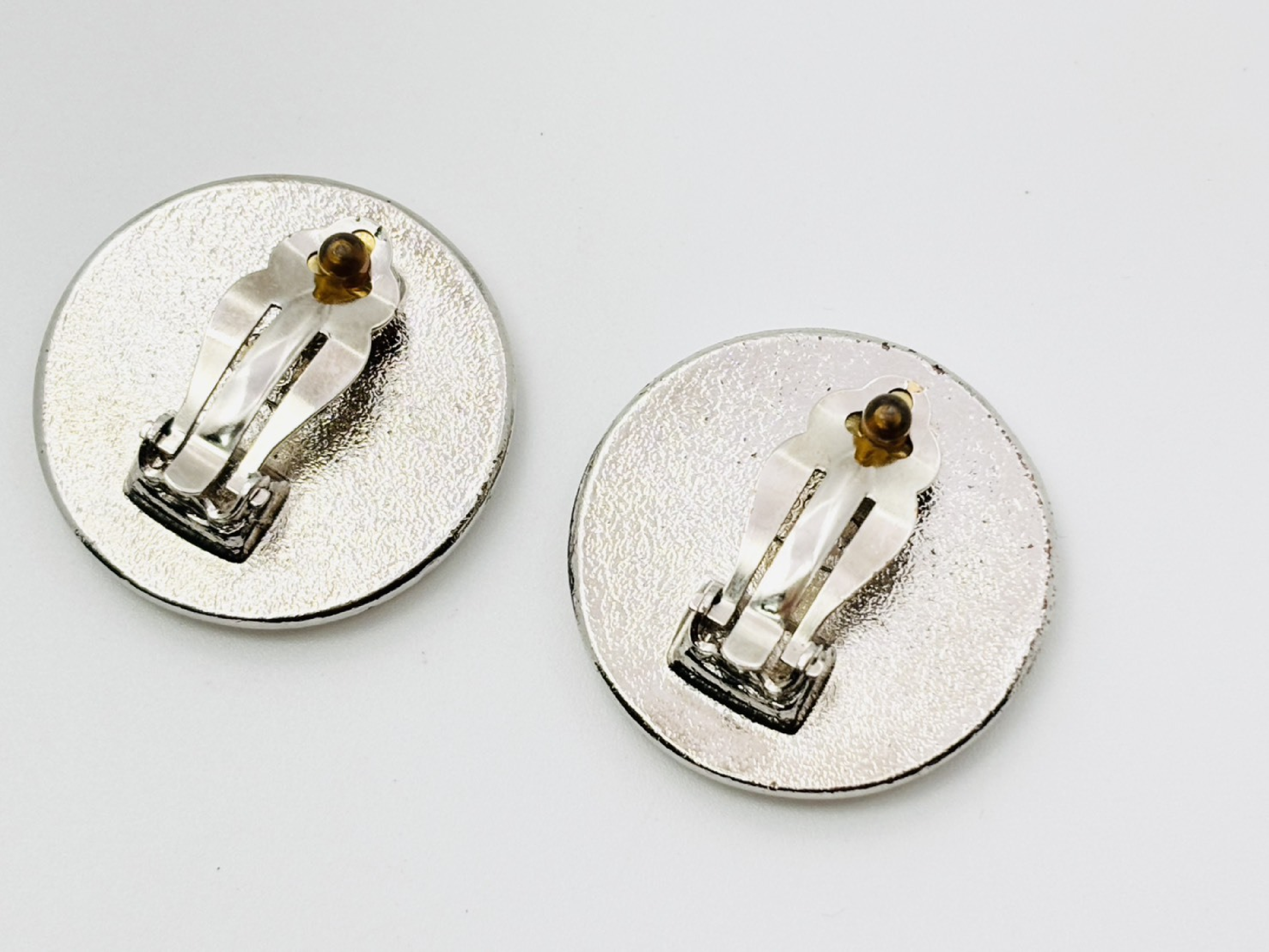 (10976_0863)CHANEL シャネル ココマーク ラウンドイヤリング 97A ブラック×シルバー イヤリング