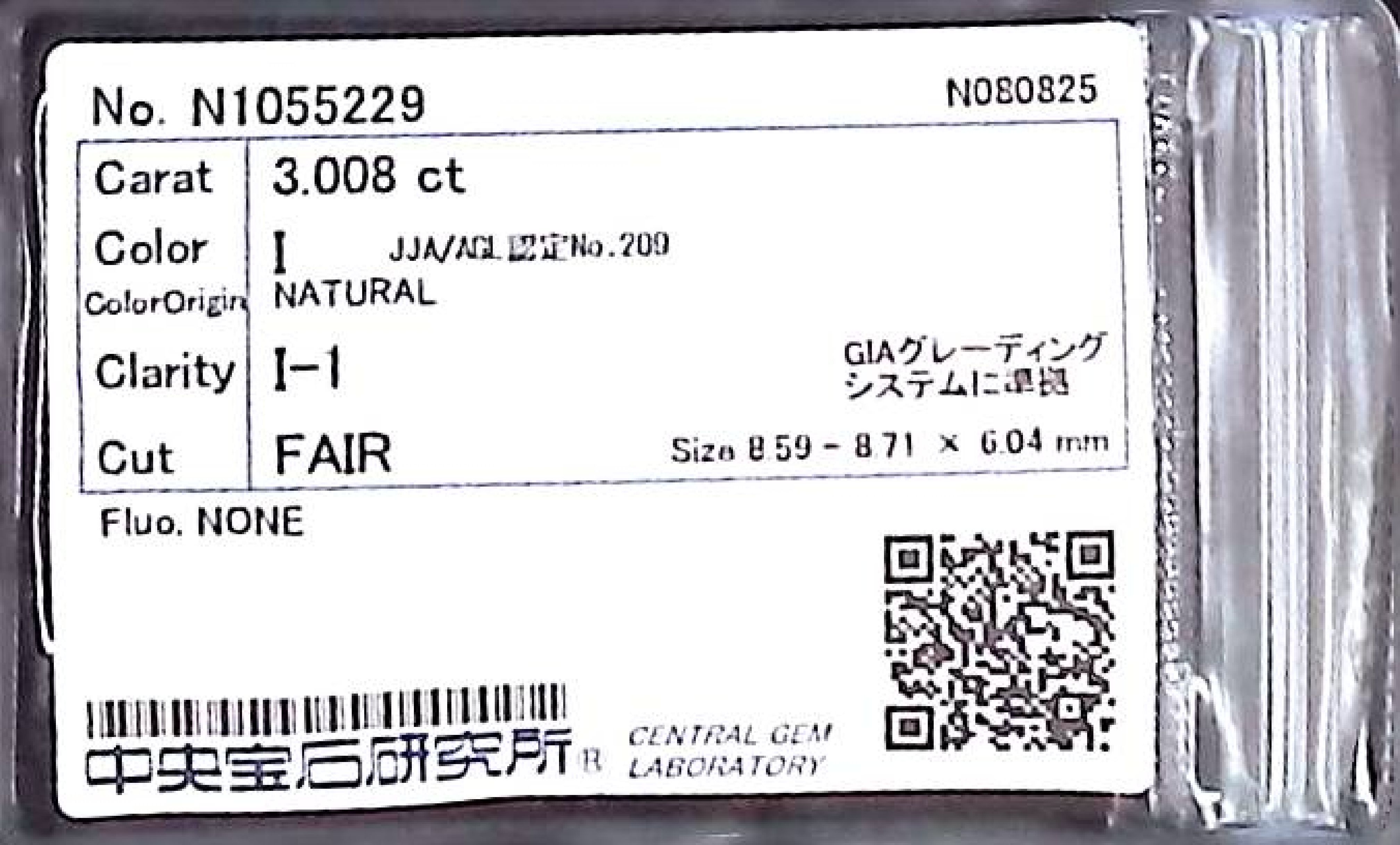 (10980_0614)3.008ct I I-1 FAIR/GD/FR NONE NATURAL 8.59-8.71×6.04mm ダイヤ・ルース