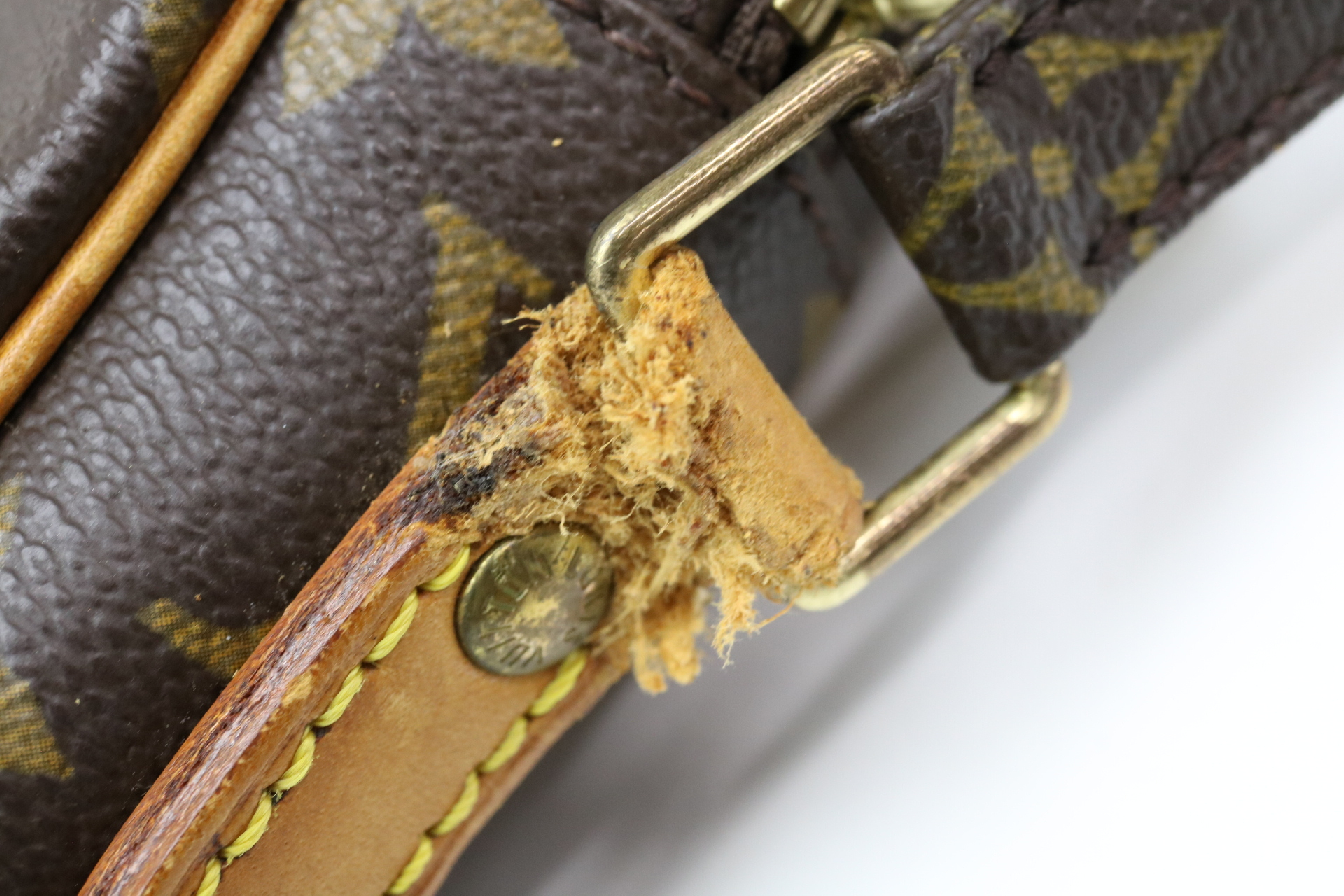 全体擦れ汚れ(小)型崩れ(小)ヌメ革擦れ汚れ(中)持ち手硬化(小)付け根伸びヨレヒビ(大)角擦れ剥げ(小)金具傷くすみ剥げ(中)内側擦れ汚れ(小)内側ポケット擦れ汚れ(小)外ポケット擦れ汚れ(小)","タイプライン":"モノグラム","カテゴリ":"バッグ","形状コード":"ショルダーバッグ","付属品コード":"","シリアル・シール・型番":"RFID確認できずSL 0024"