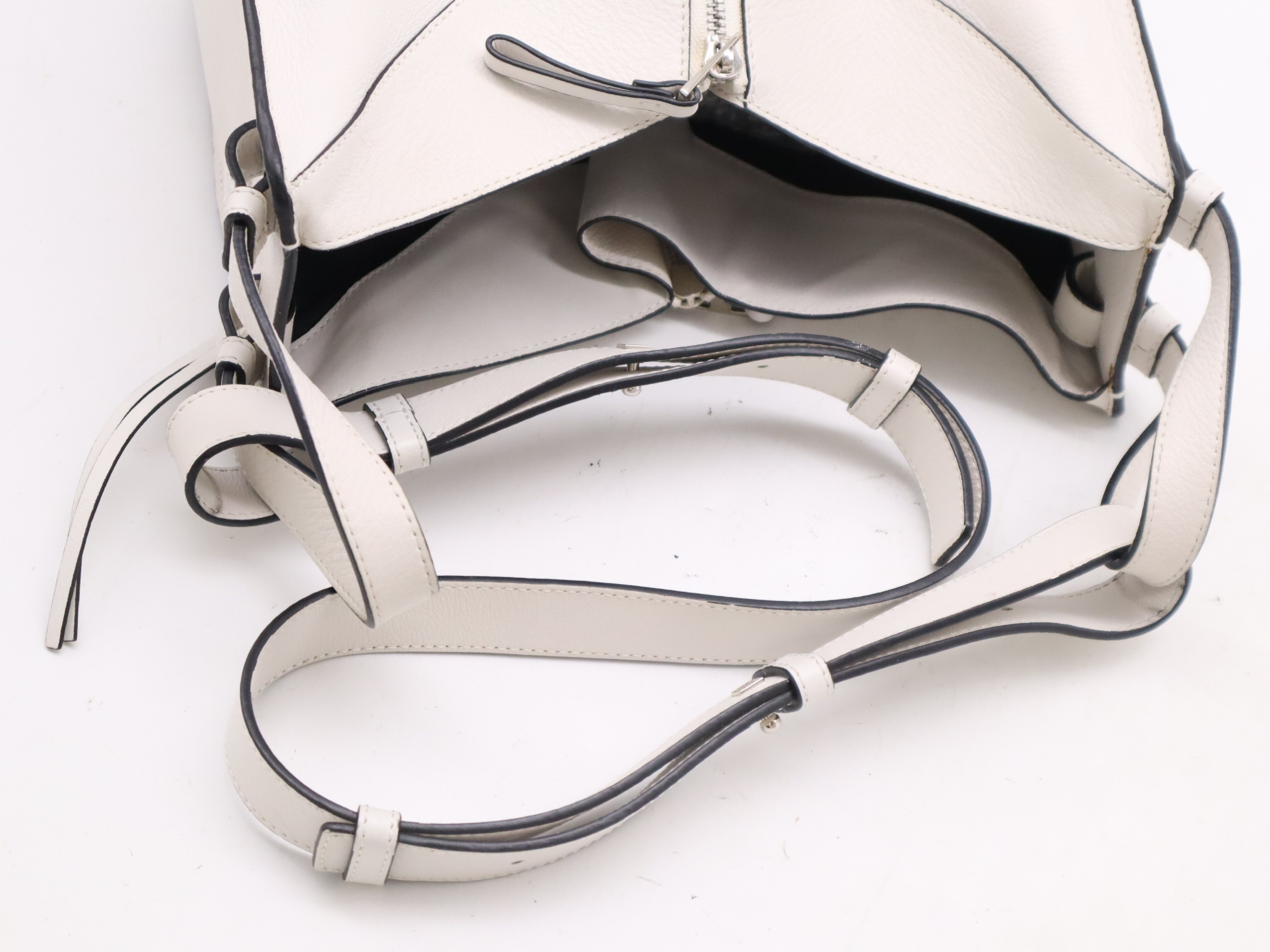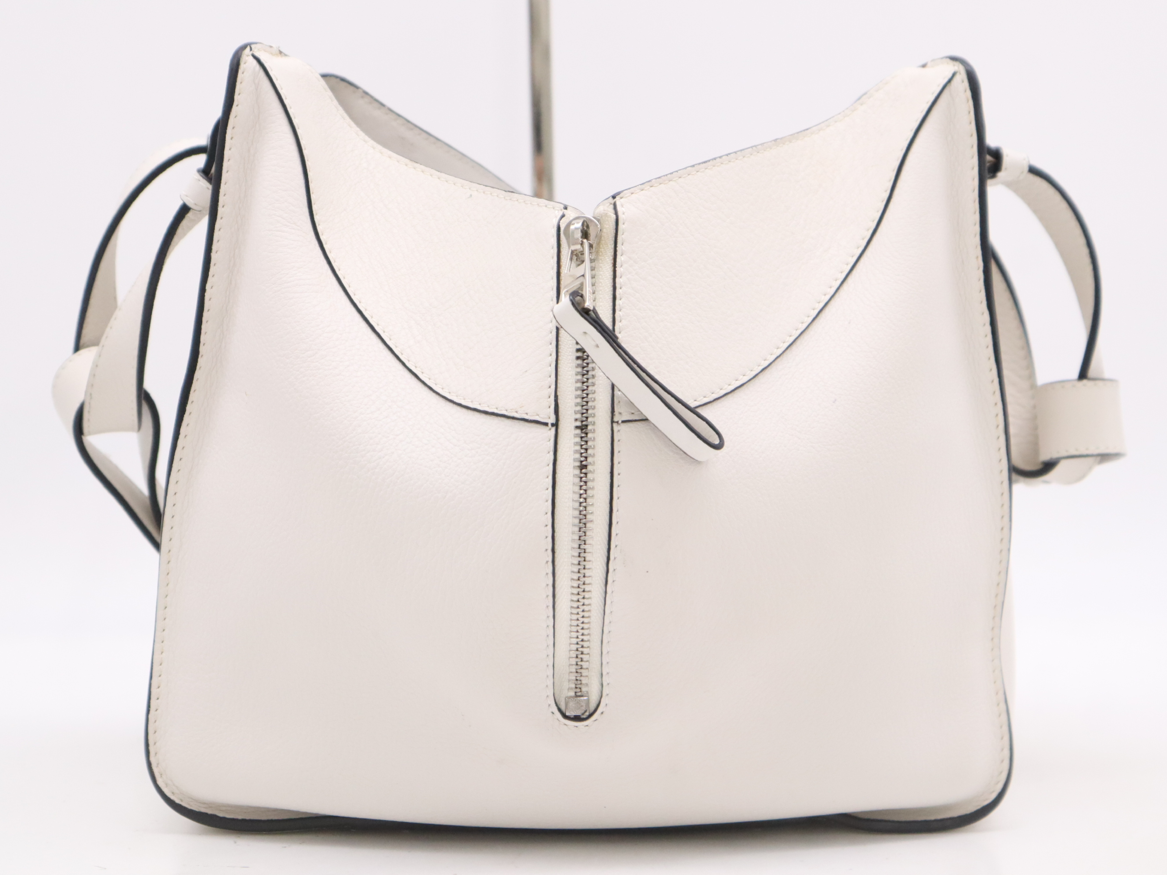 (F_0867)LOEWE レザーハンモック ショルダーバッグ ホワイト SV金具 ショルダーストラップ・保存袋付 ショルダーバッグ