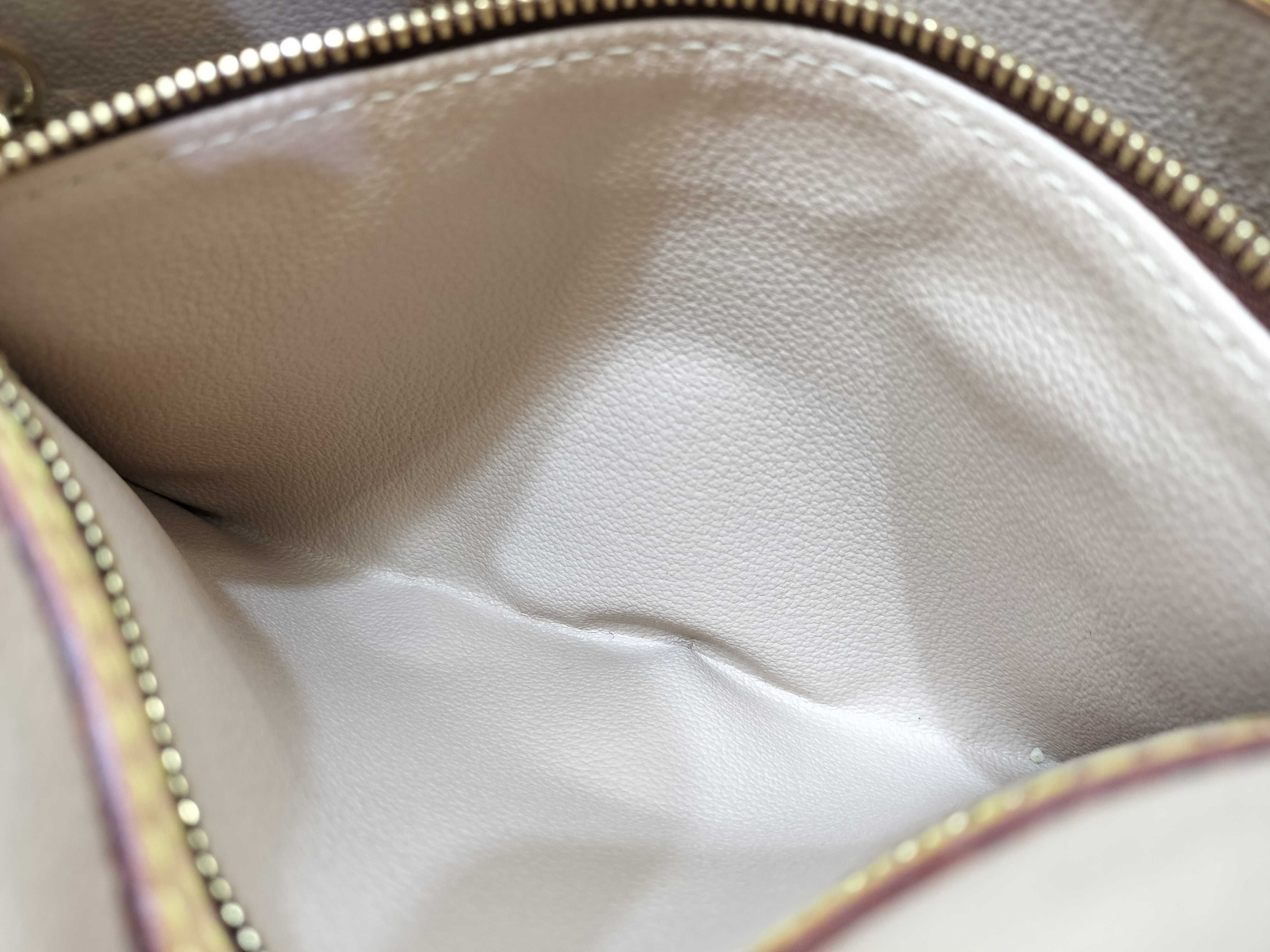 全体擦れ(小) 角擦れ(小) ヌメ革やけ汚れ(中) 持ち手・ショルダーひび(小) 金具キズ(中) 内側汚れ(小) リペア品 折畳みシワ有 付属ポーチ無【付属品