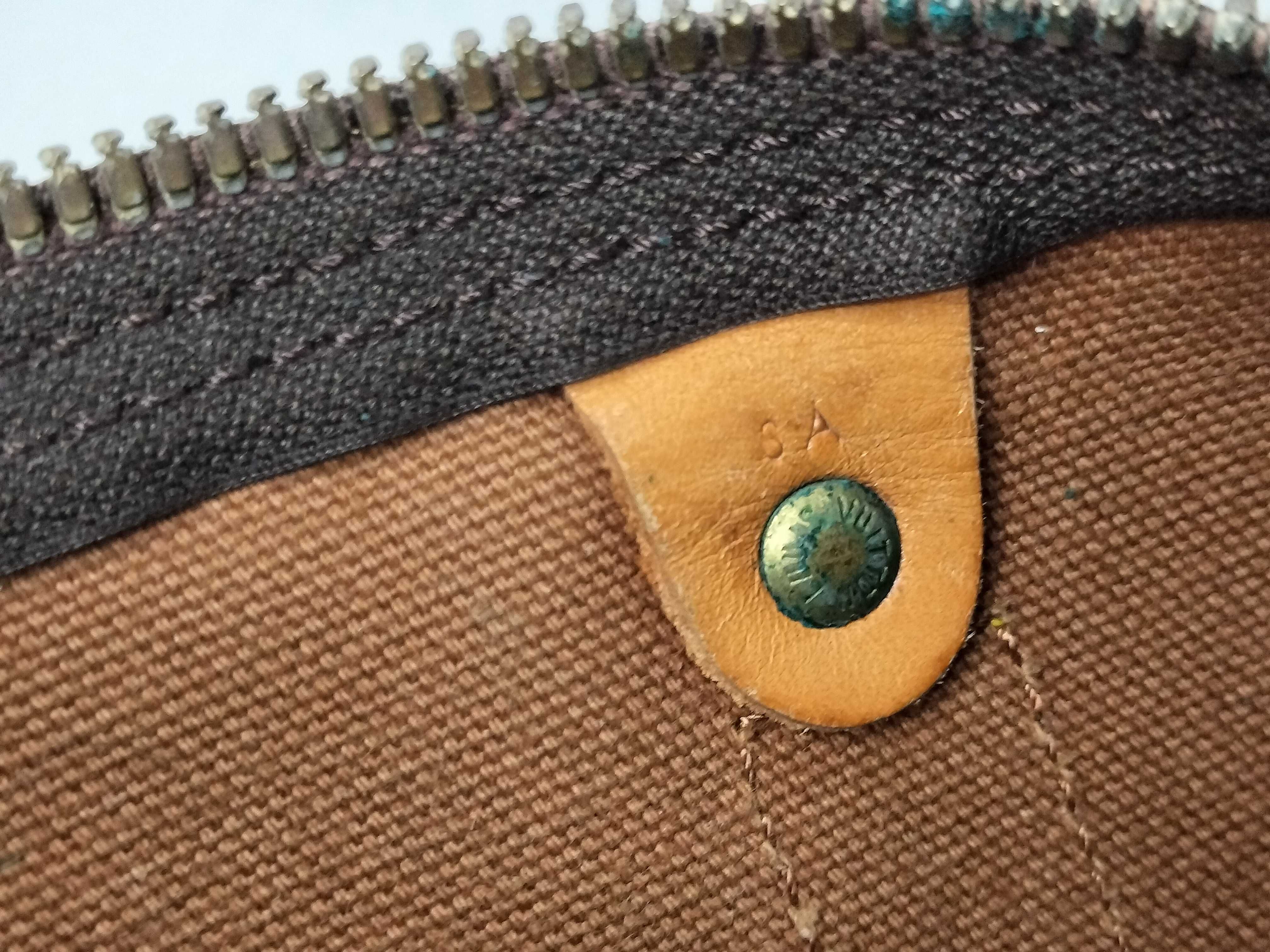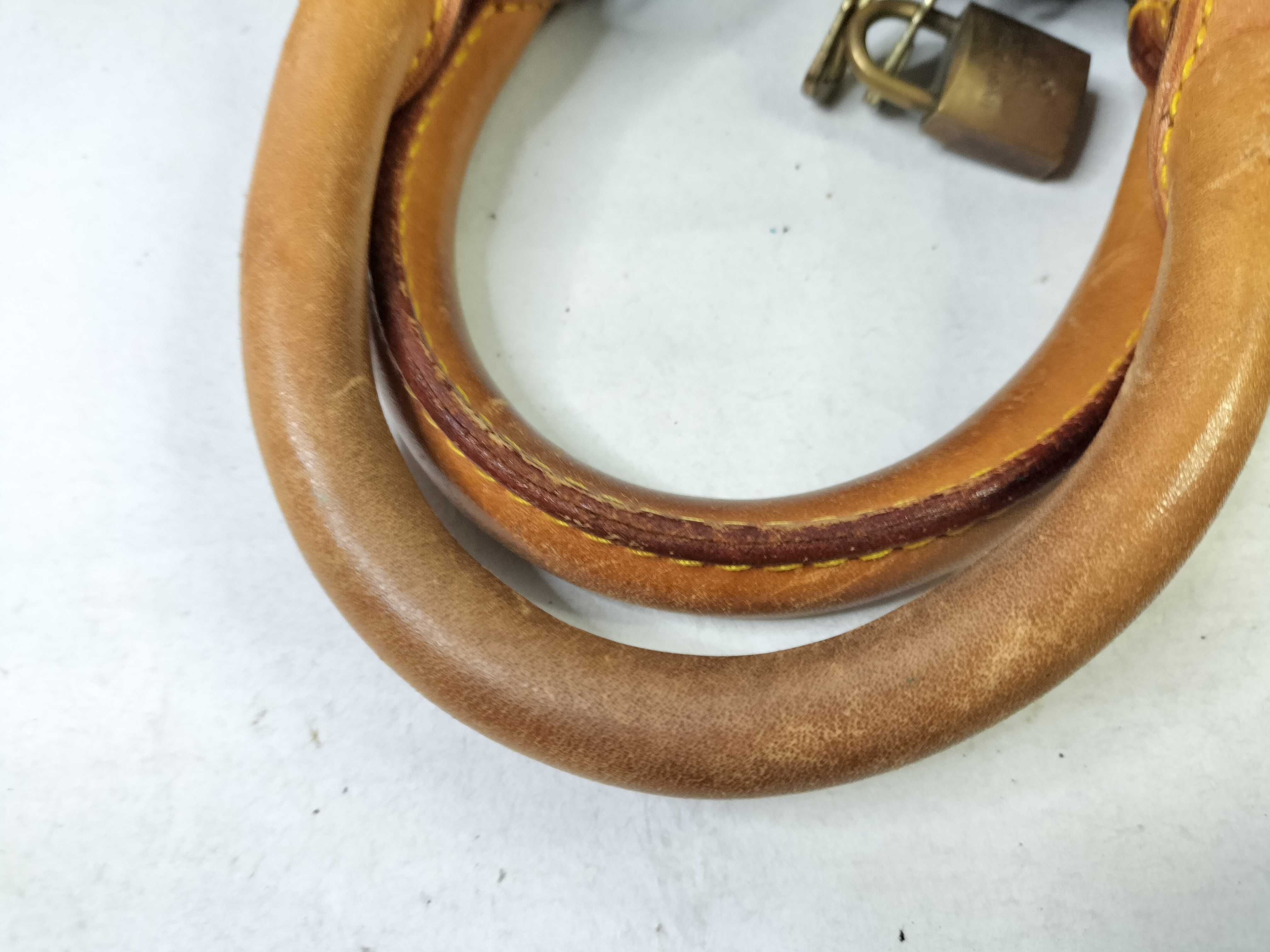 全体焼け擦れ汚れ(中) ヌメ革焼け黒ずみ染みヒビ(中) 持ち手黒ずみヒビ(大) 付け根伸び切れ(中) コバ擦れ(中) 角擦れ(中) 金具くすみ傷剥げ青サビ(大) ファスナー固い 内側焼け擦れ(中) カビ臭有【付属品