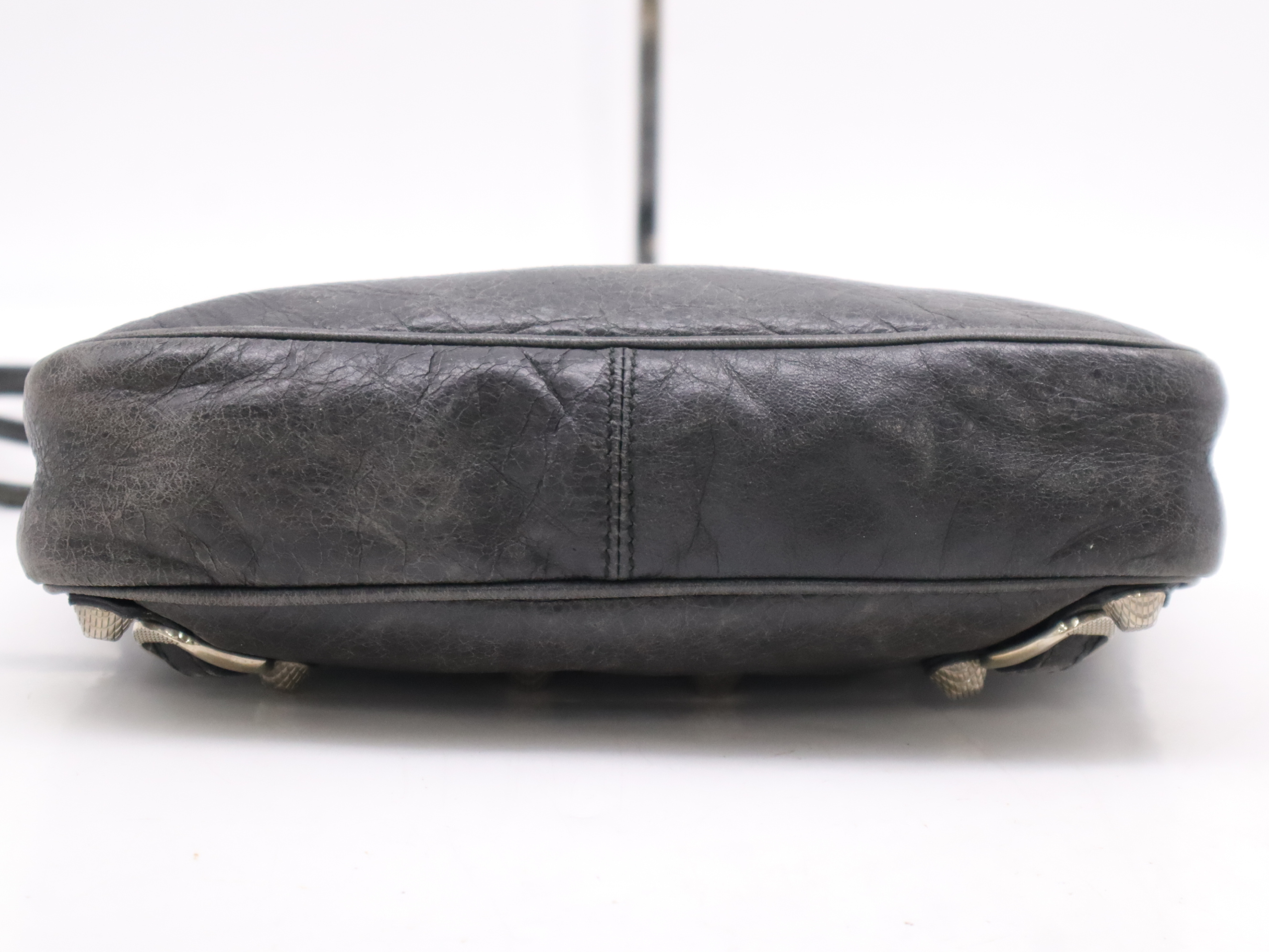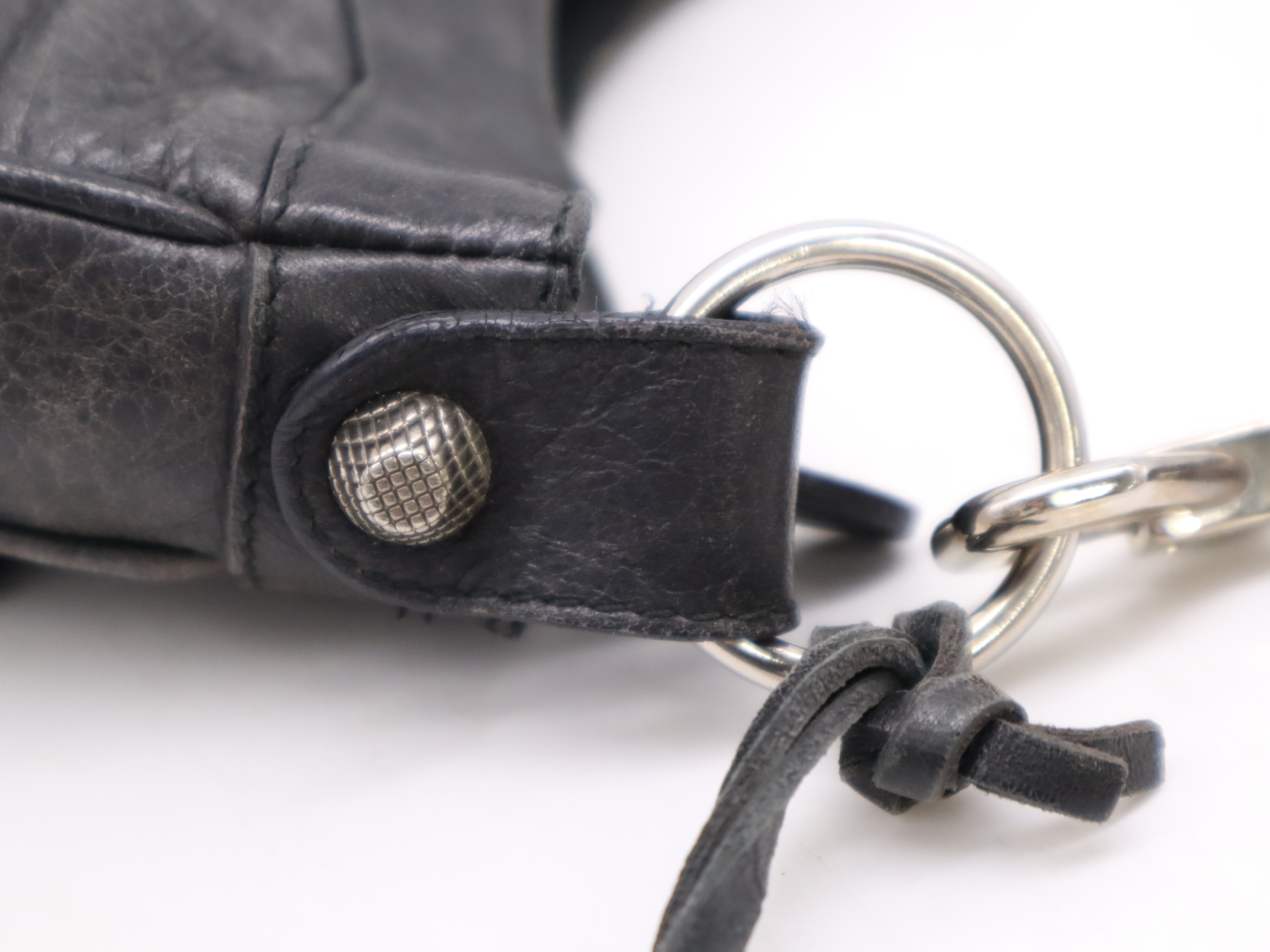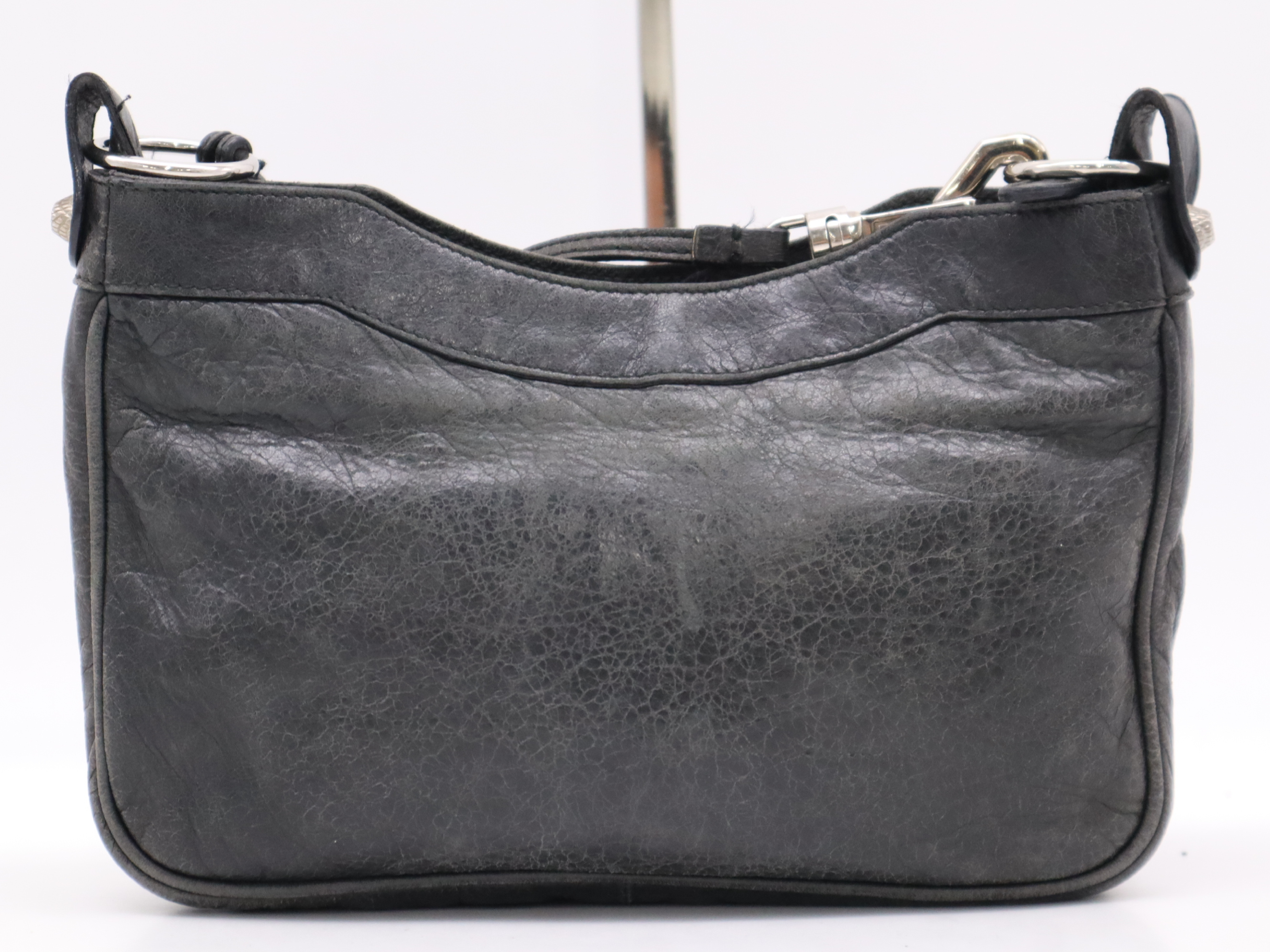 (F_0896)BALENCIAGA レザーショルダーバッグ ブラック ショルダーストラップ・ミラー付き ショルダーバッグ