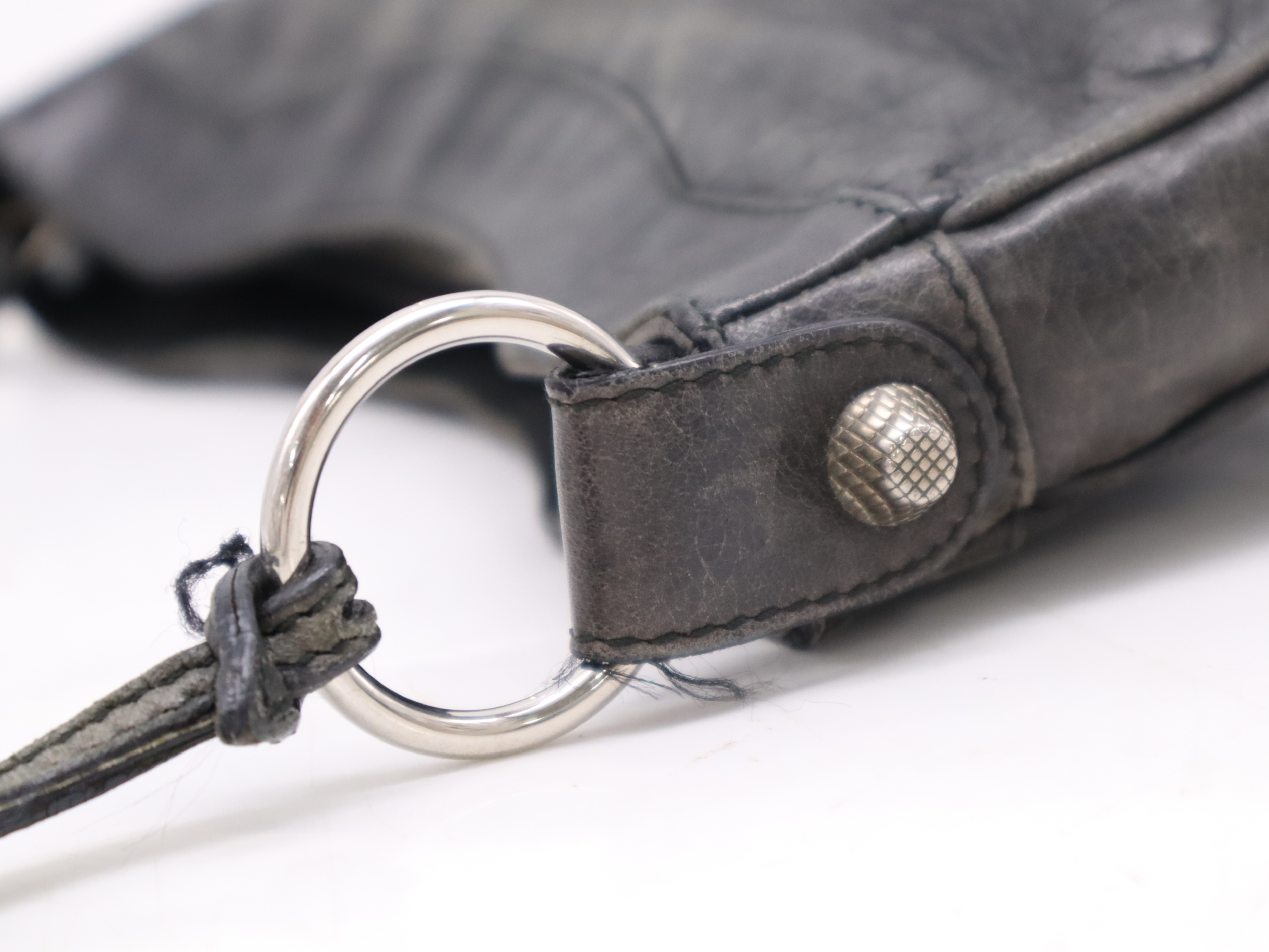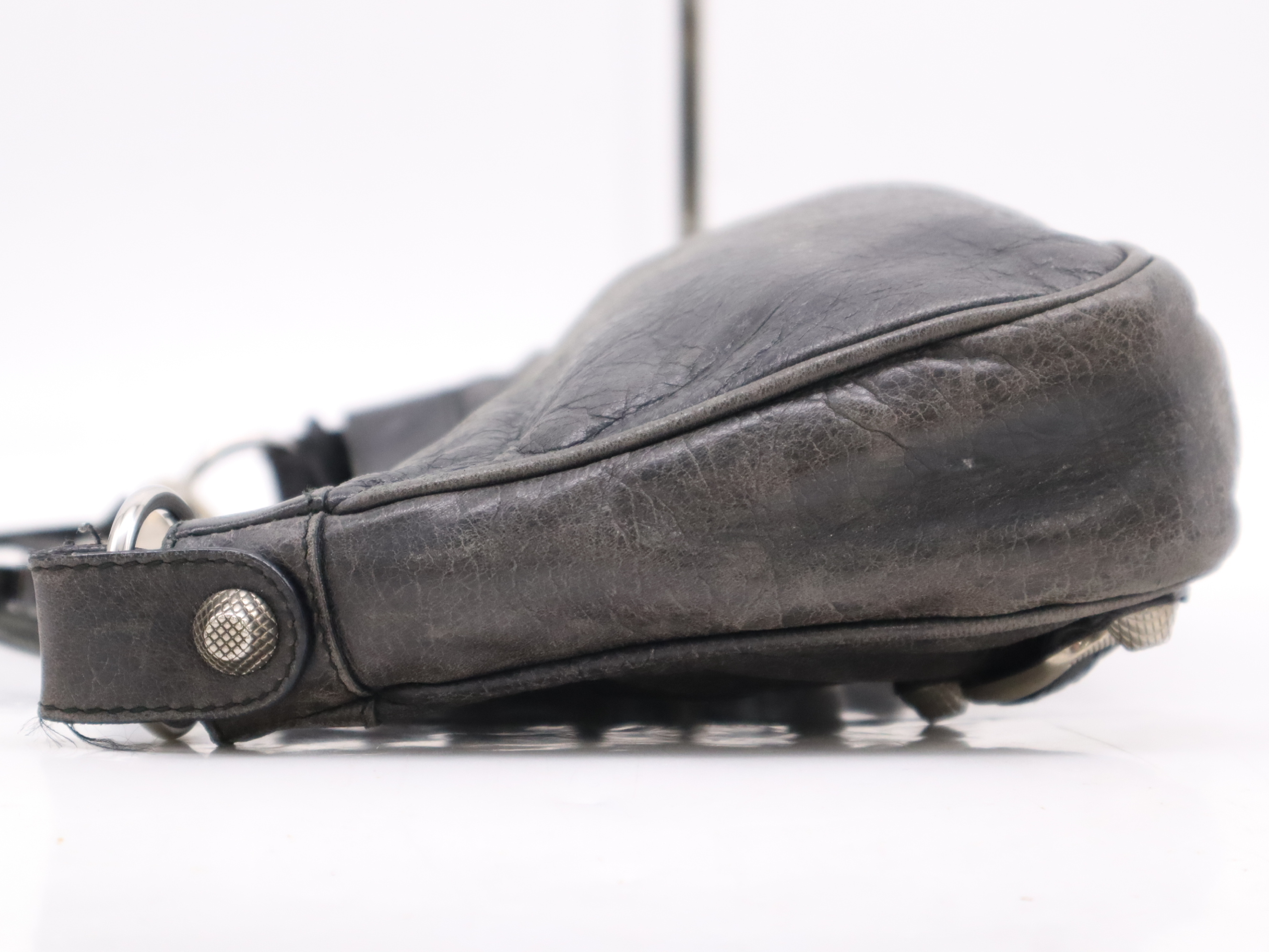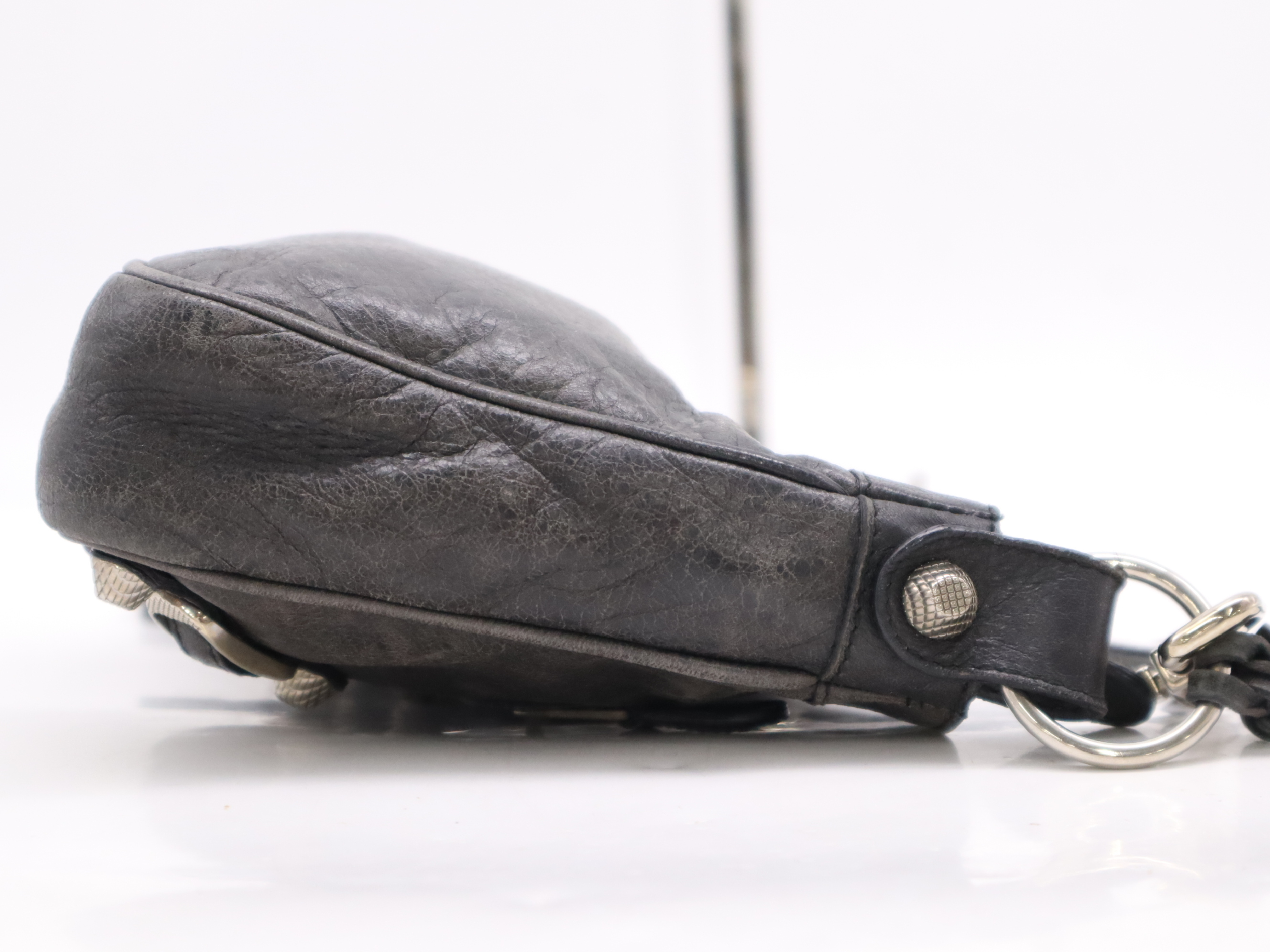 (F_0896)BALENCIAGA レザーショルダーバッグ ブラック ショルダーストラップ・ミラー付き ショルダーバッグ