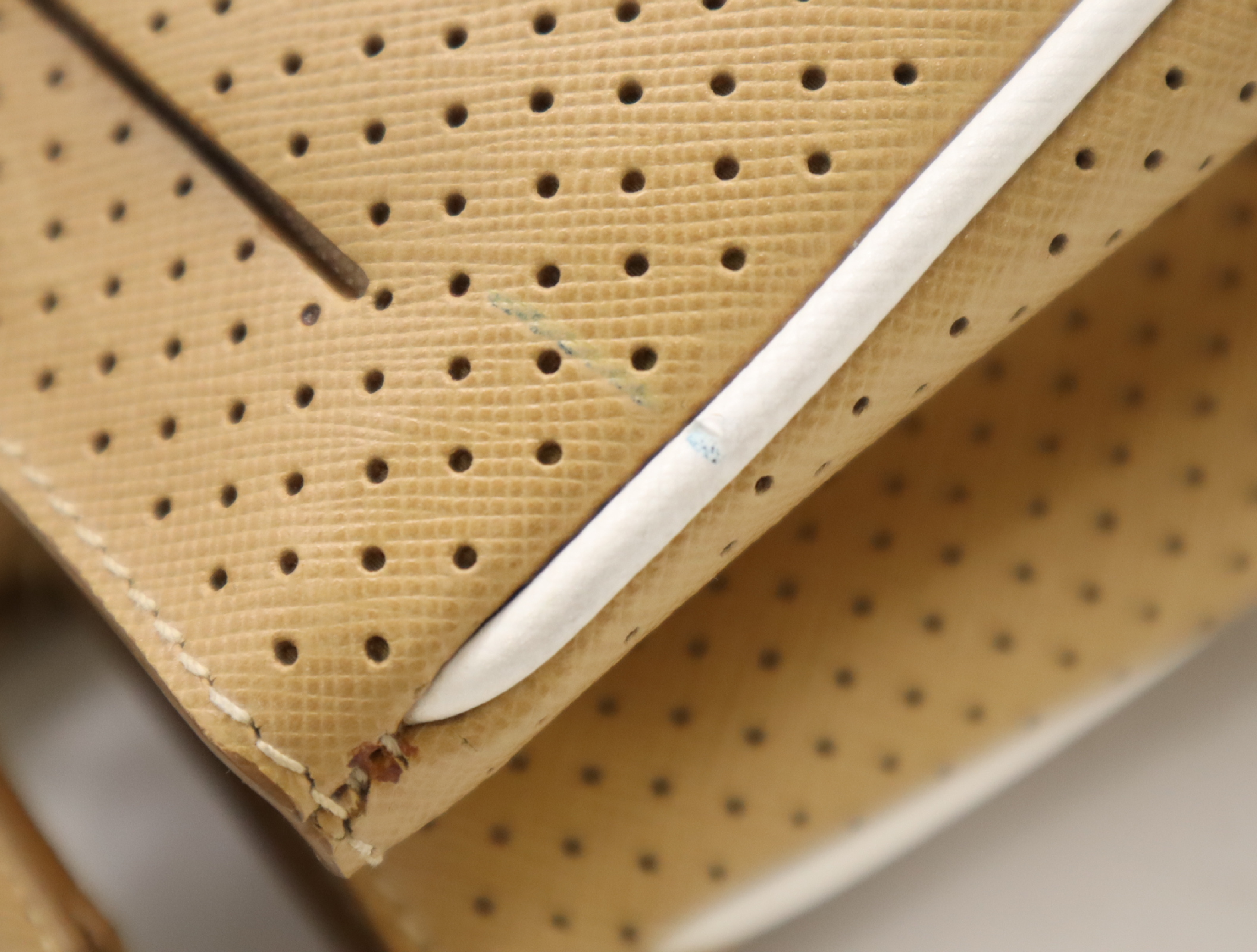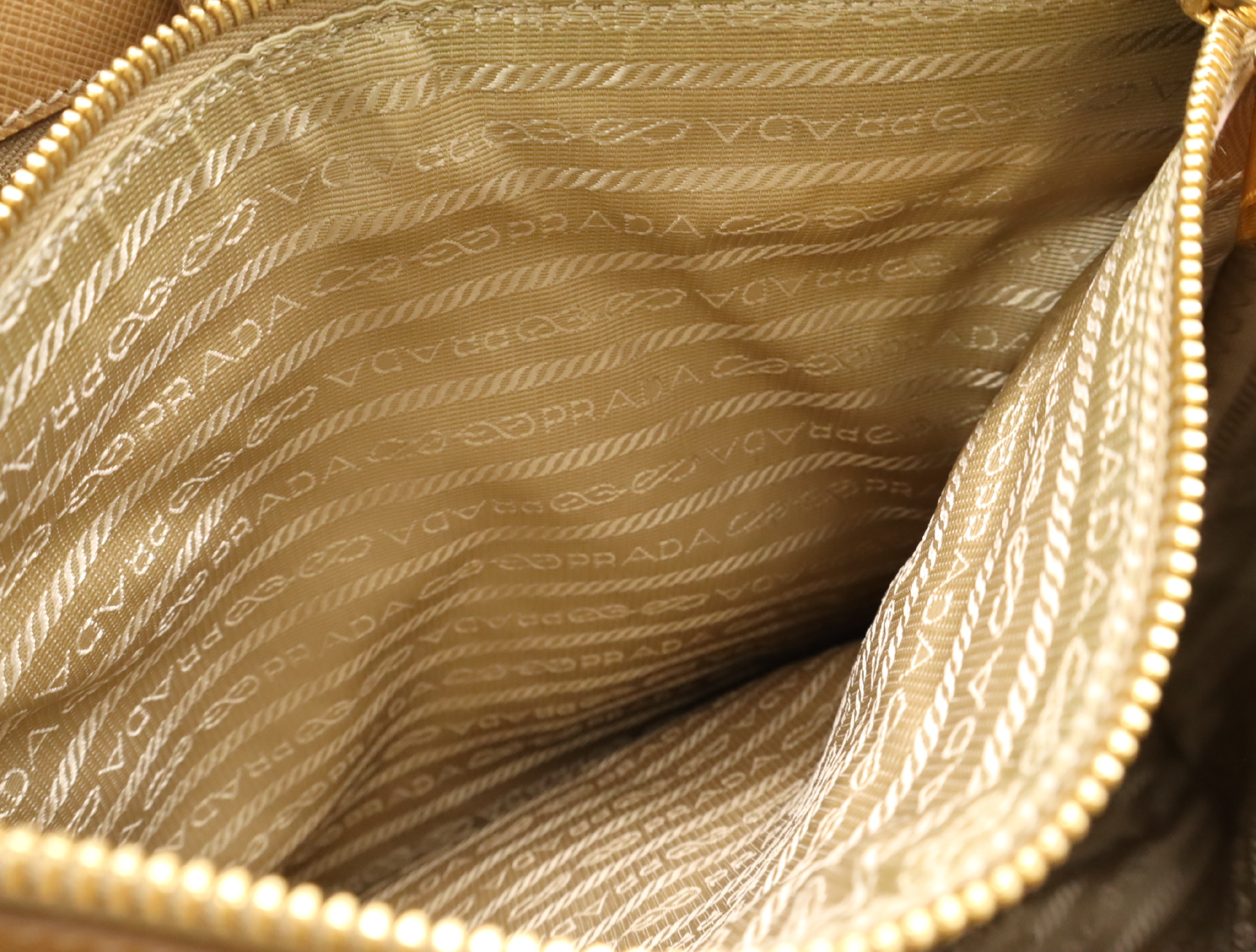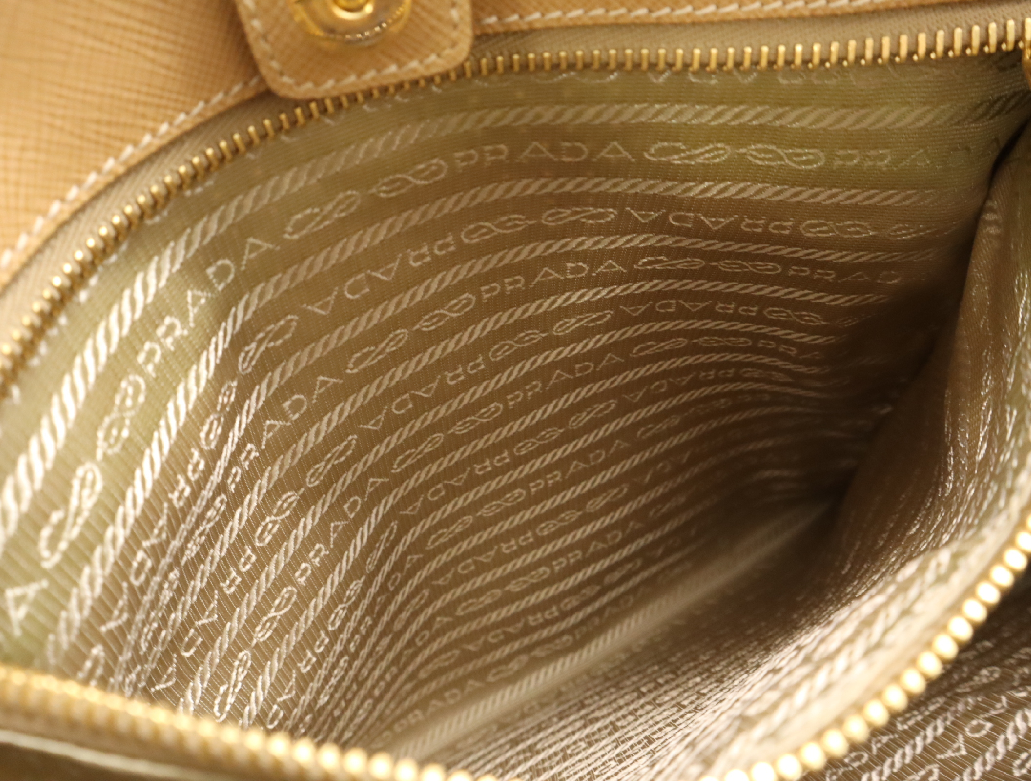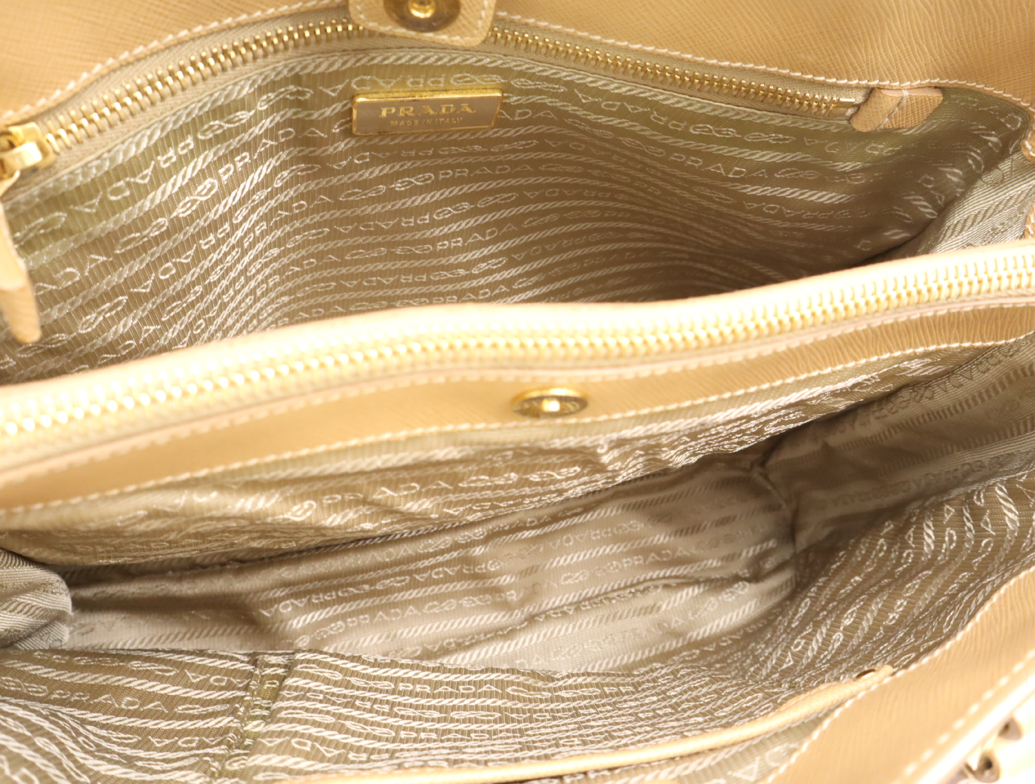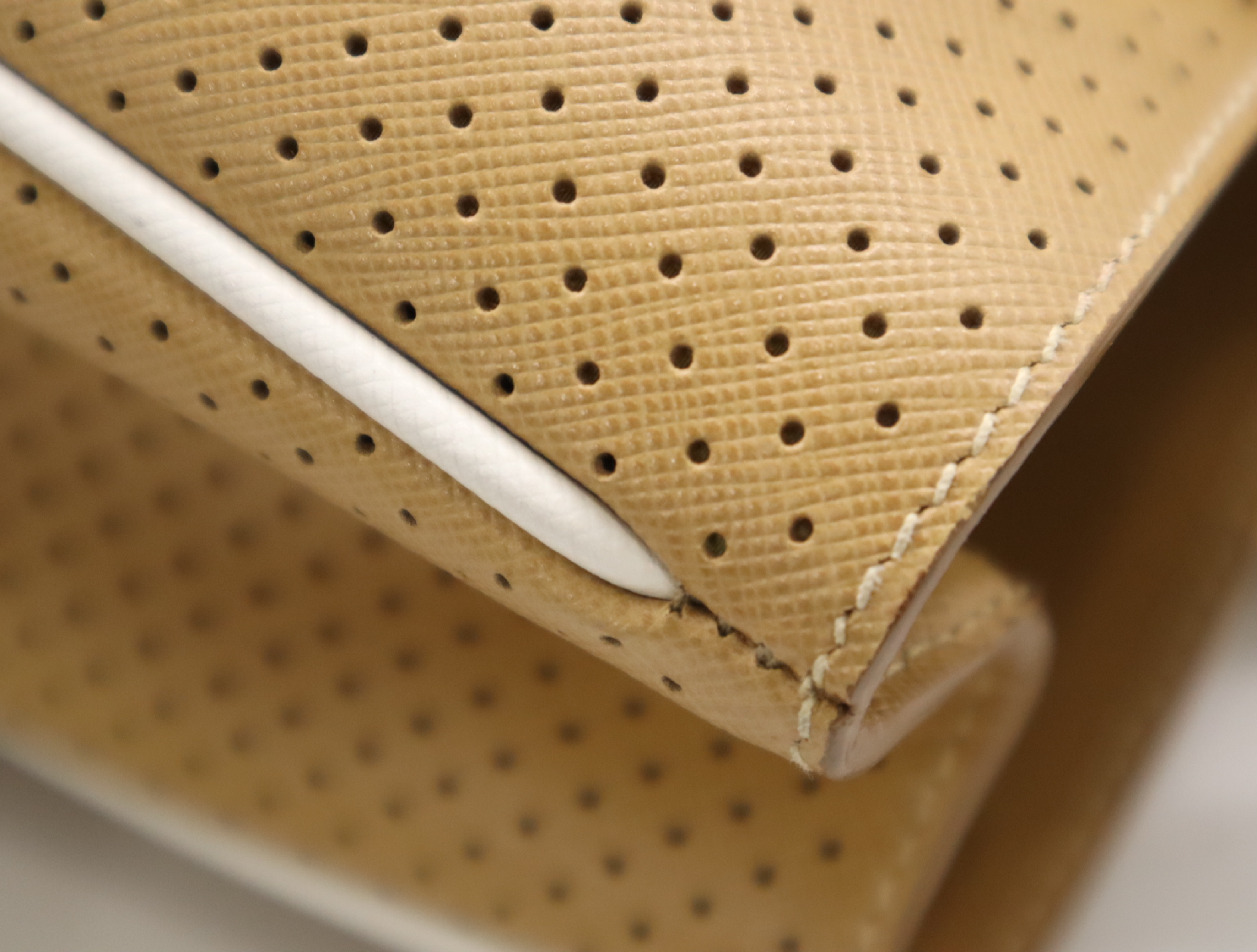 (F_0907)PRADA BN1875サフィアーノ パンチングレザー三角ロゴ ベージュ クロシェット・カード付 ハンドバッグ