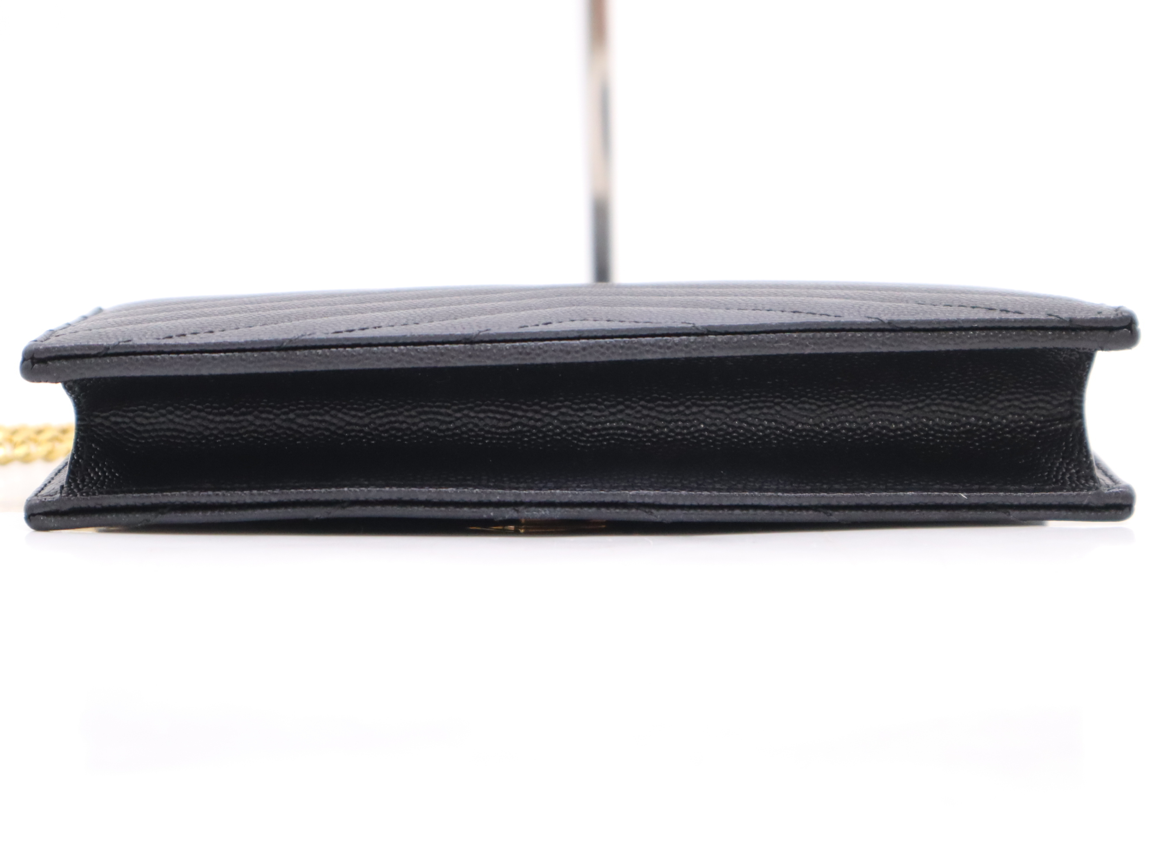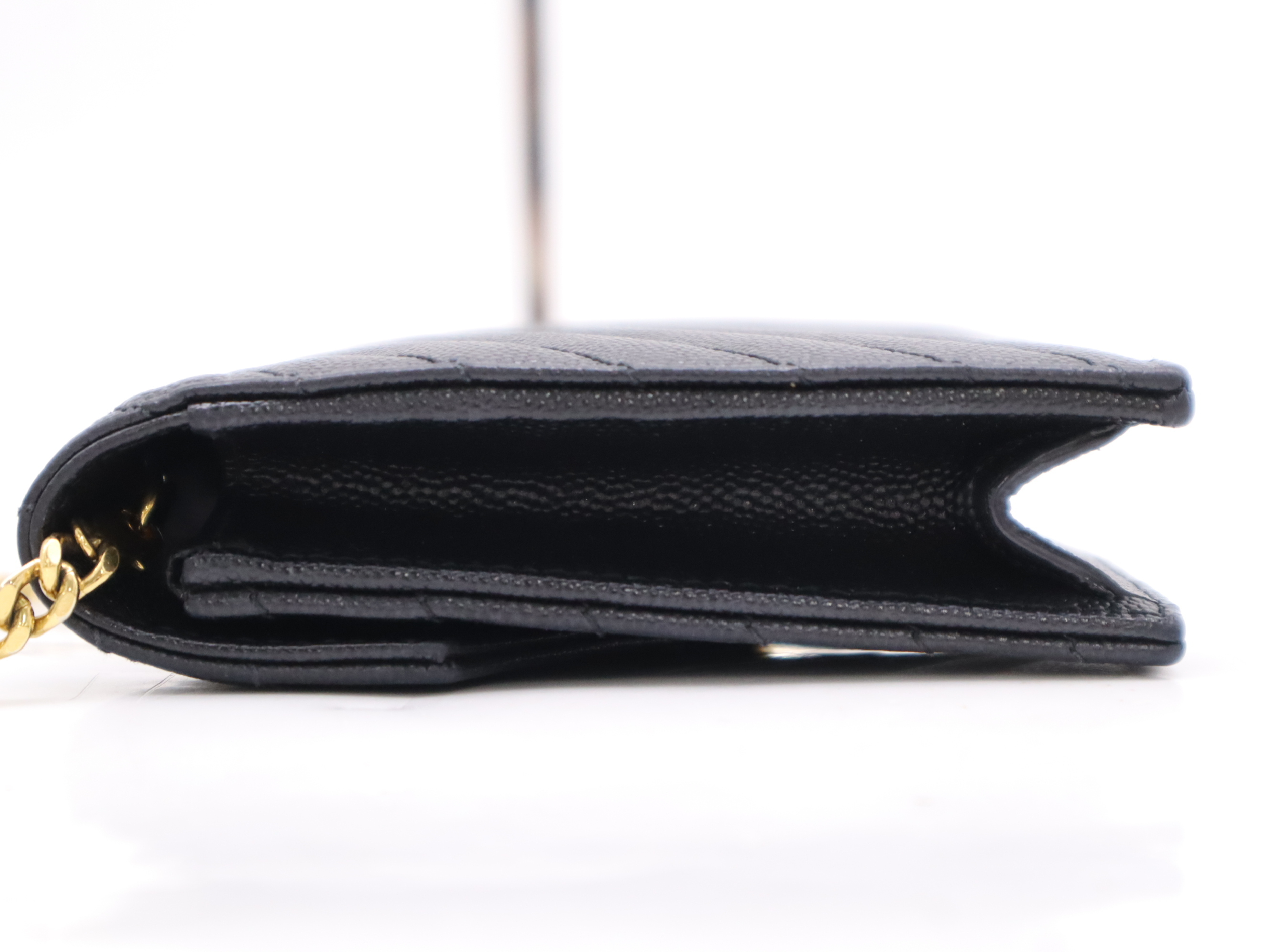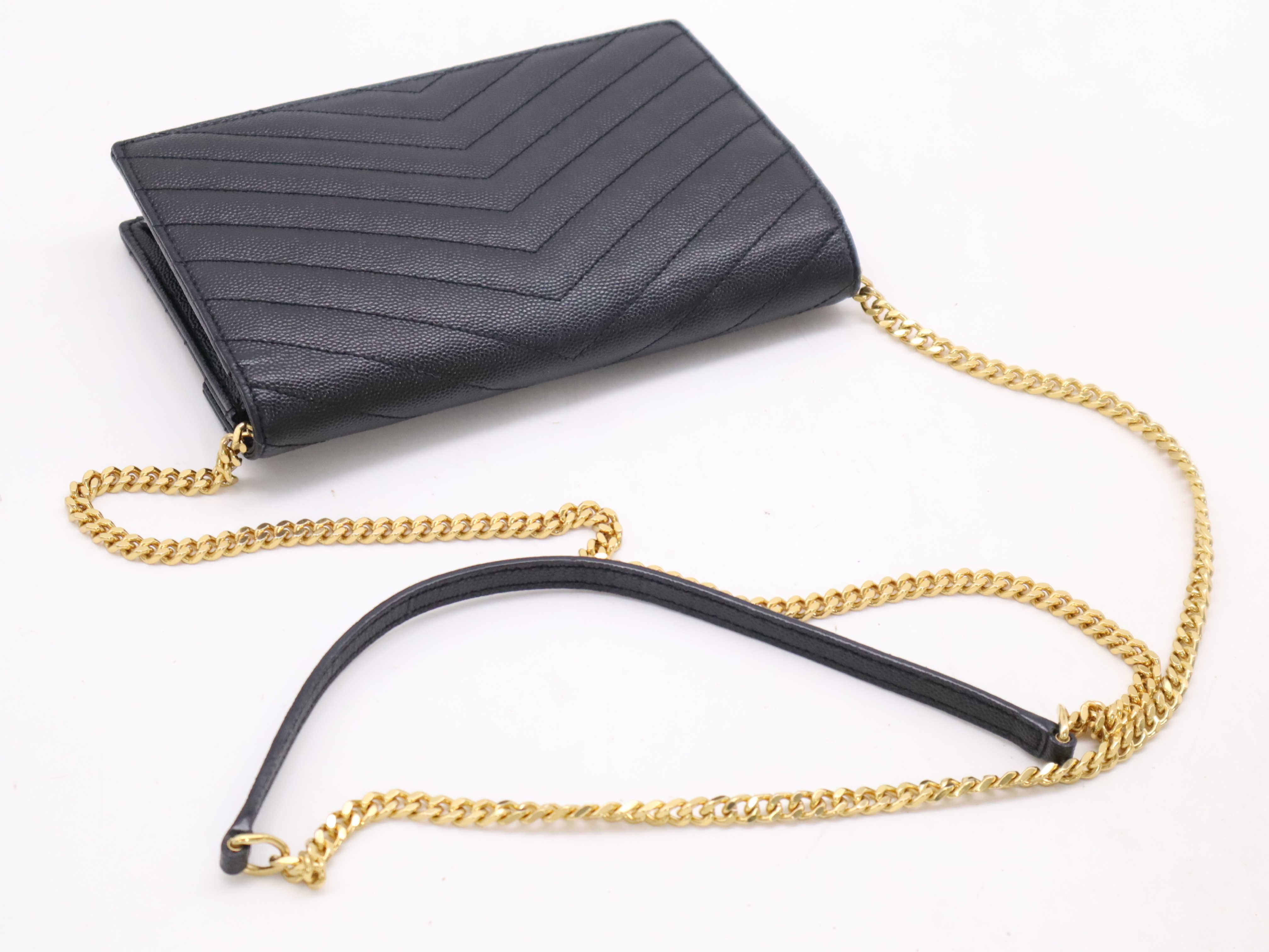 (F_1065)SAINT LAURENT レザーモノグラムエンベロープ チェーンウォレット ブラック ゴールド金具 ショルダーバッグ