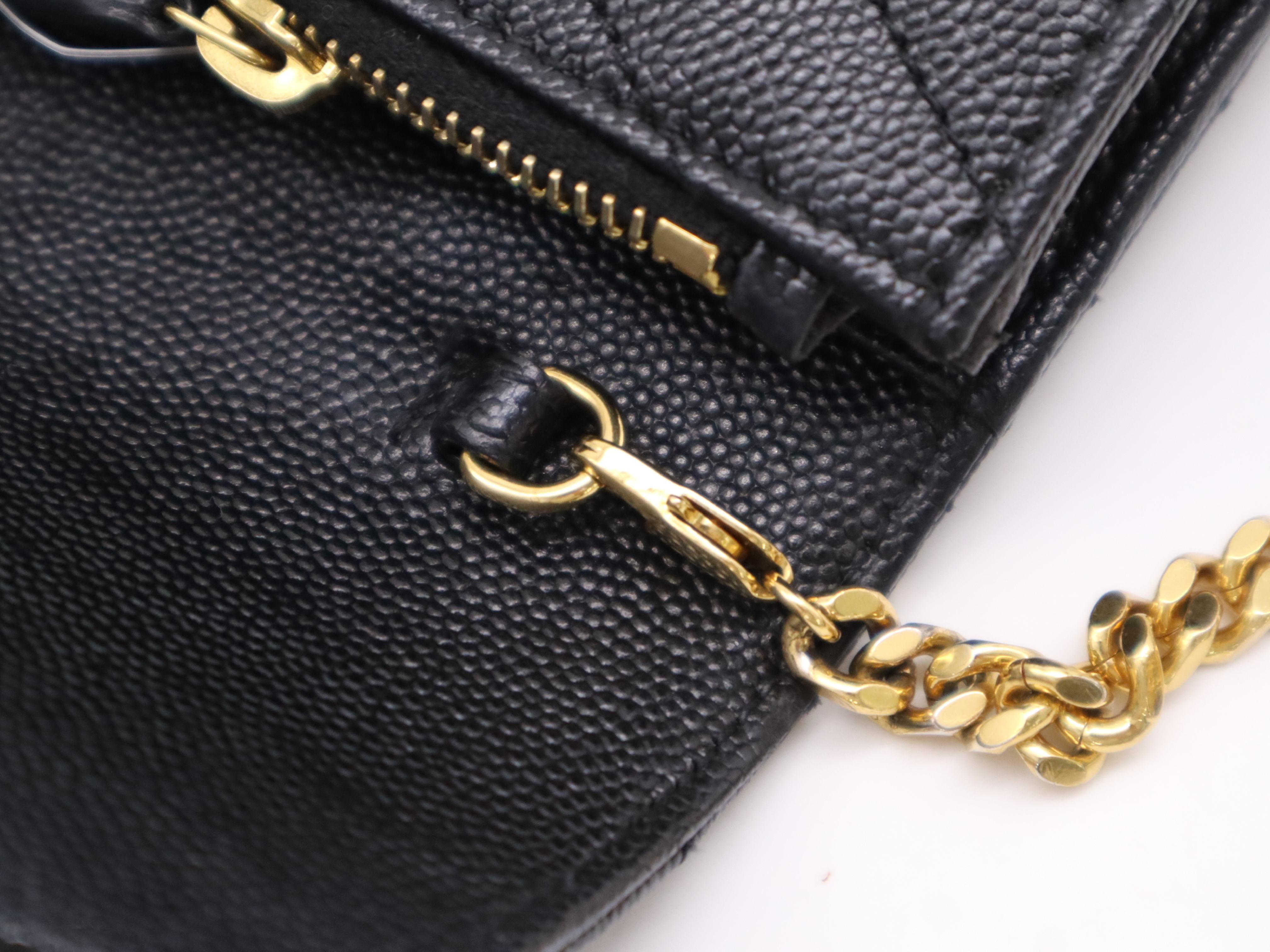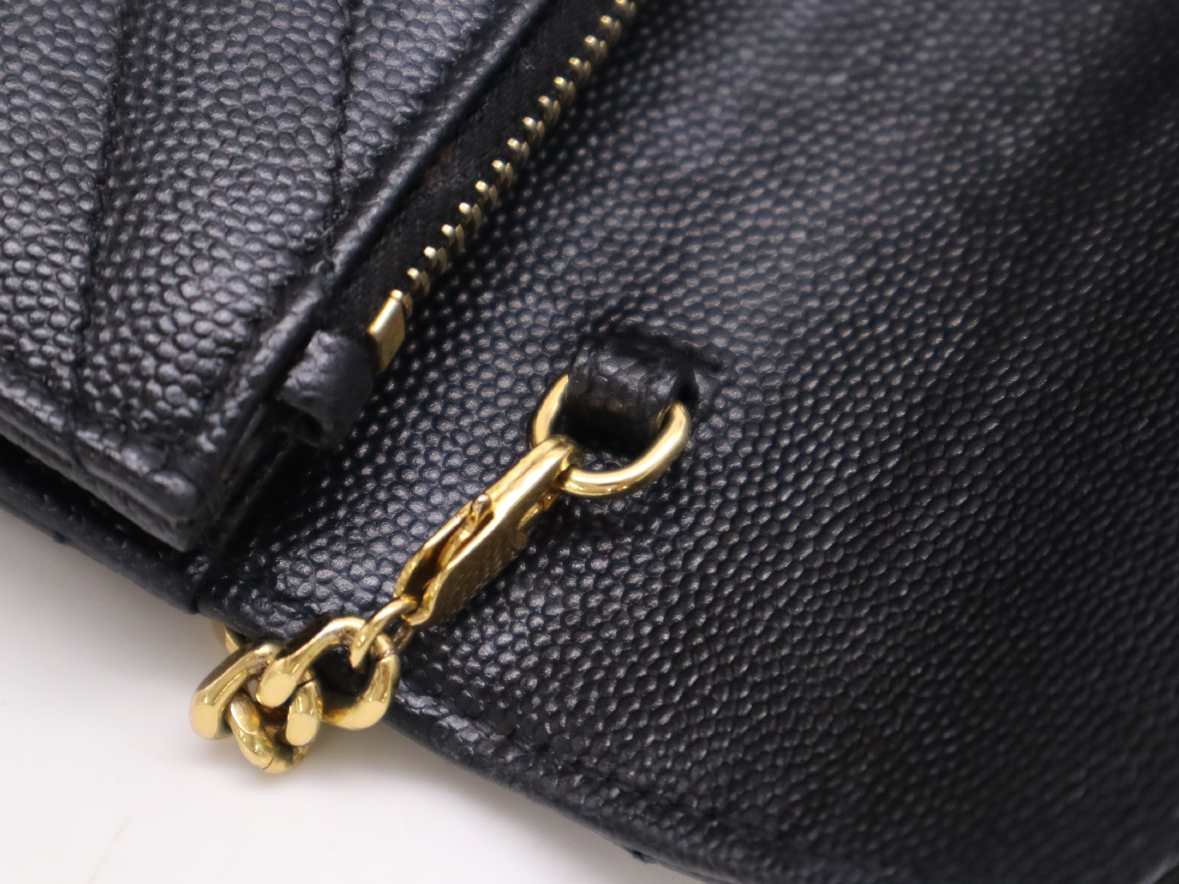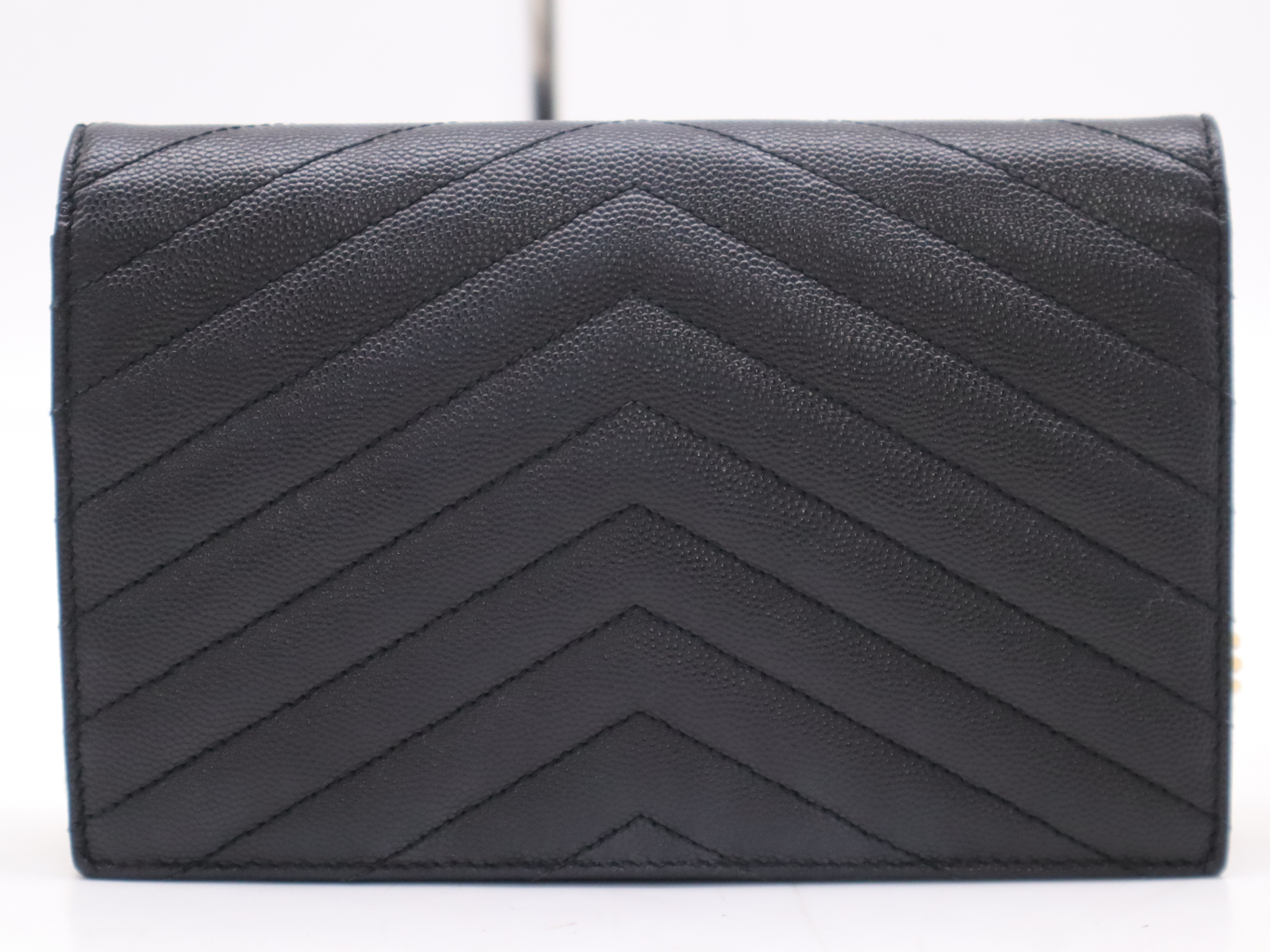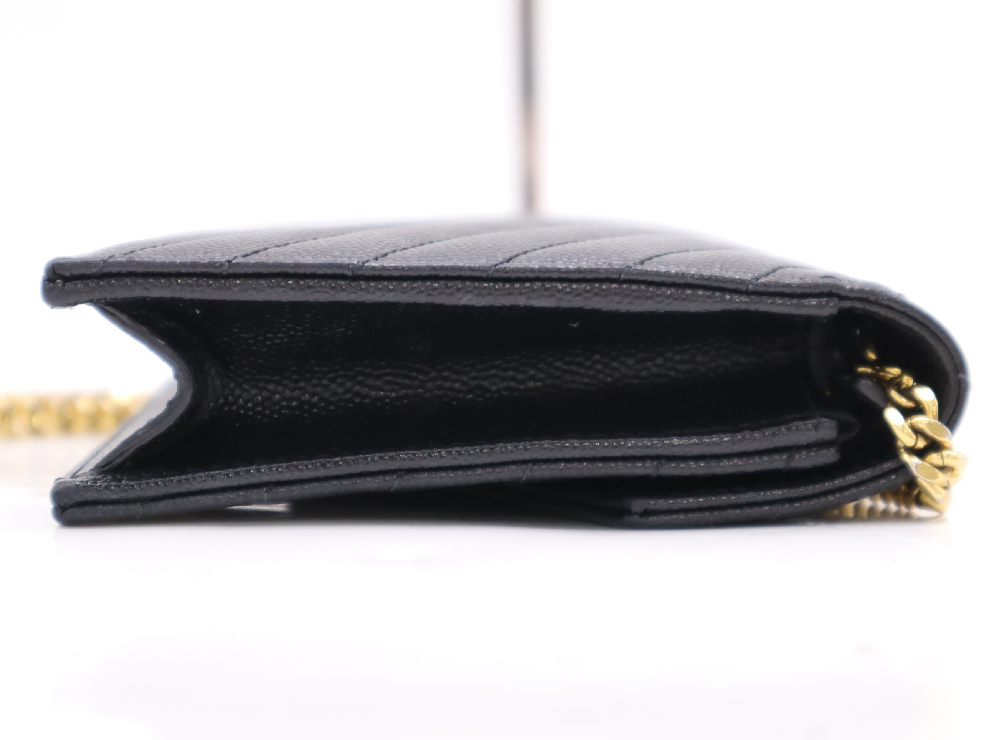 (F_1065)SAINT LAURENT レザーモノグラムエンベロープ チェーンウォレット ブラック ゴールド金具 ショルダーバッグ