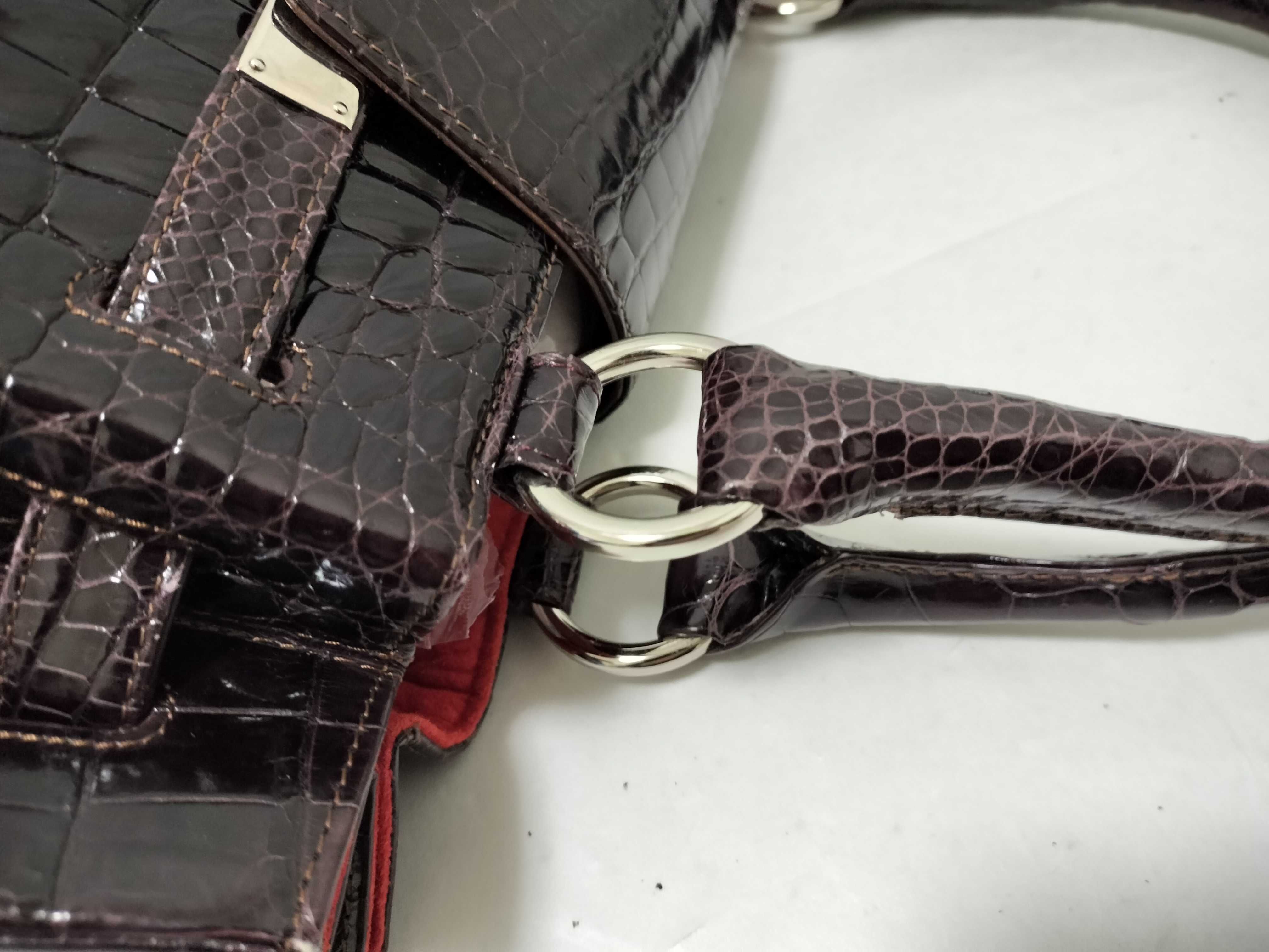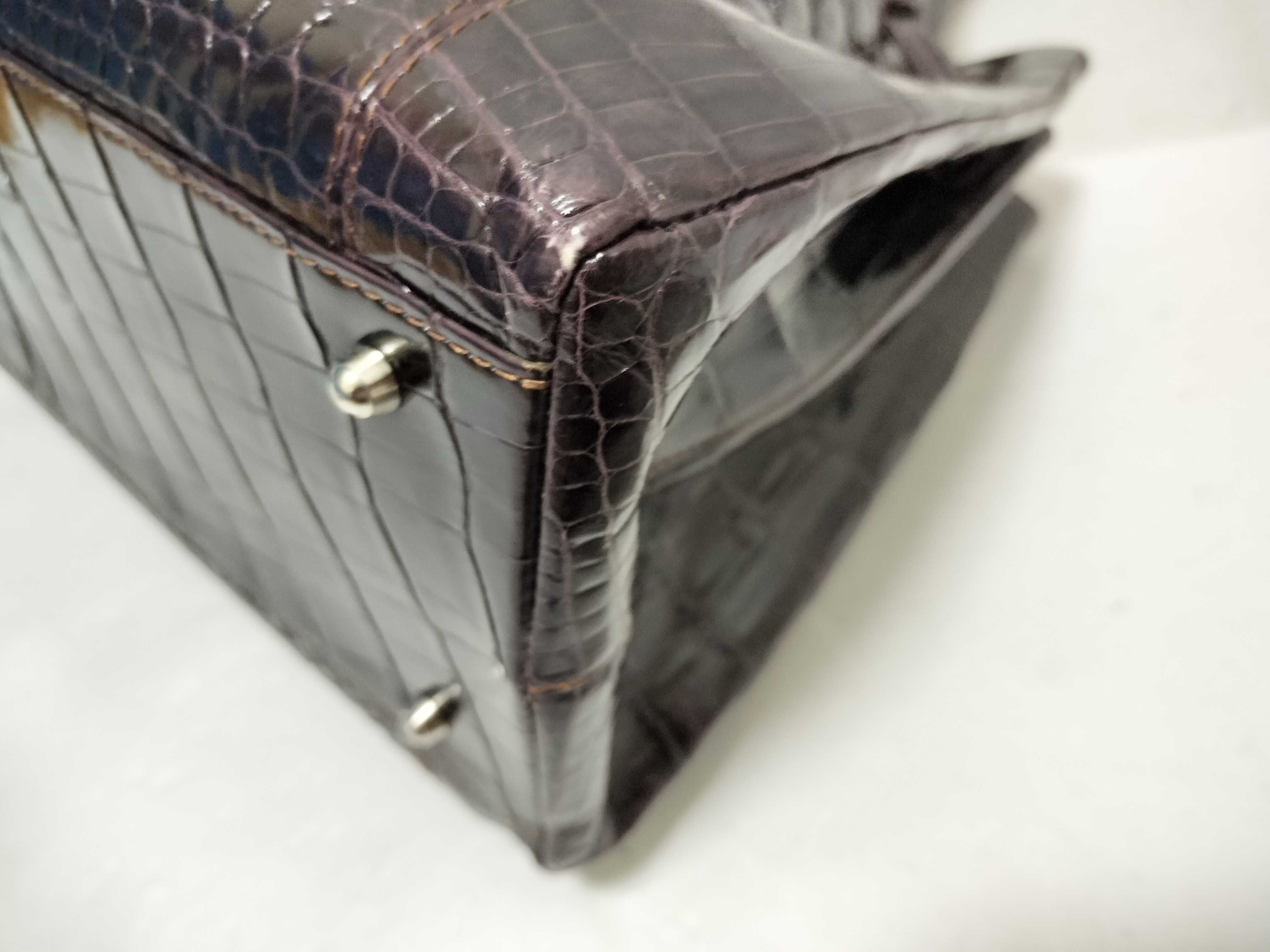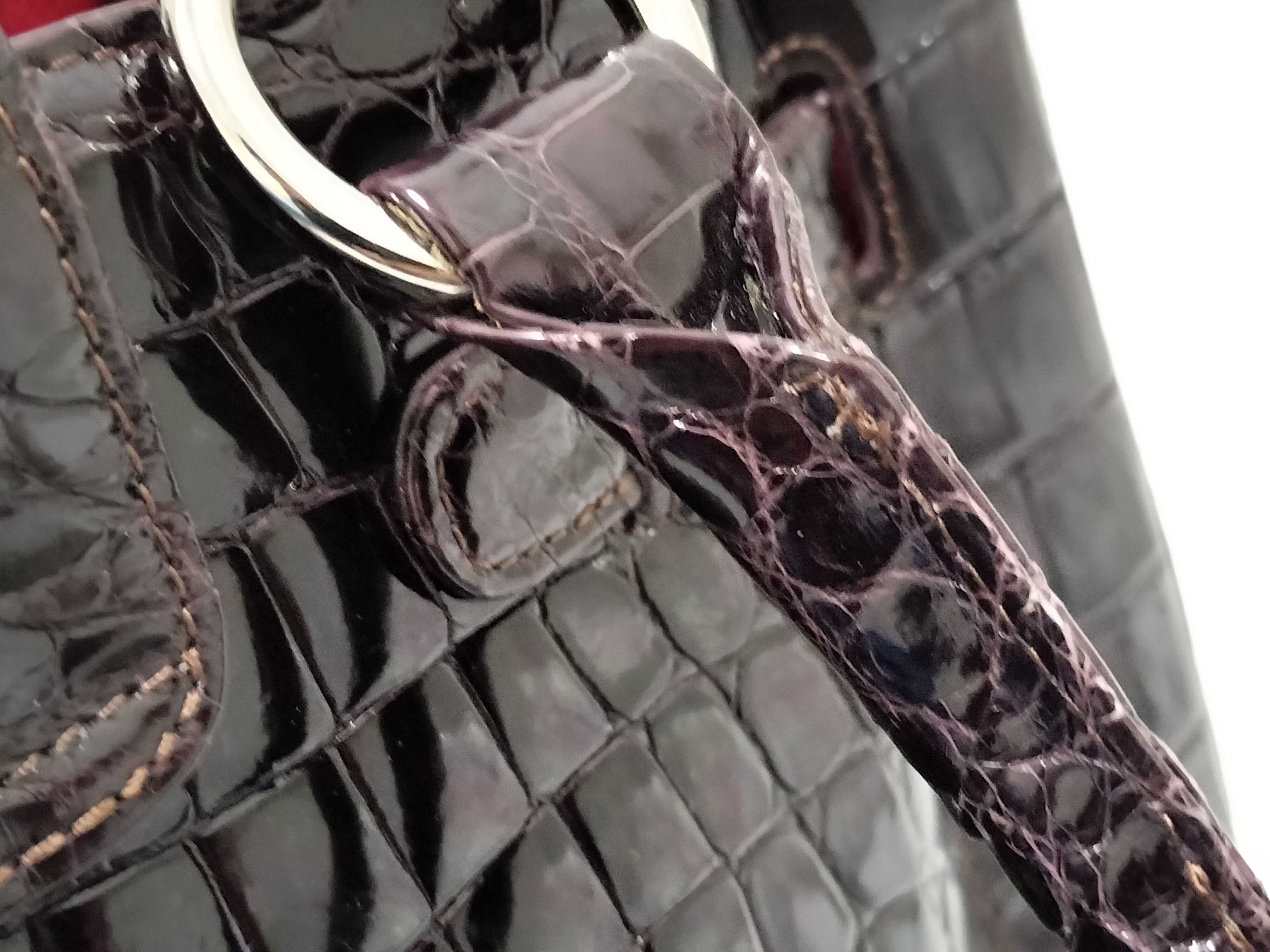 (F_1103)▼crocodile クロコダイル パープル ベルトバッグ 2way トートバッグ シャイニング ハンドバッグ
