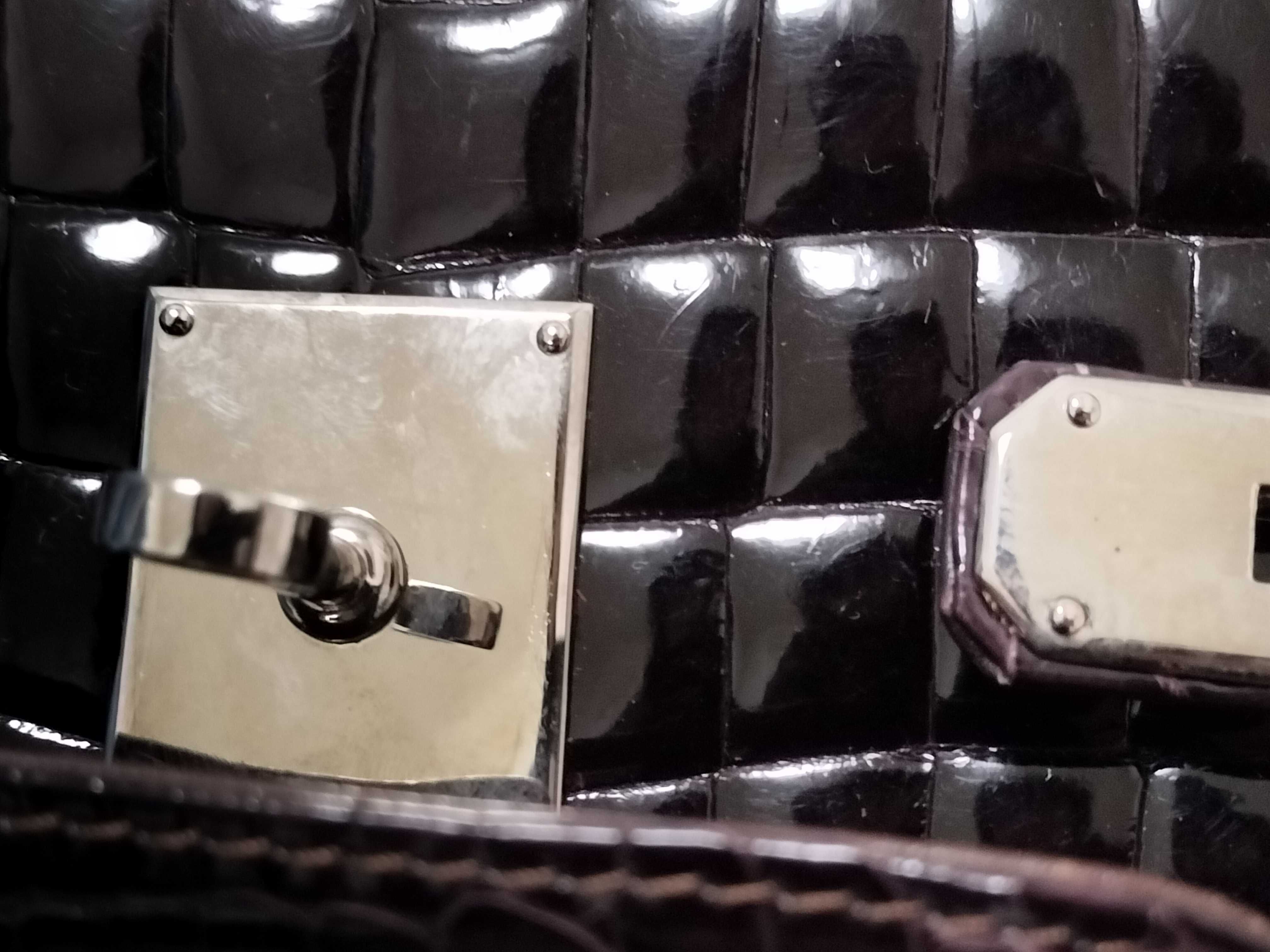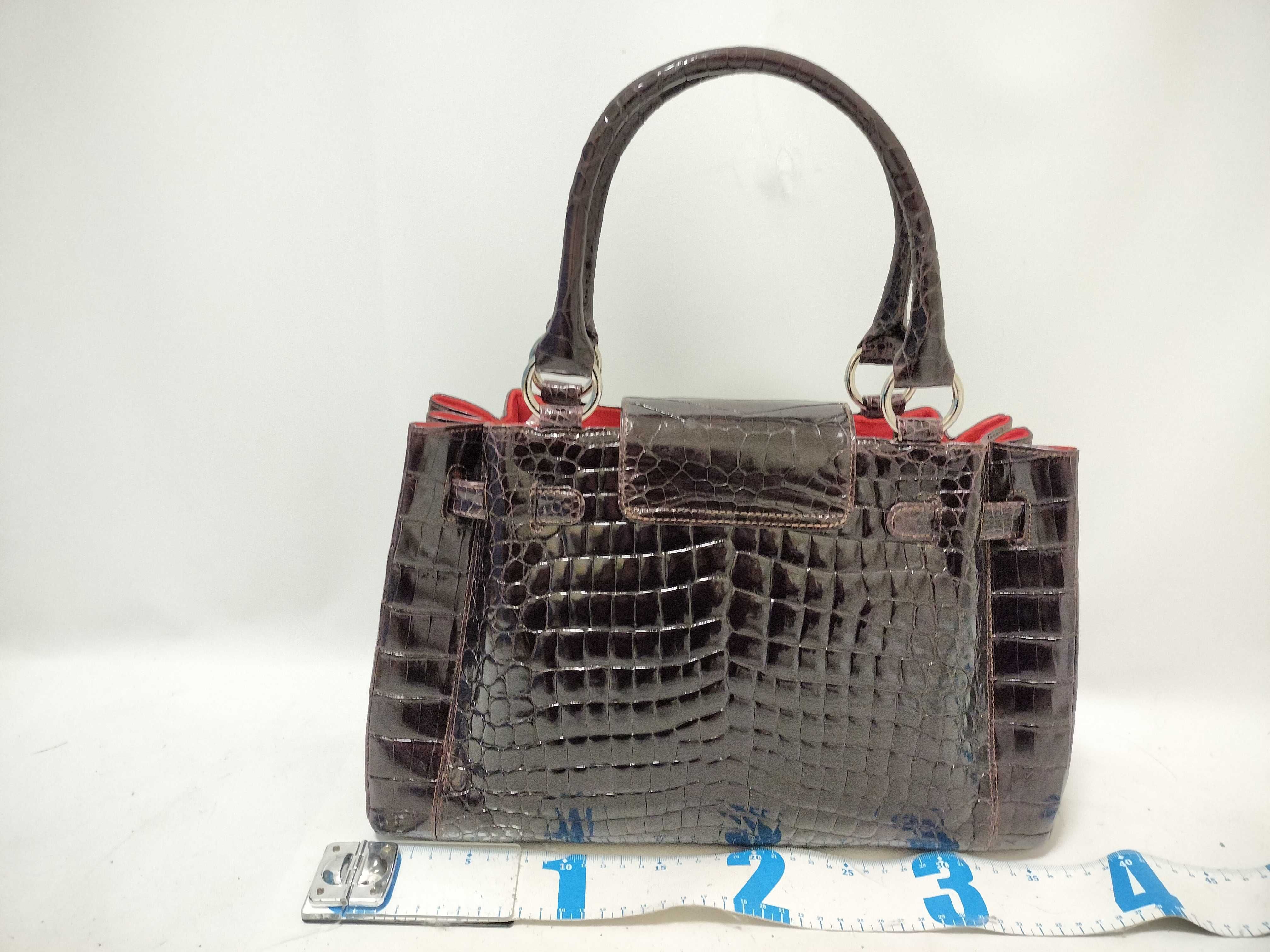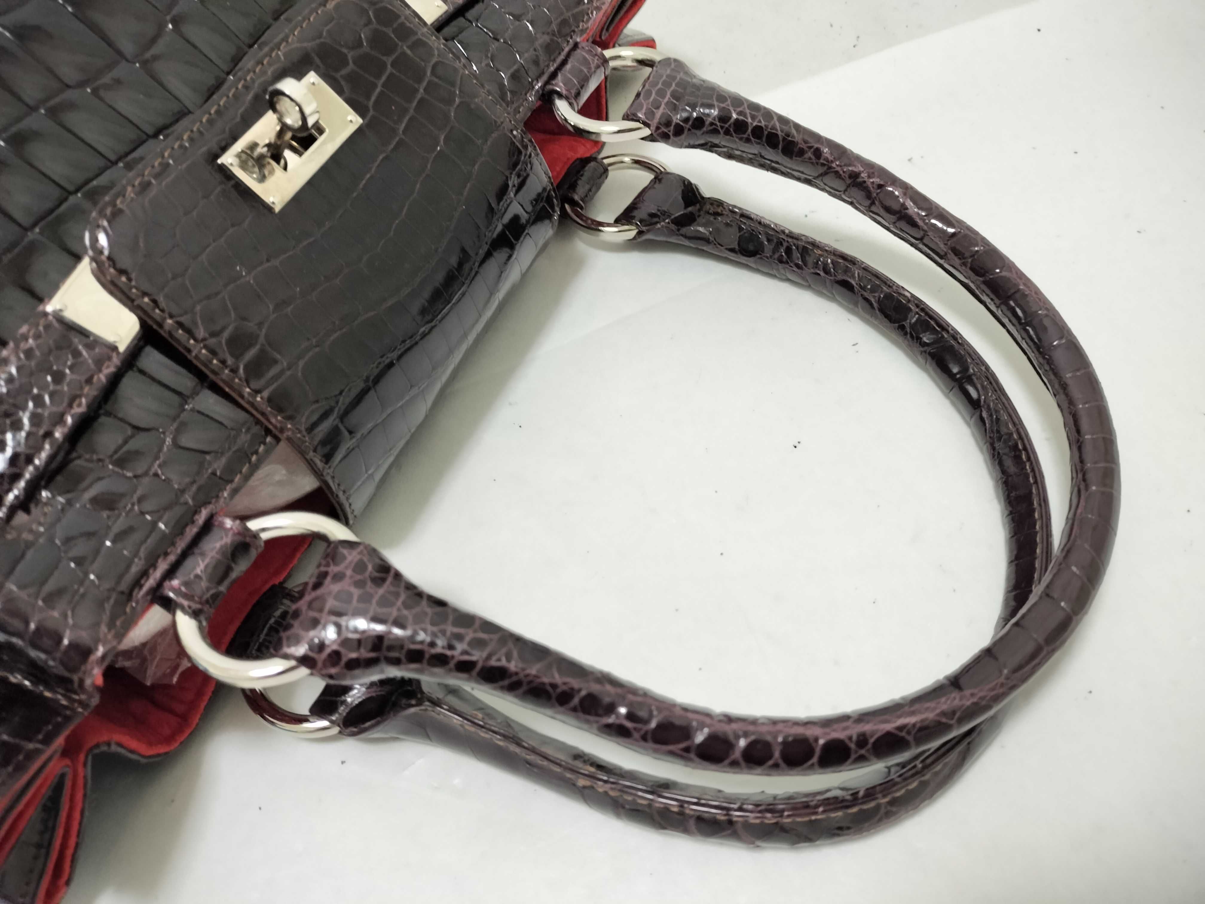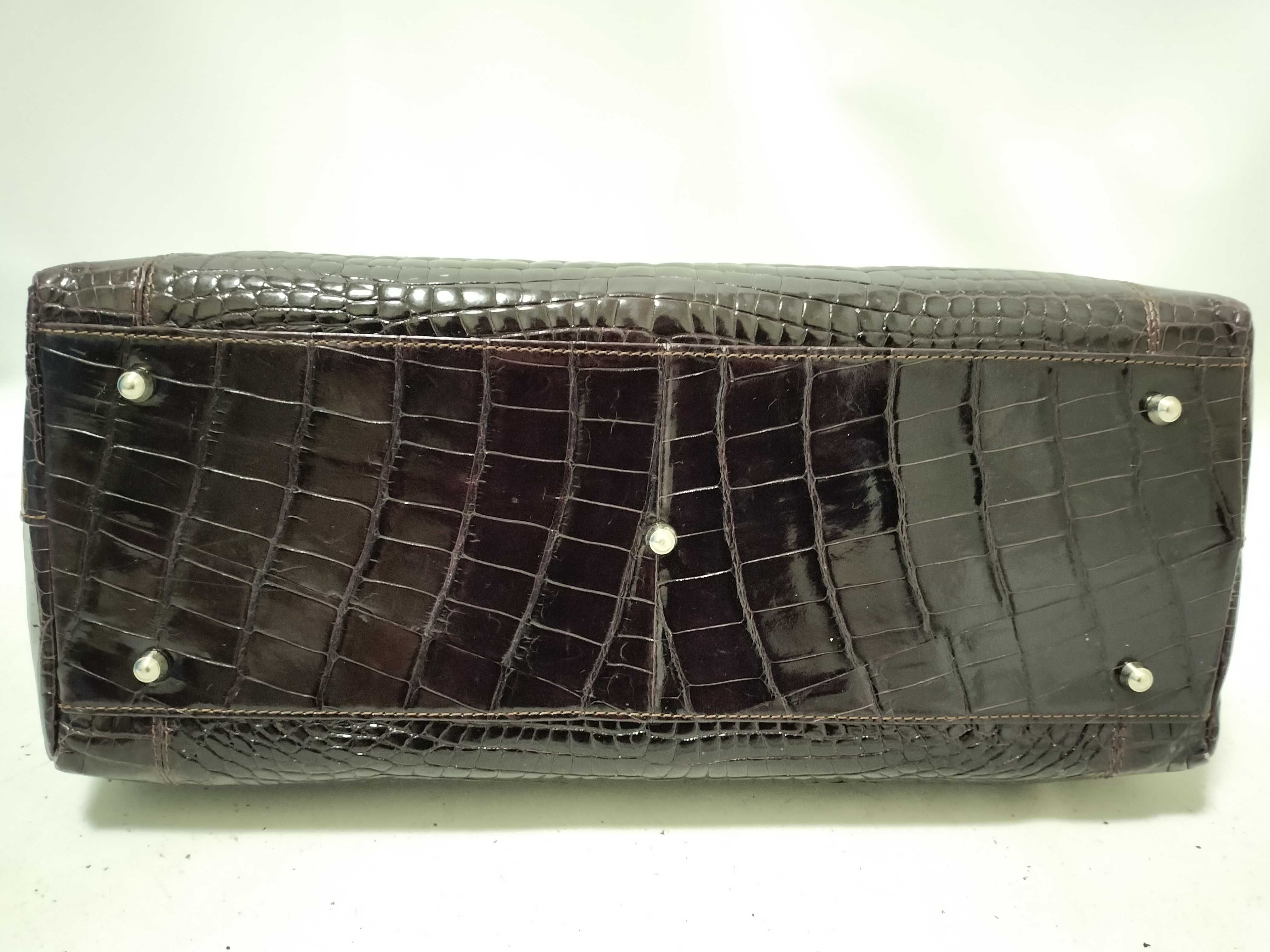 (F_1103)▼crocodile クロコダイル パープル ベルトバッグ 2way トートバッグ シャイニング ハンドバッグ