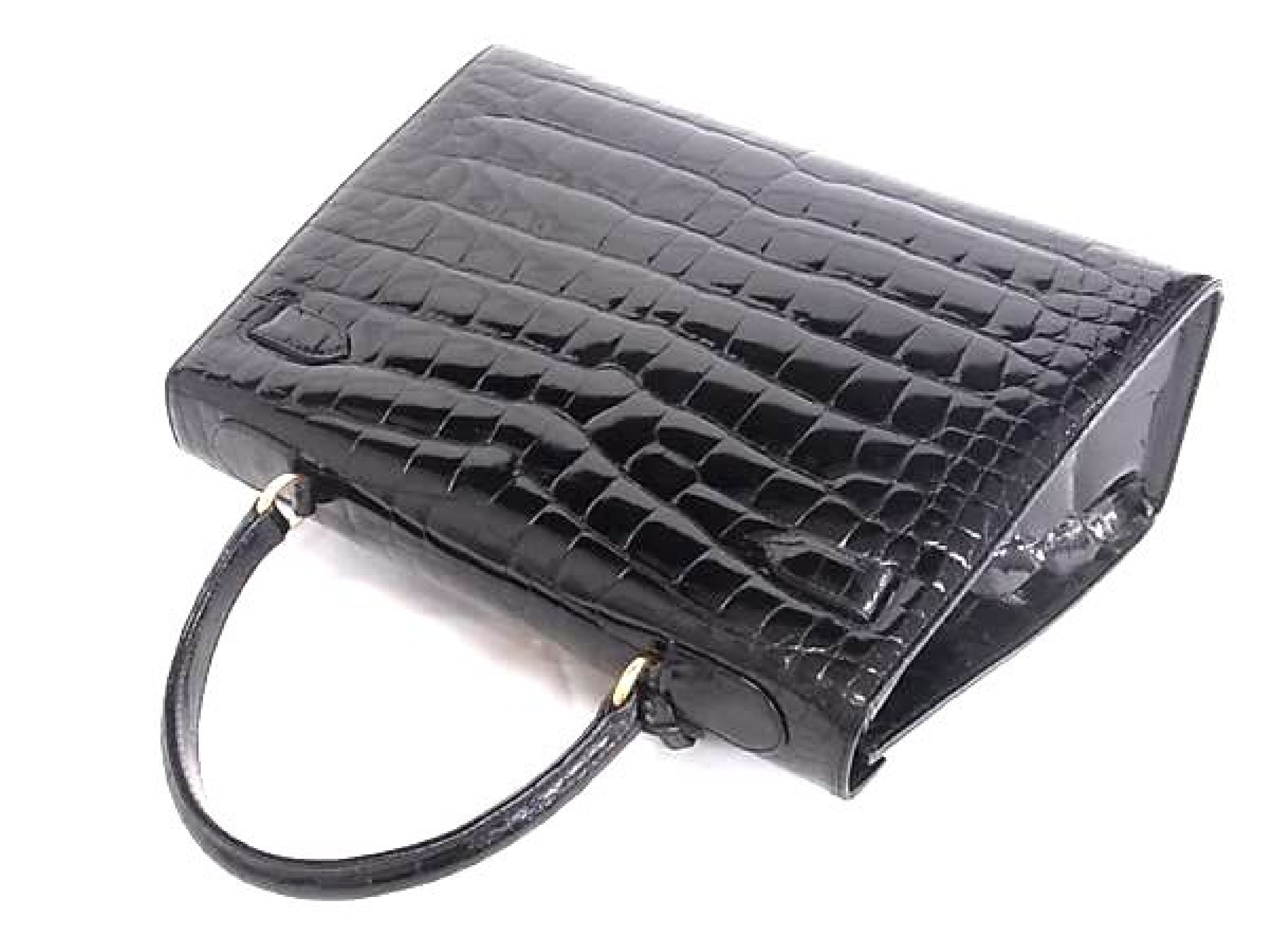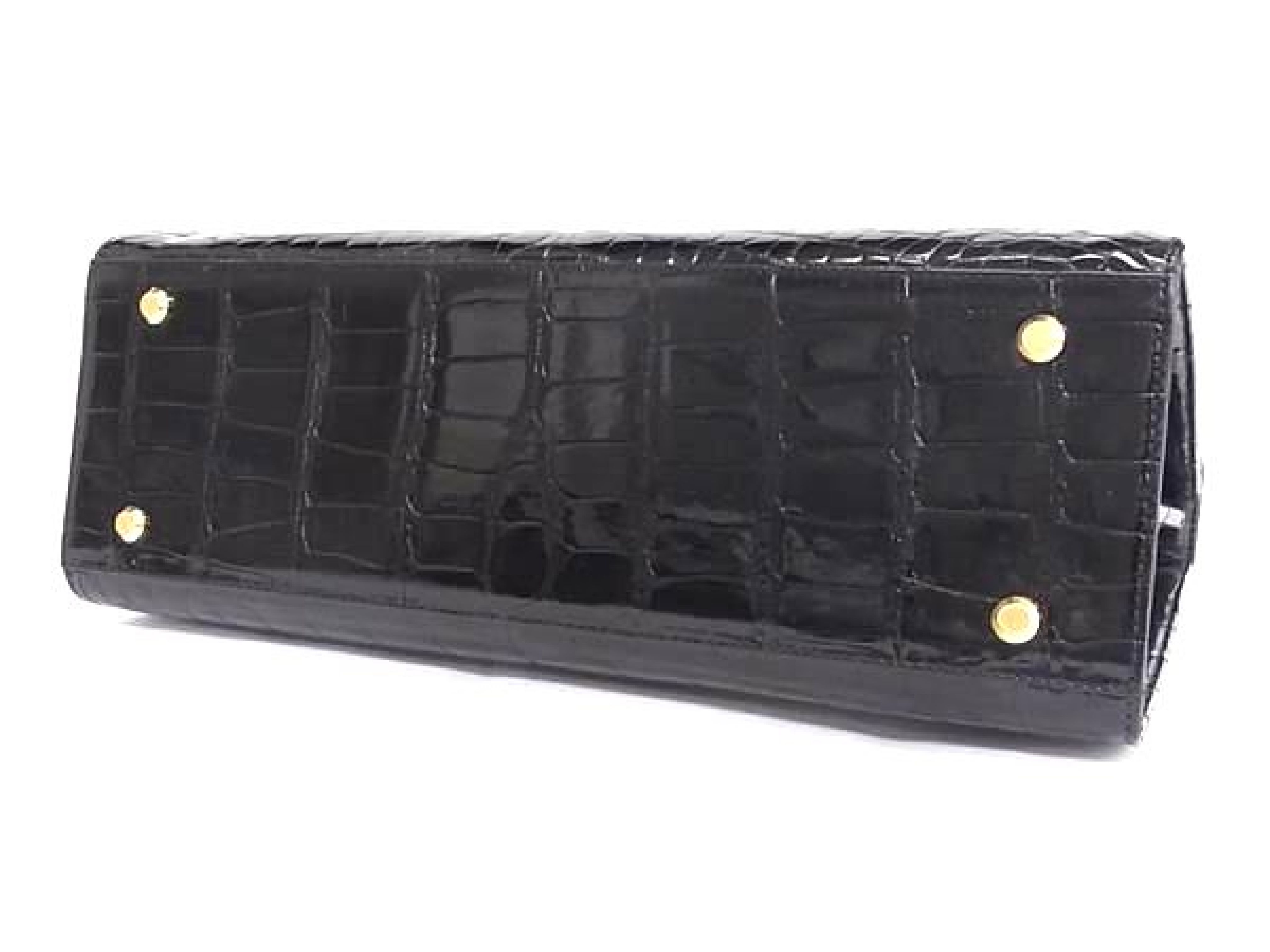 (F_1105)▼クロコダイル ワンハンドル ハンドバッグ レディース ブラック系 DB2304 ハンドバッグ