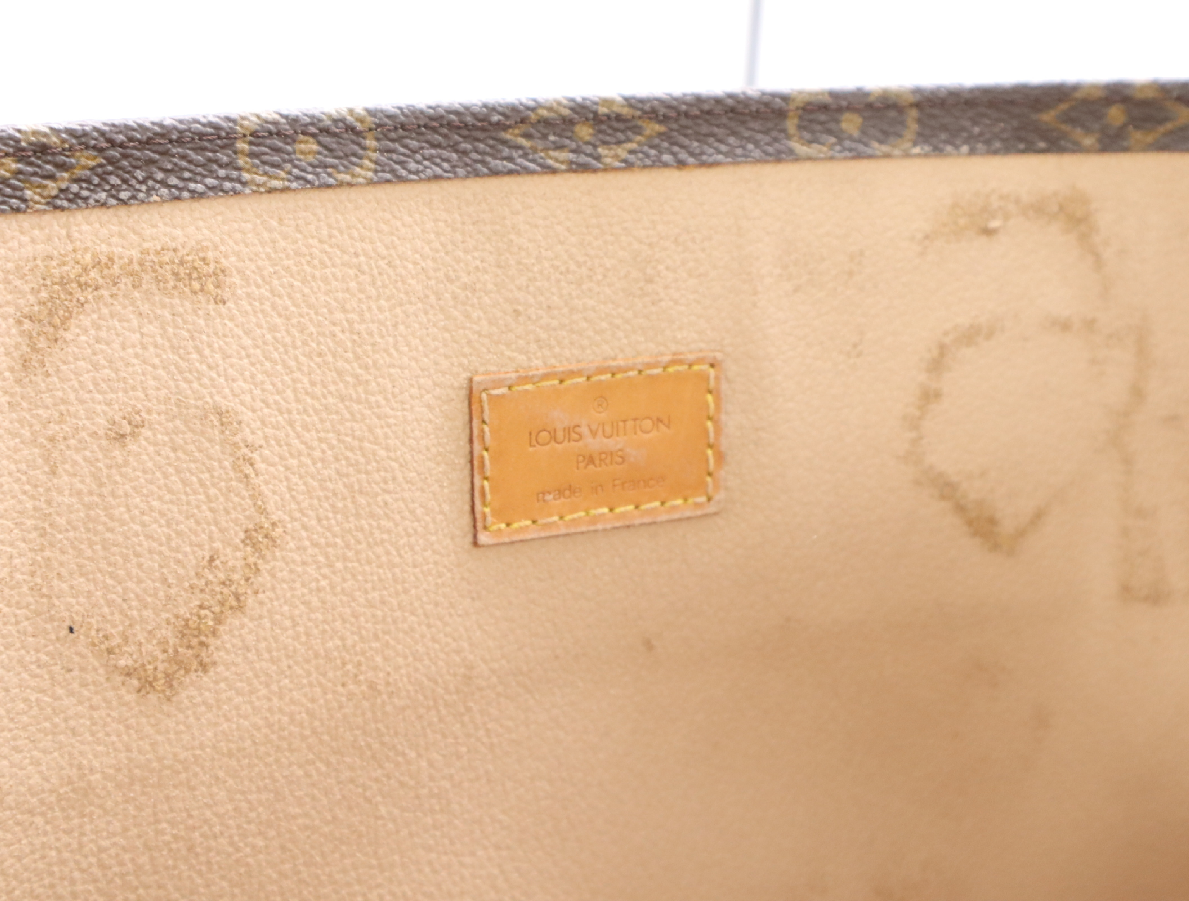 全体擦れヨレ(中) ベタつき(小) 型崩れ(中) 持ち手焼け(中) 擦れ傷(小) 付け根焼け擦れ傷(中) 金具擦れ傷青サビ(中) 内側素材劣化剥がれベタつき(大)","タイプライン":"モノグラム","カテゴリ":"バッグ","形状コード":"トートバッグ","付属品コード":"","シリアル・シール・型番":"RFID確認できず MI1907"