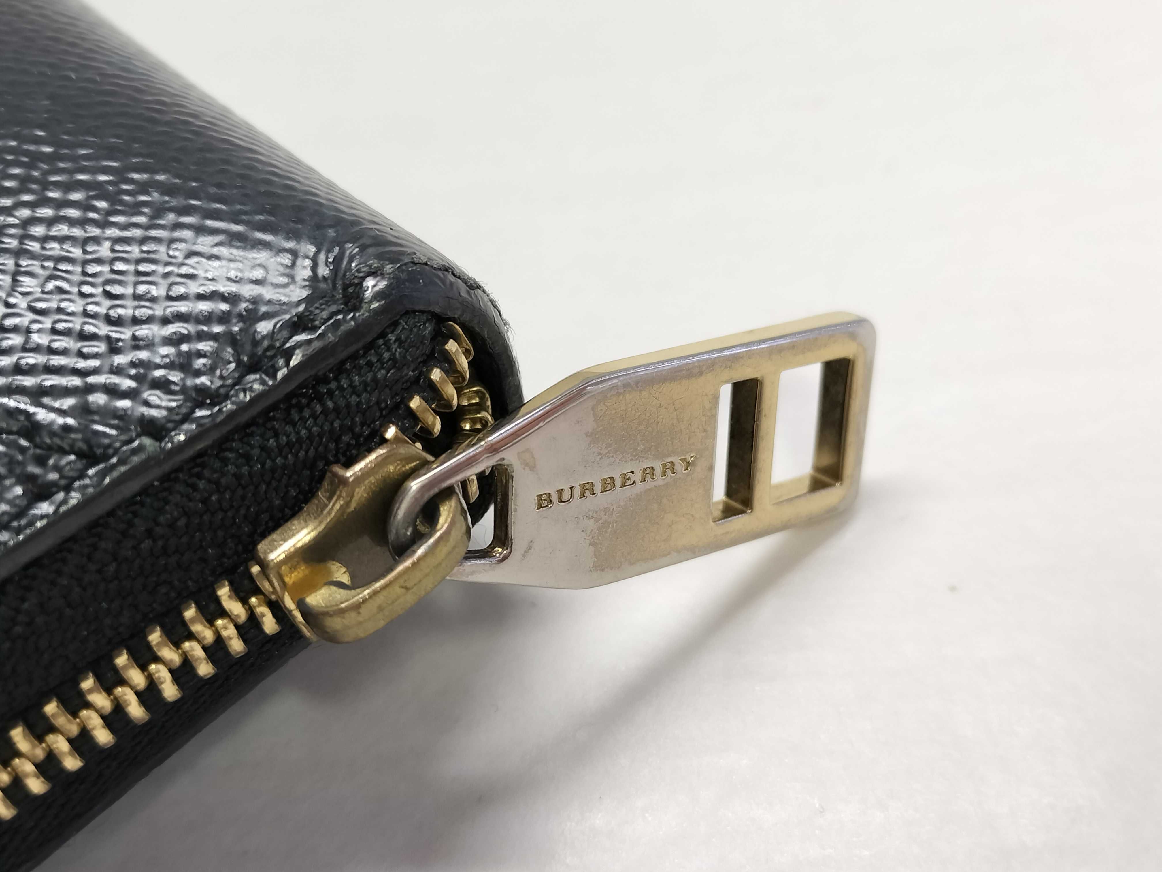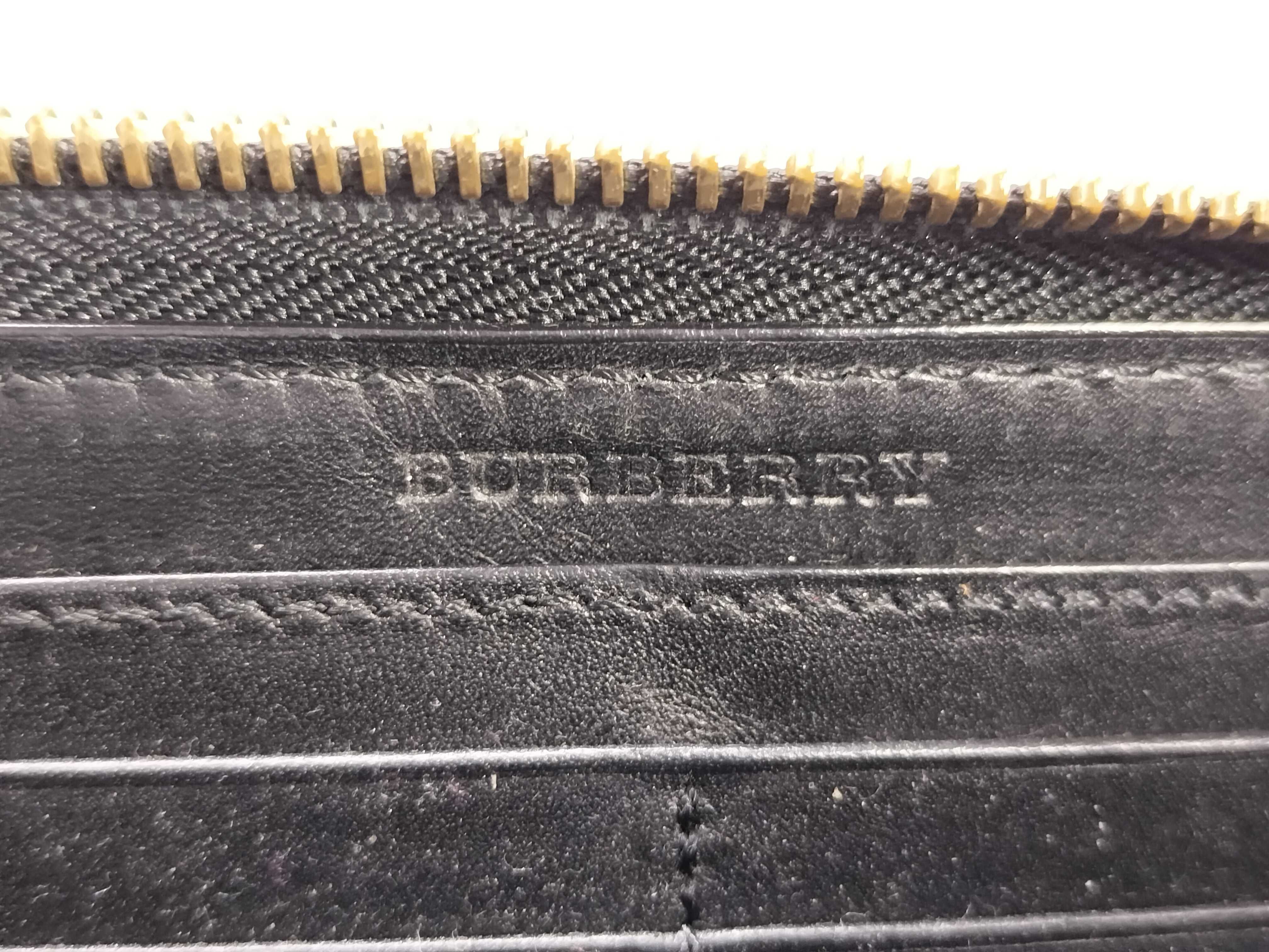 (H_0963)BURBERRY バーバリー レザー ラウンドファスナー長財布 ブラック 財布