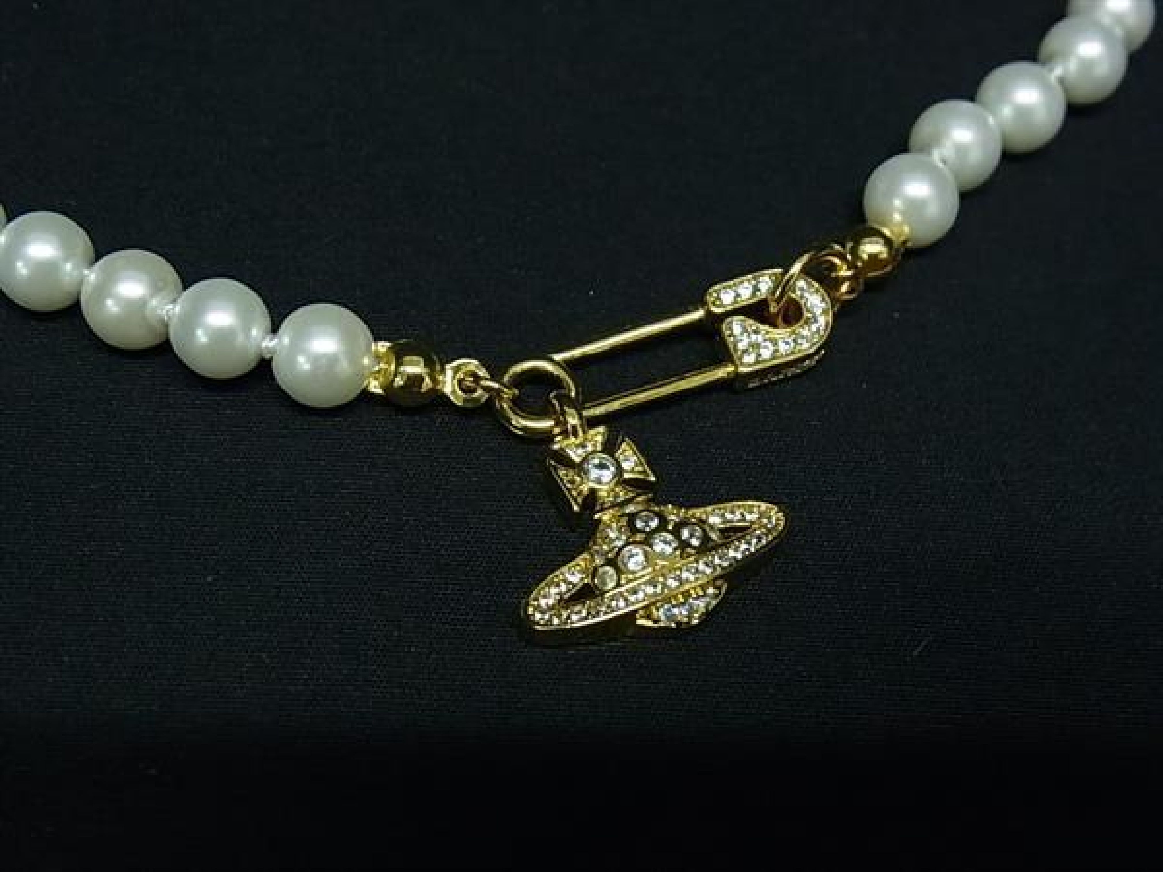 (H_1062)Vivienne Westwood ヴィヴィアン セーフティピン オーブ パール ネックレス アクセサリー アイボリー系 FP4838 ネックレス