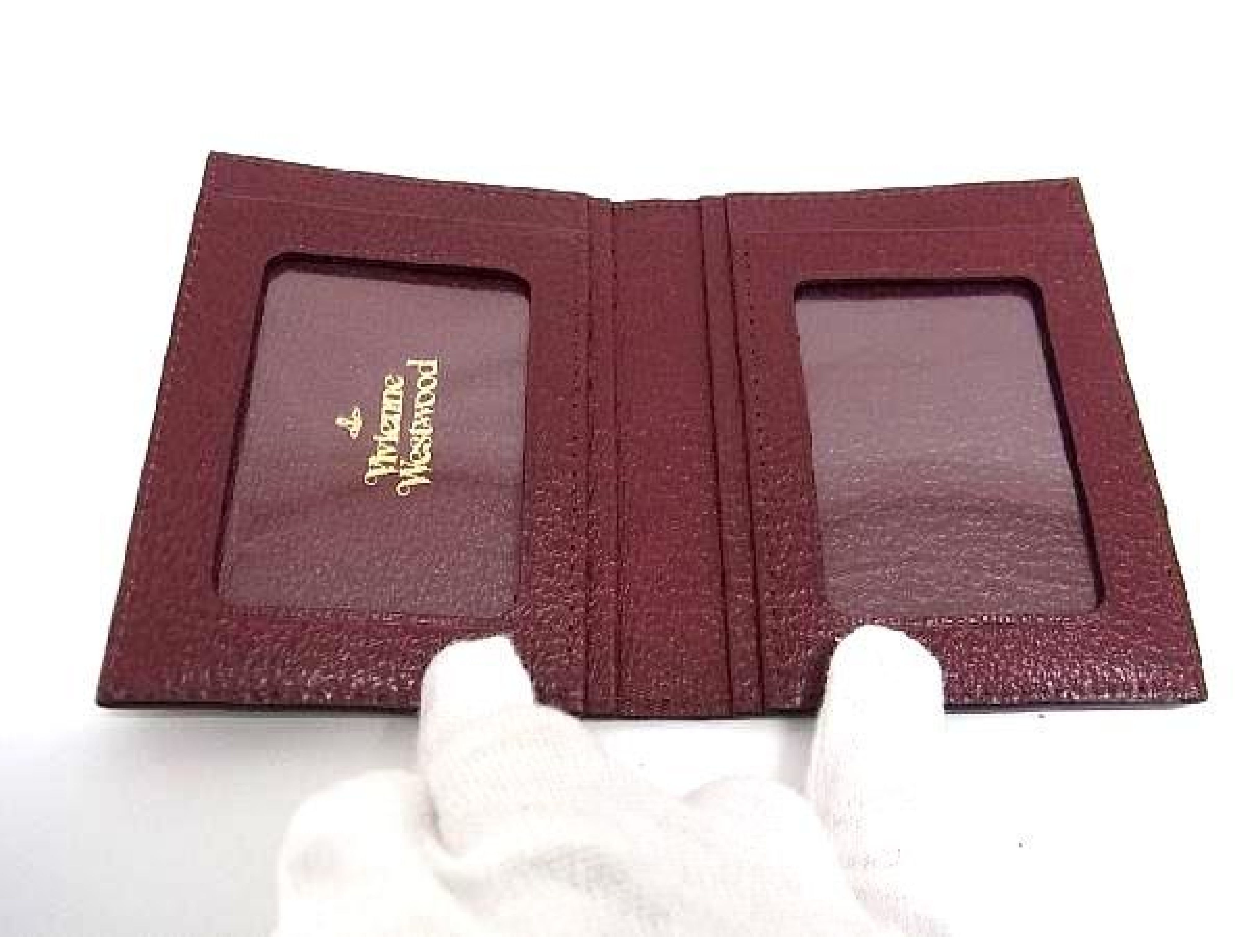 (H_1084)Vivienne Westwood ヴィヴィアンウエストウッド レザー カードケース カード入れ 名刺入れ ボルドー系 カードケース・パスケース・名刺入れ