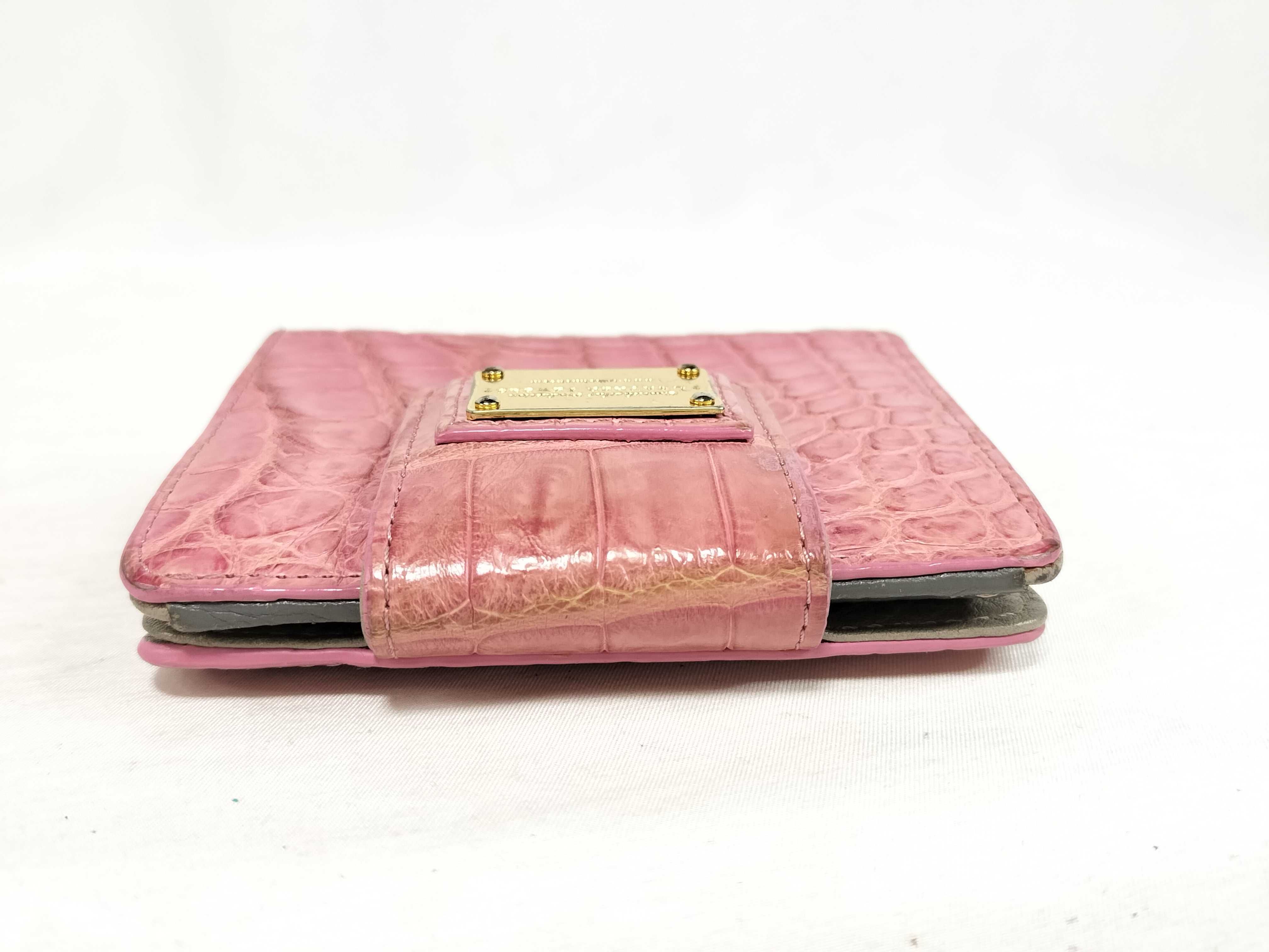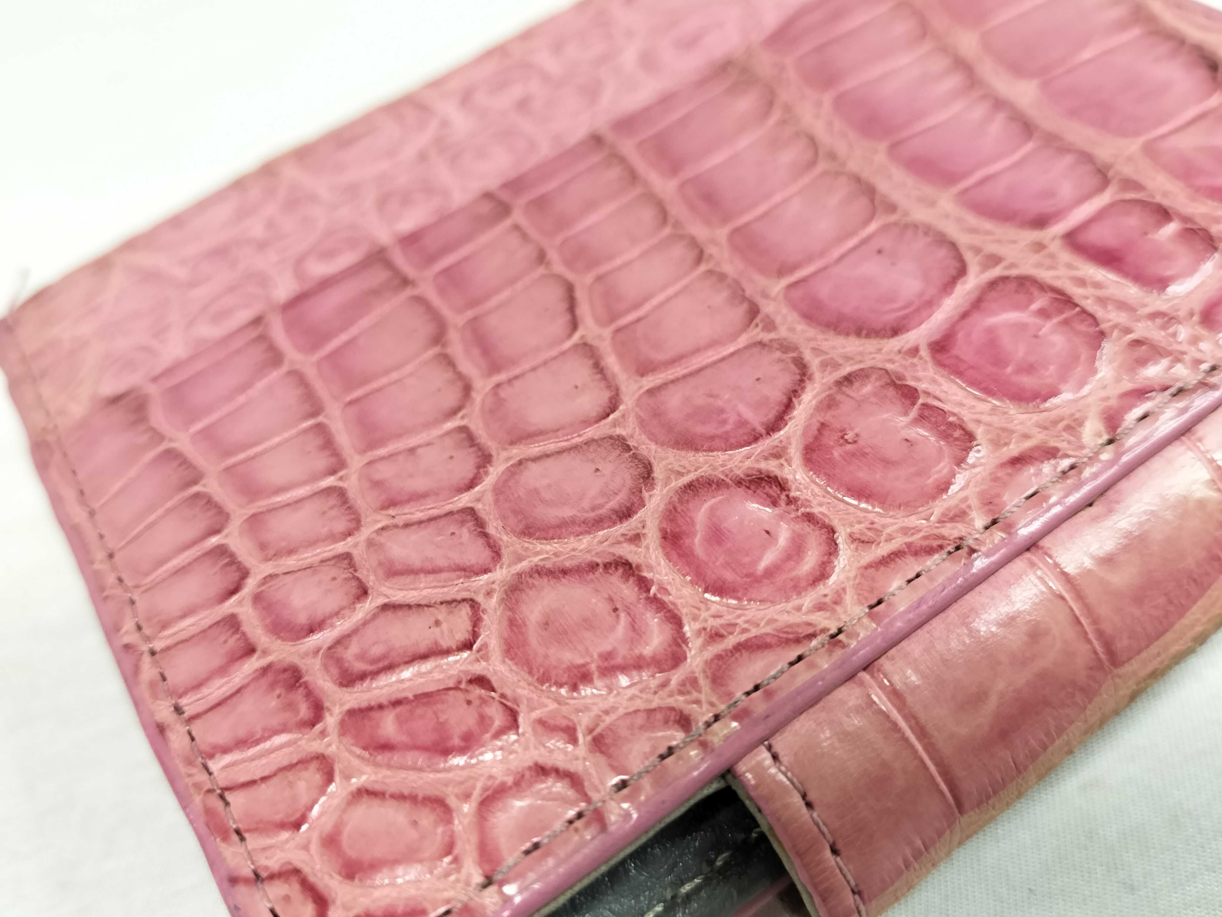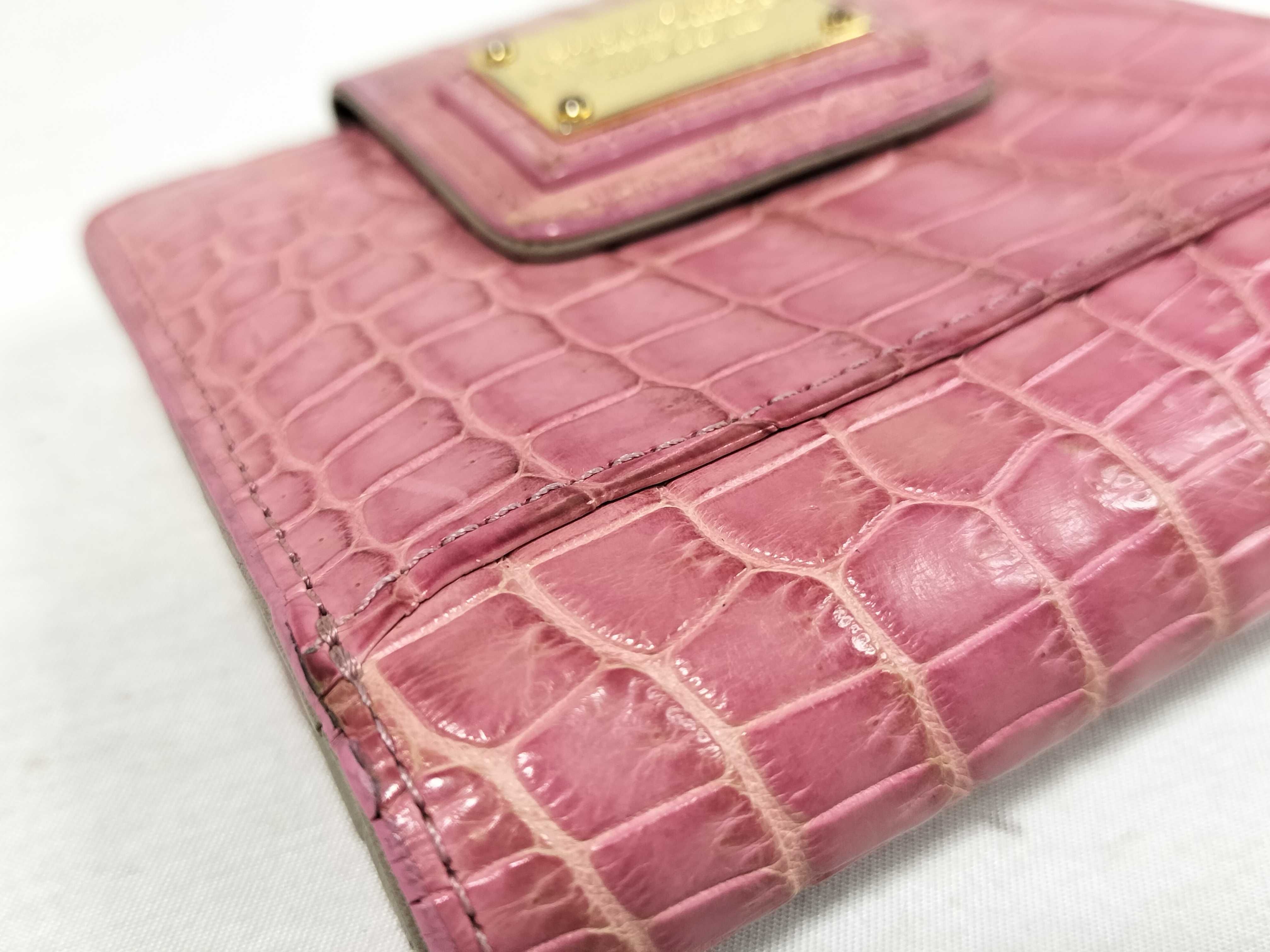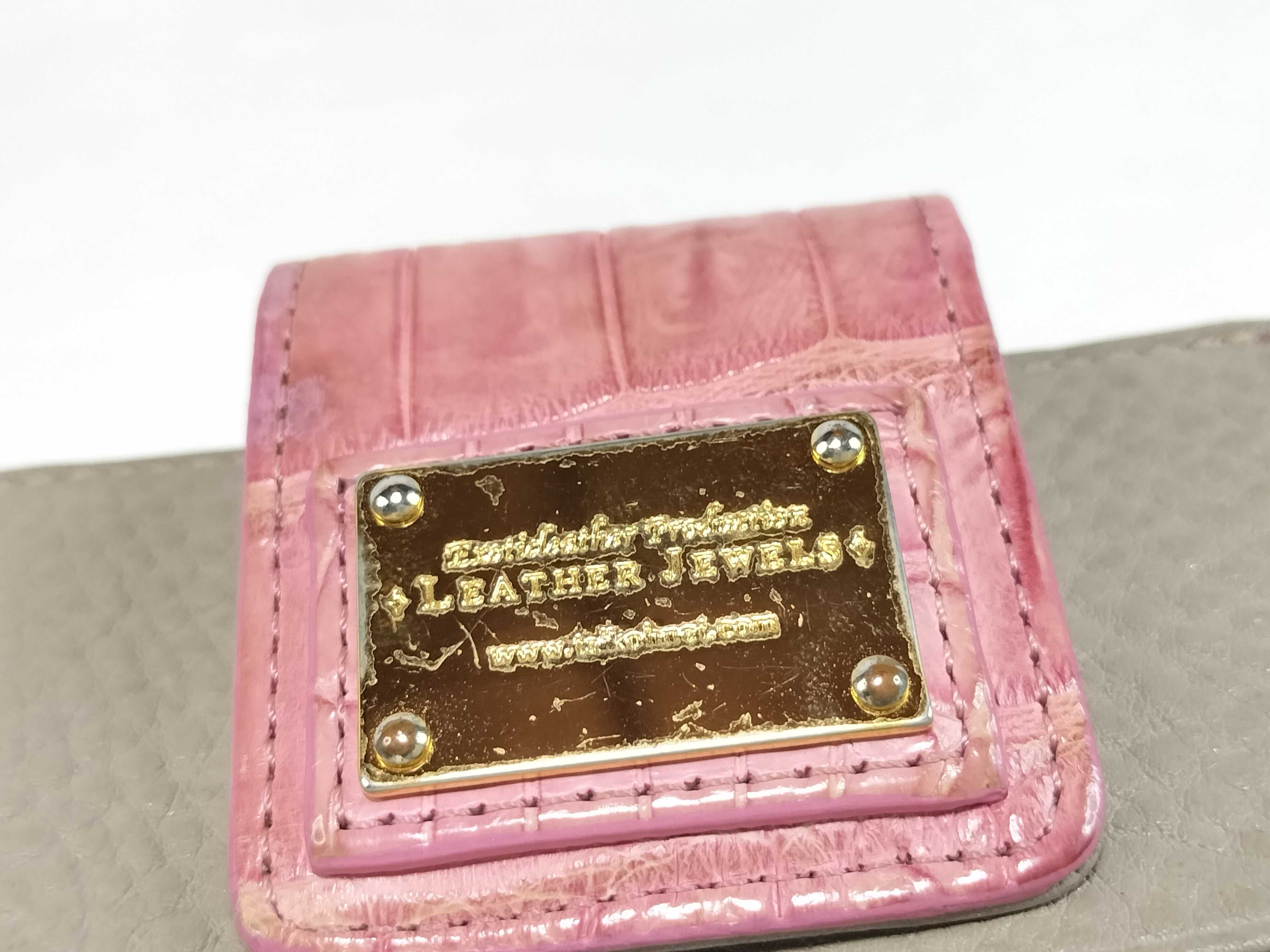 (H_1369)leather jewels レザージュエルズ 折り財布 ピンク クロコ型押し系 財布