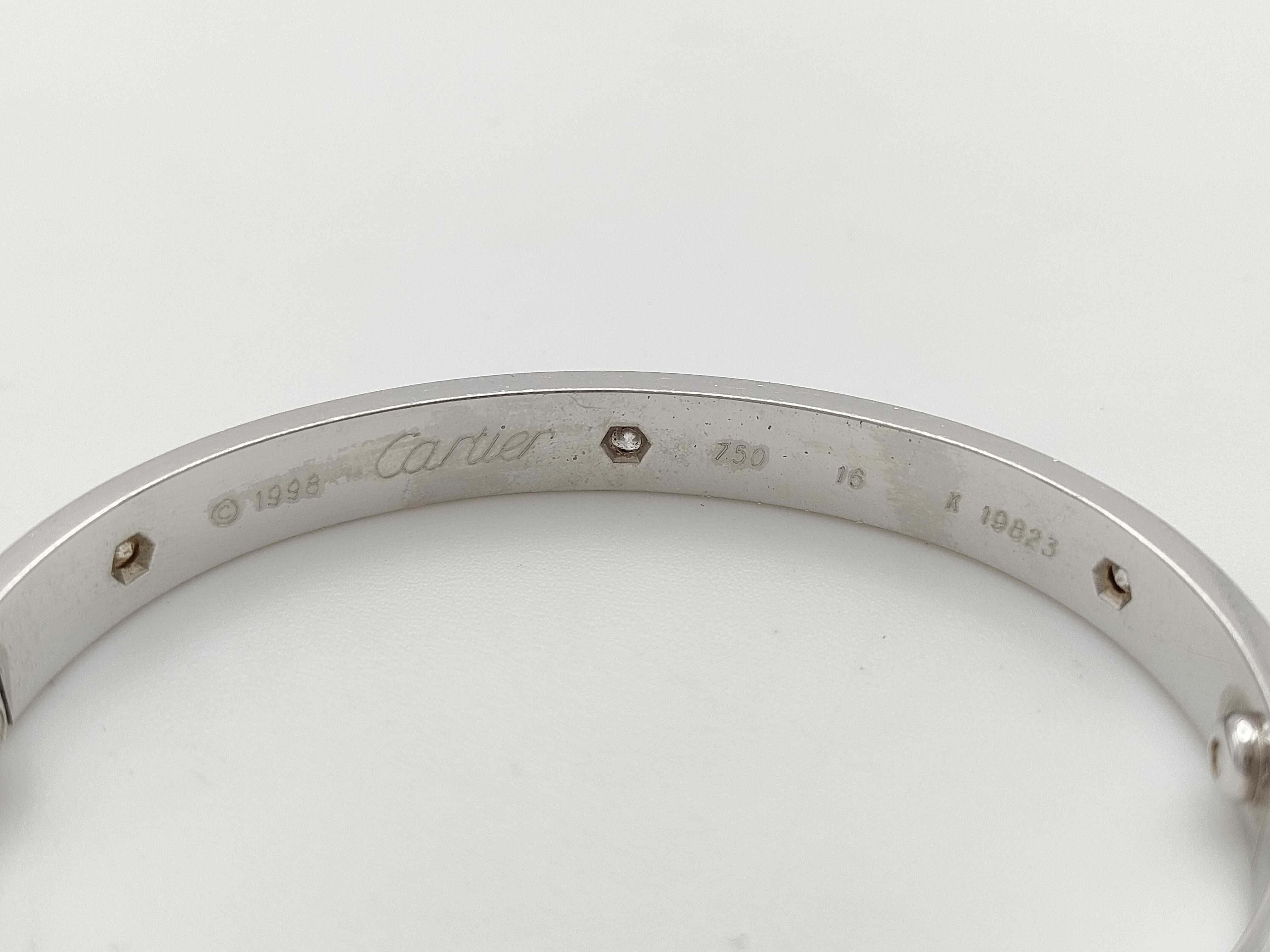 (10981_0474)Cartier 旧型ラブブレス #16 ハーフダイヤ WG 750 30.5g ブレスレット・バングル(貴金属)