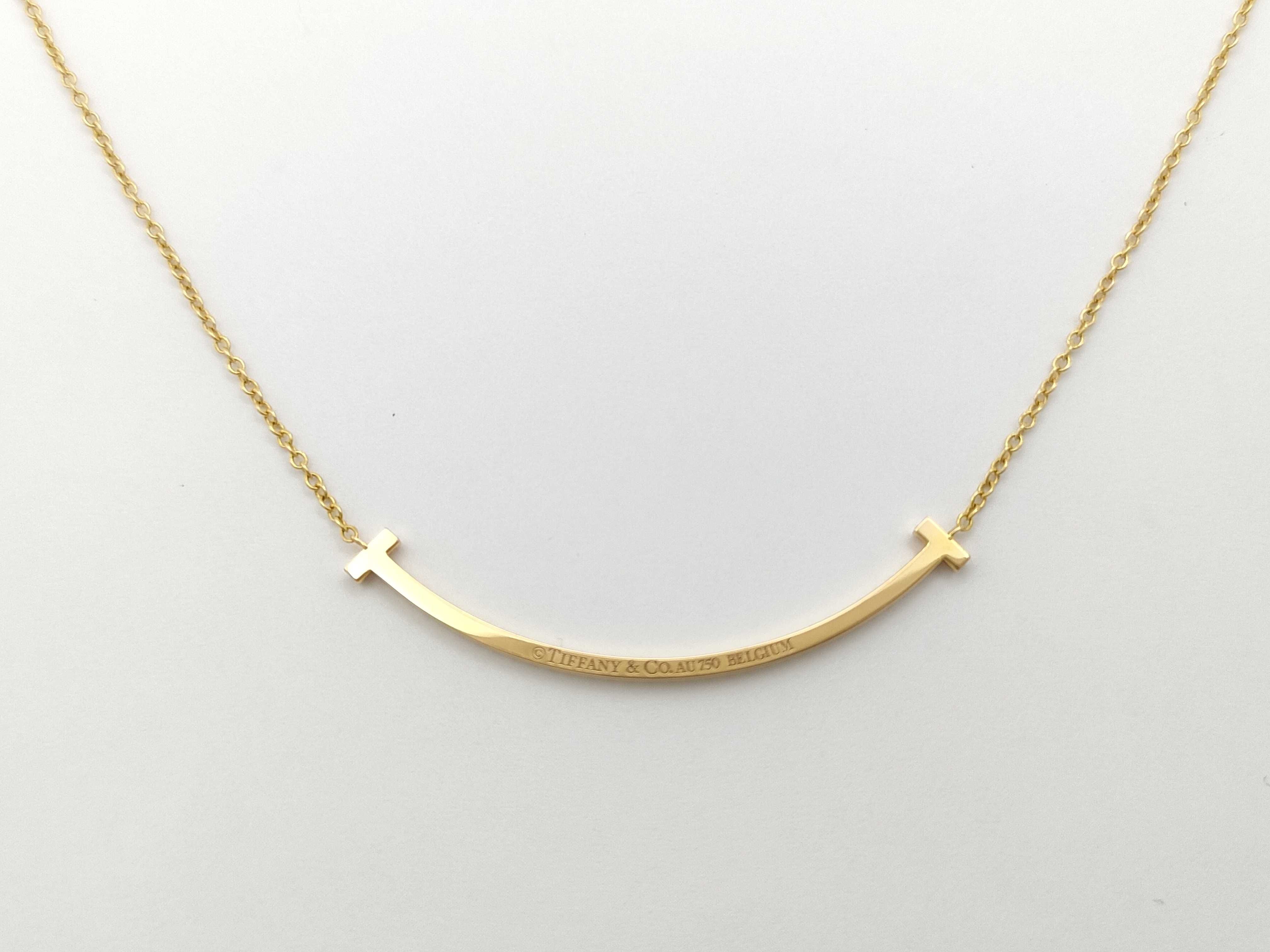 (10981_0489)Tiffany&Co. Tスマイル スモール ダイヤ YG AU750 2.1g ネックレス(貴金属)
