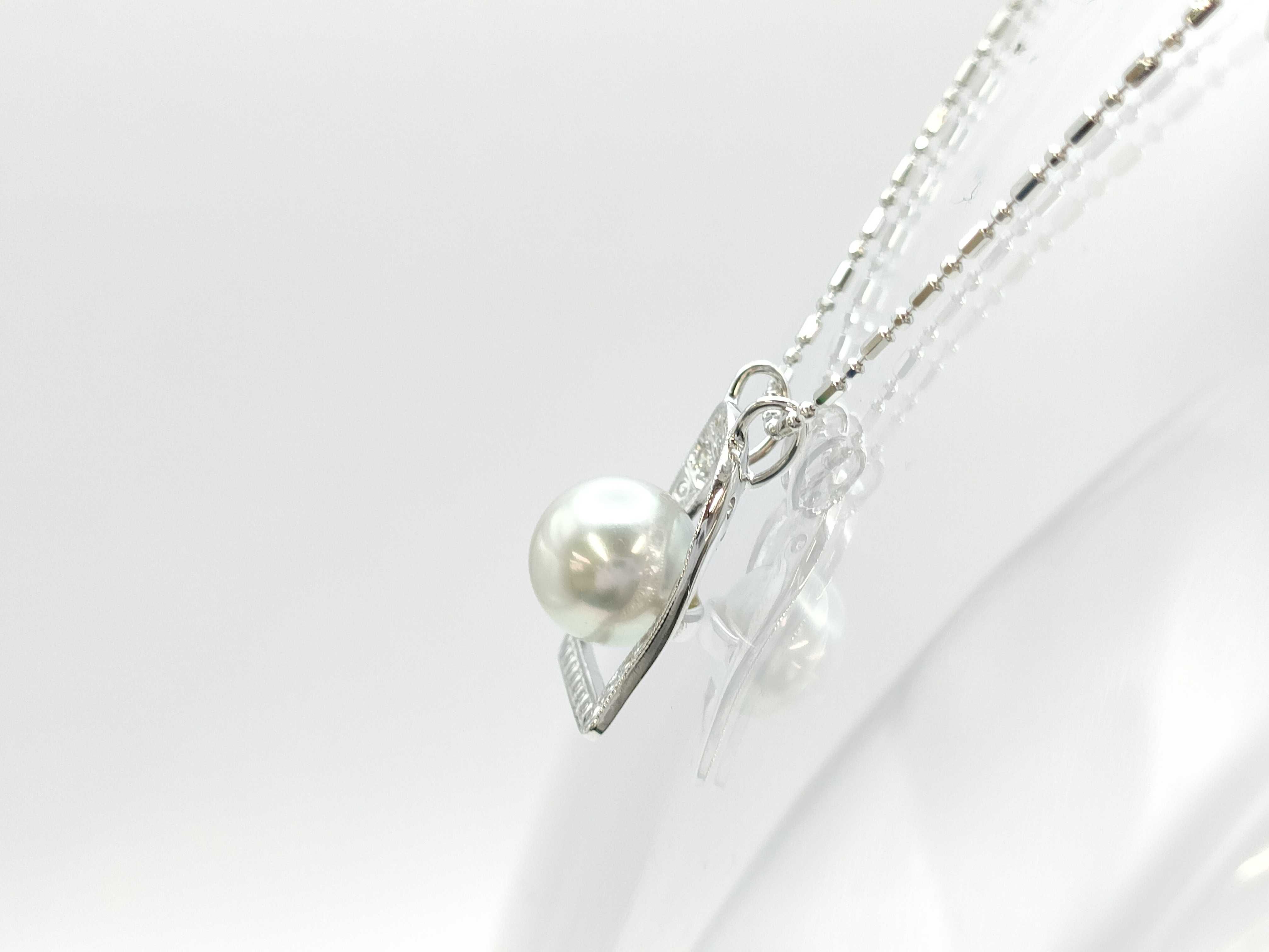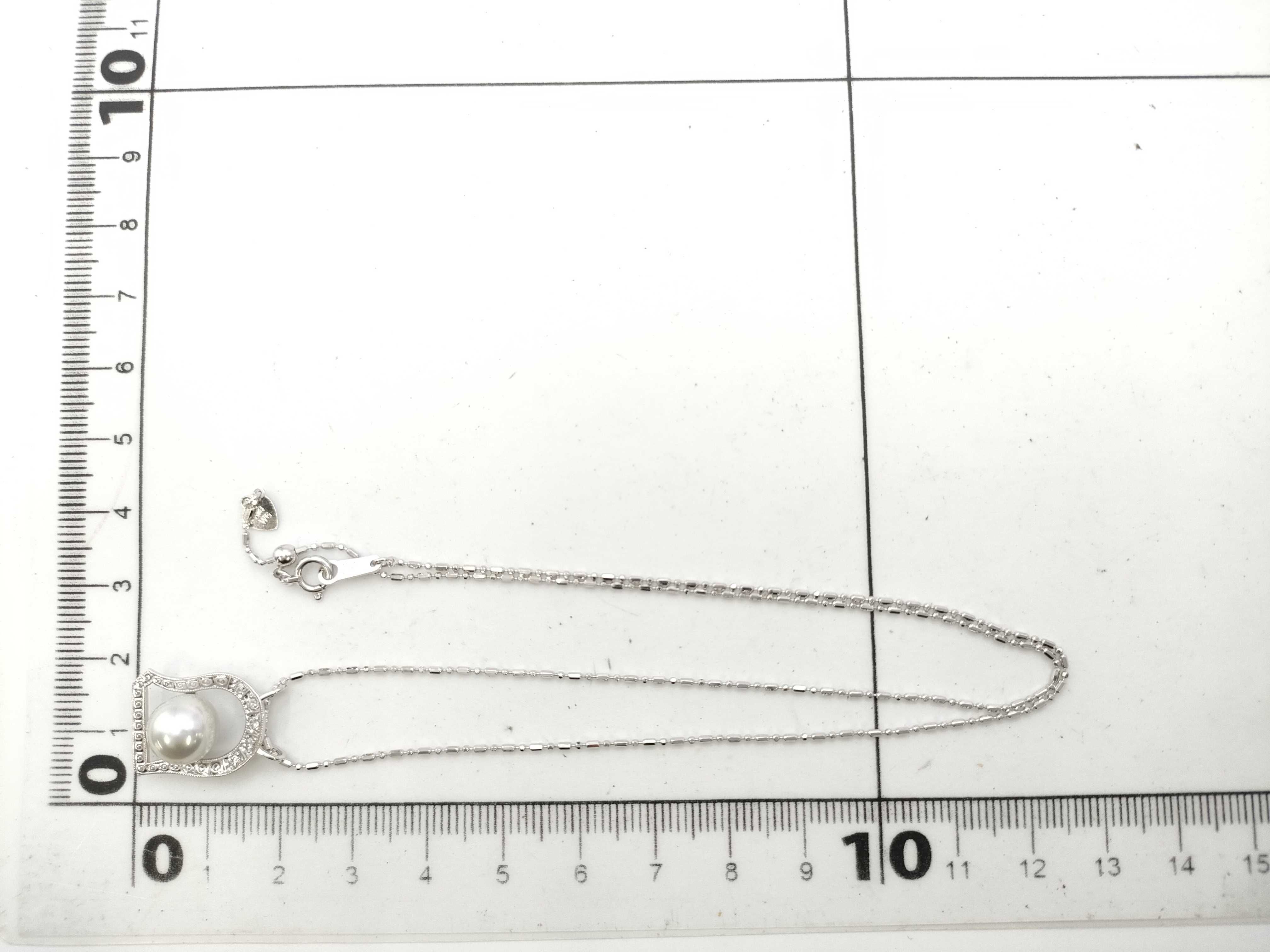 (10981_0508)パール 直径 約8.6mm D0.10ct K18WG 4.9g ネックレス(貴金属)