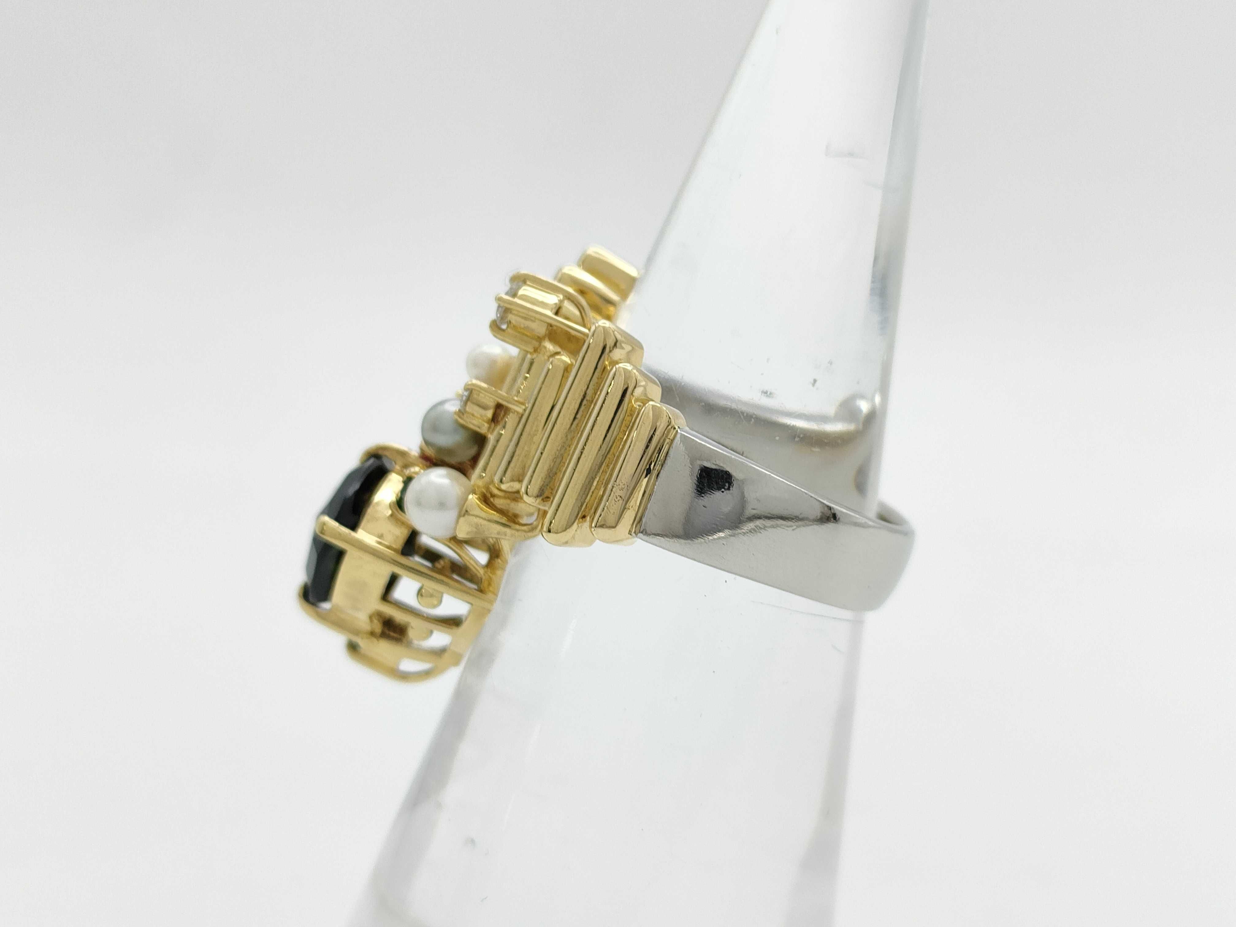 (10981_0751)福原 佐智 TL1.76ct ガーネット スピネル パール直径 約2.3-3.2mm D0.09ct PT900/K18 14.3g リング(貴金属)