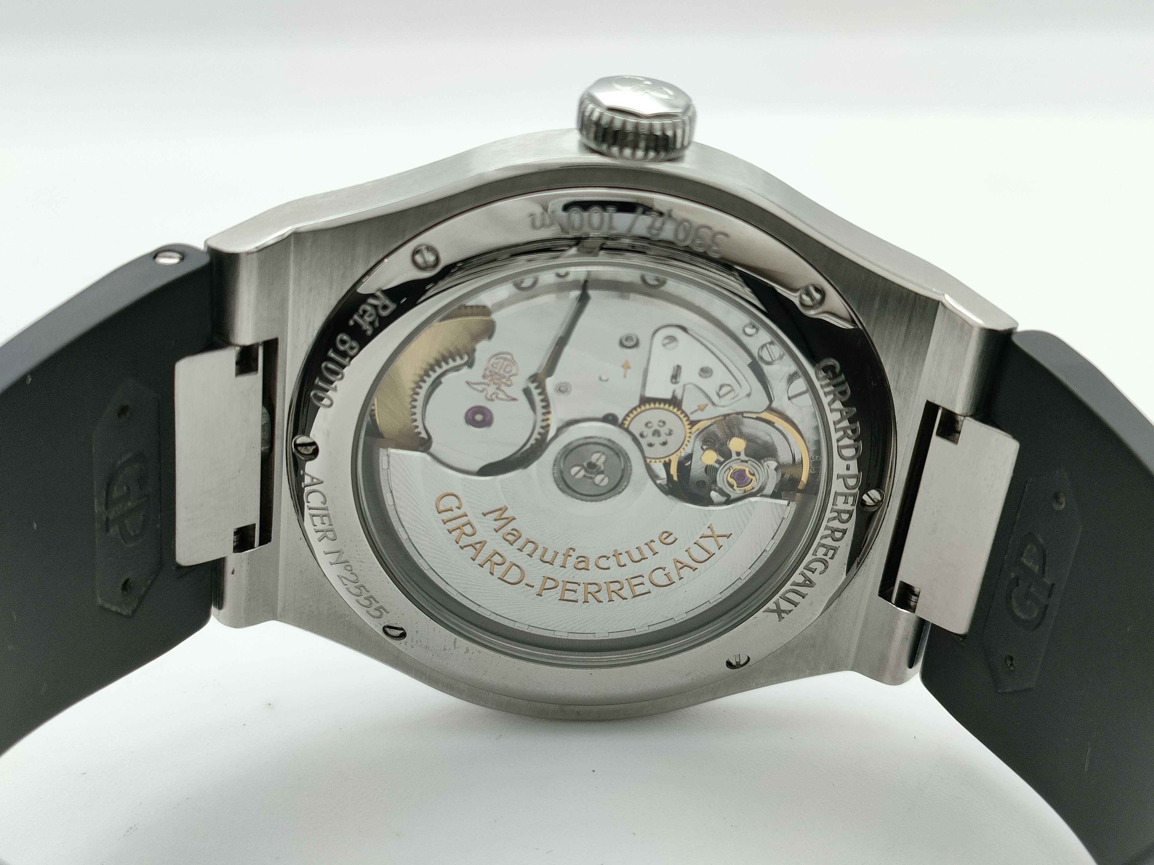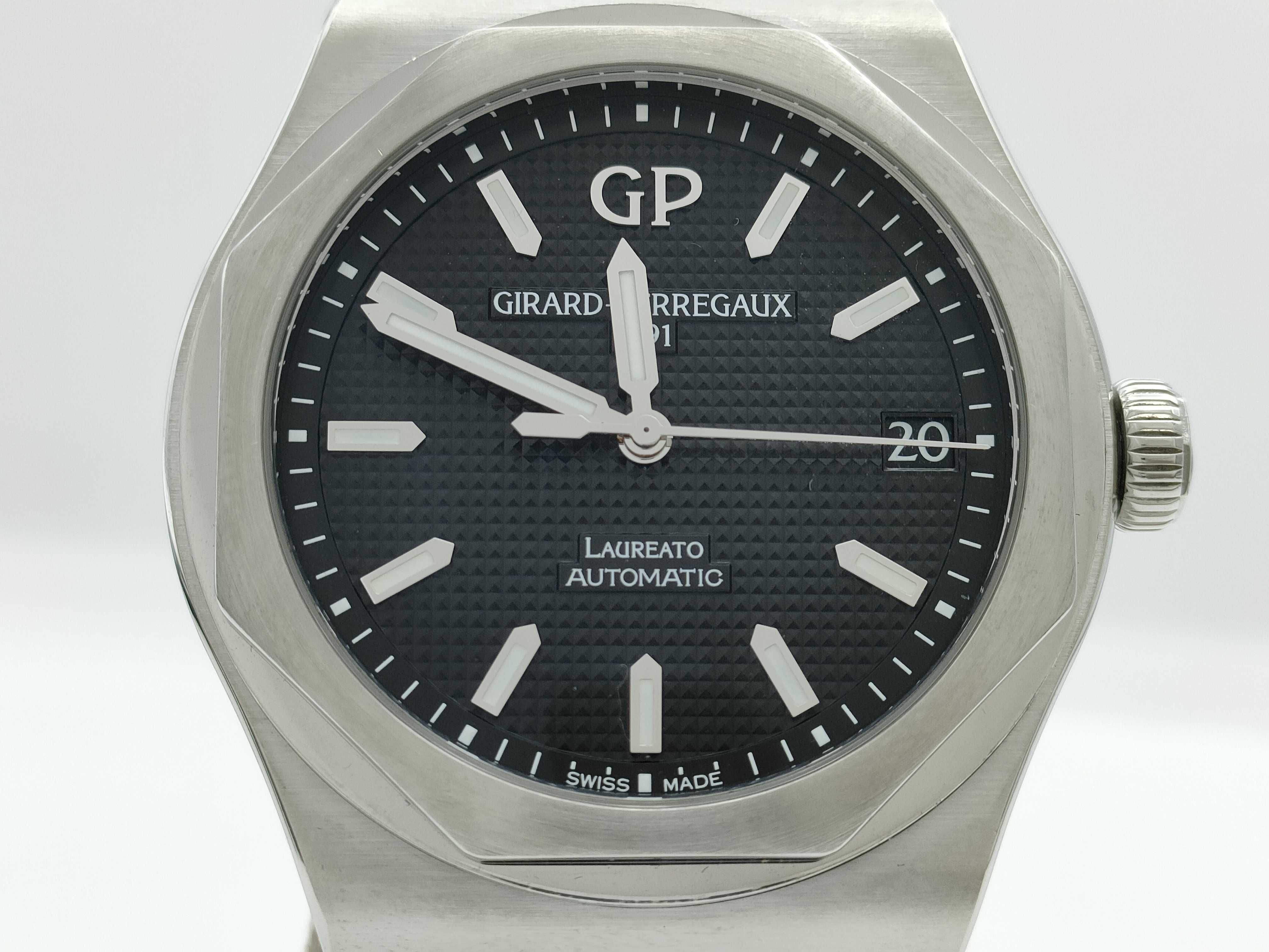 (K_0191)▼GIRARD PERREGAUX ロレアート 81010-11-634-BB6A 2555 オートマ 黒文字盤 メンズ腕時計
