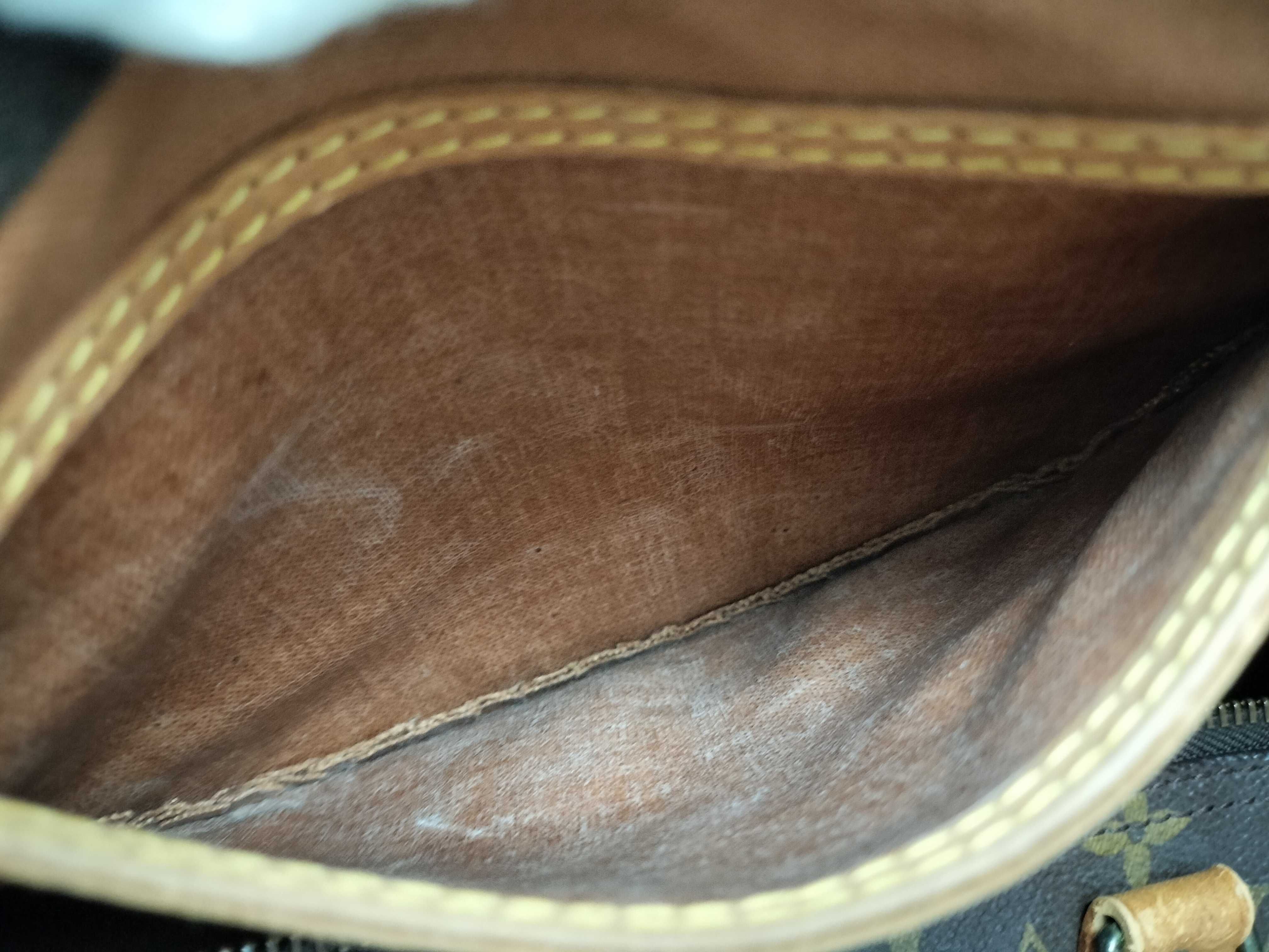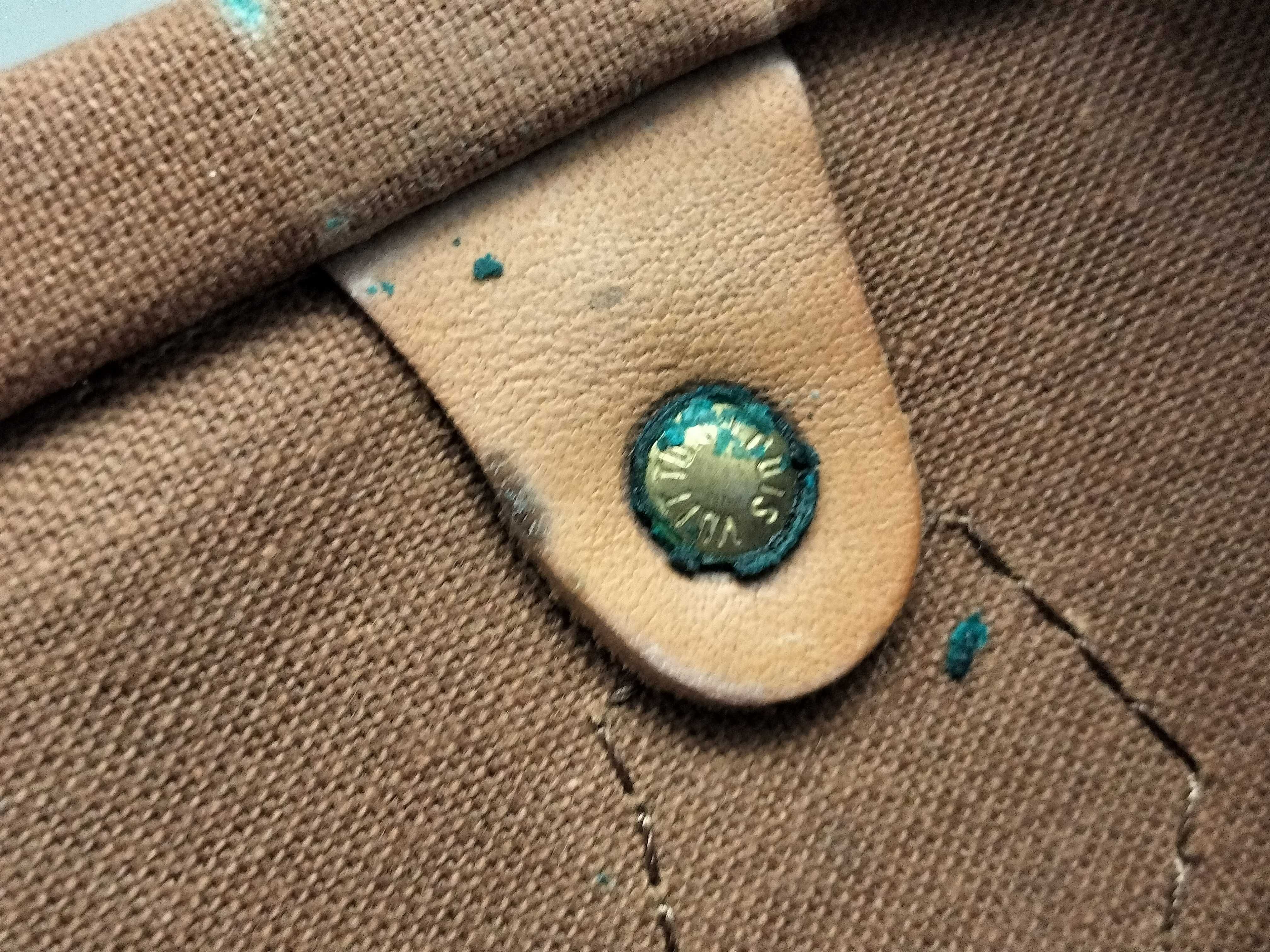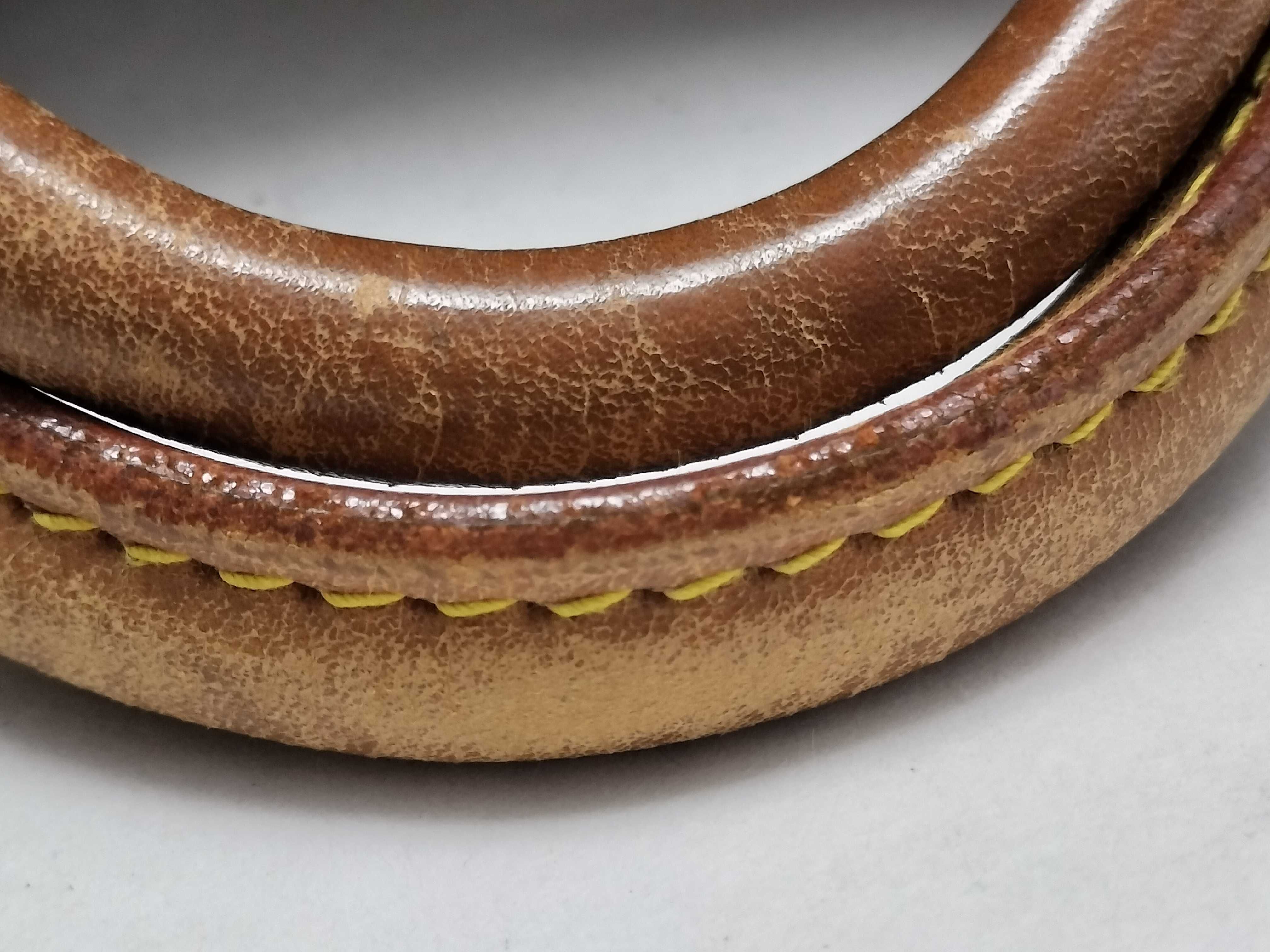 全体擦れ(中) 角擦れ(中) ヌメ革焼け擦れ(中)シミ(小)持ち手擦れ(大)金具擦れ青サビ(中)内側擦れシミ(小)バイヤス破れ(小)ファスナープル革ヒビ(小)耳ヒビ(中)【付属品