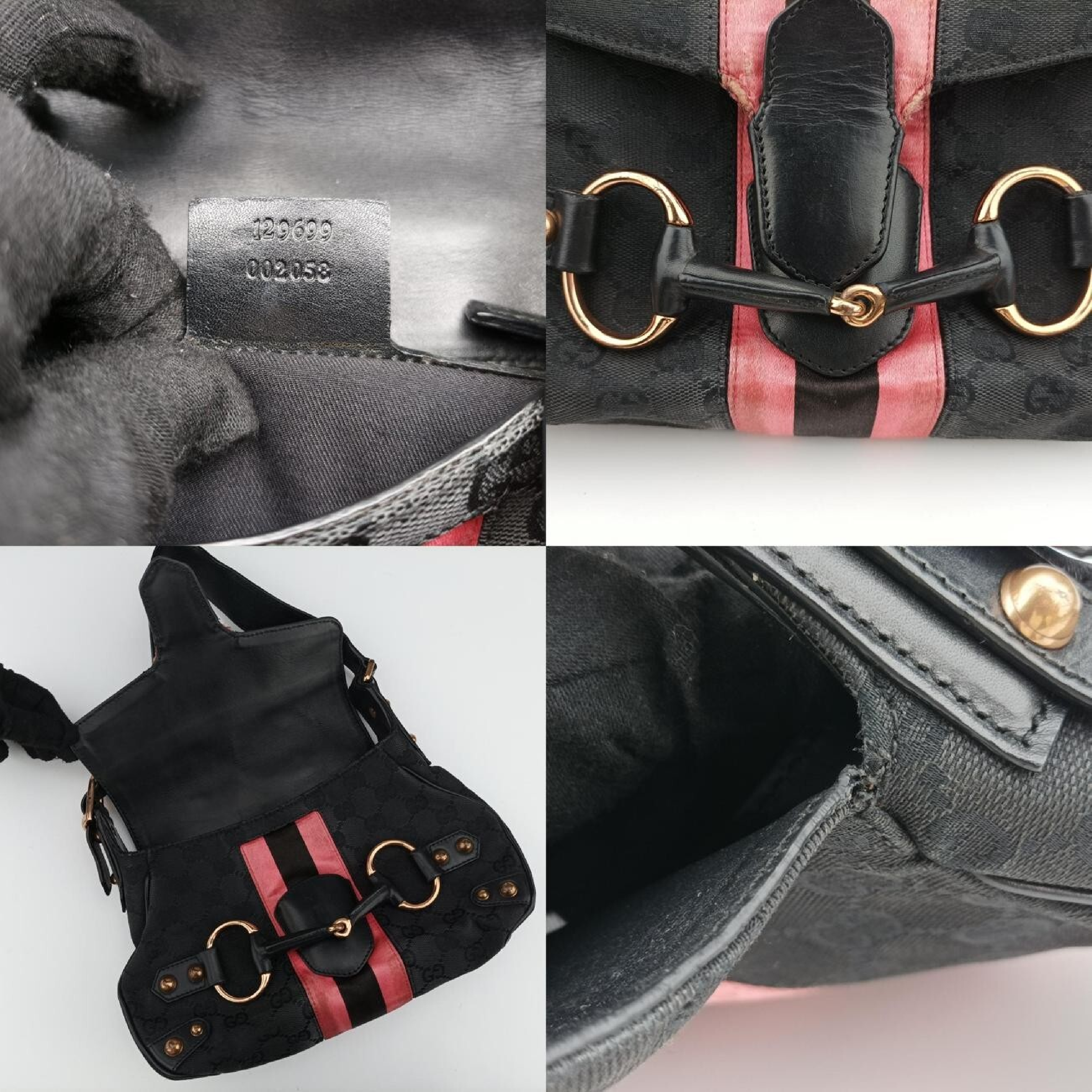 (10979_1425)GUCCI GGキャンバス ホースビットブラックキャンバス×ベロア129699 ショルダーバッグ
