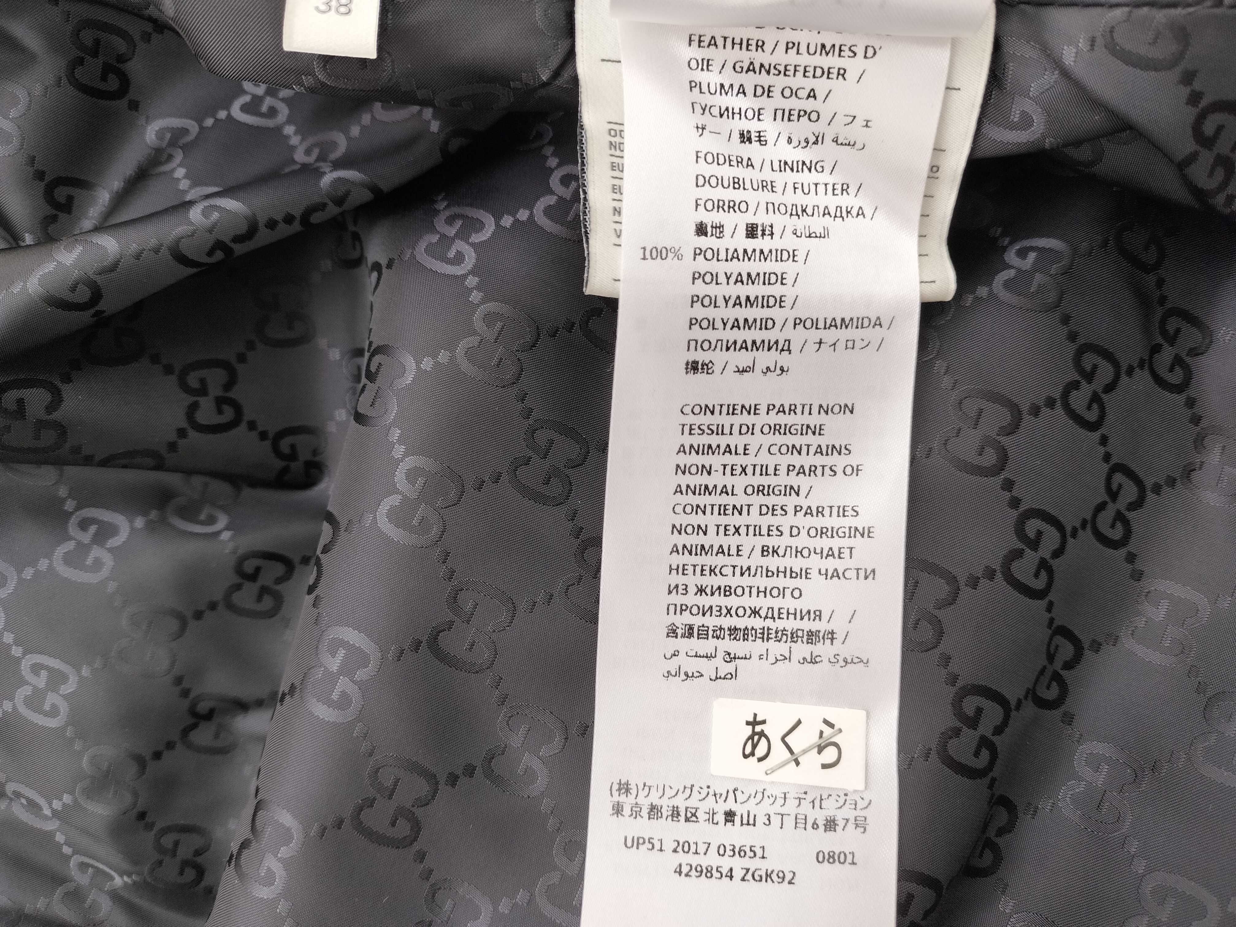 (I_1367)GUCCI GUCCI ダウンジャケット レザーマーク付き ブラック 38 ジャケット