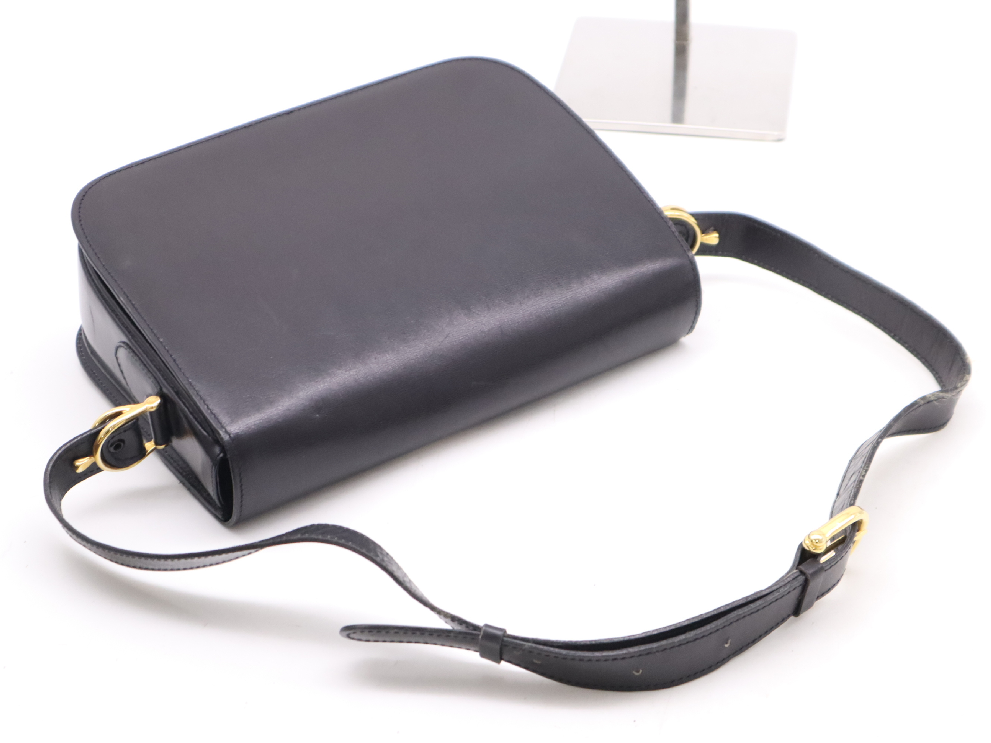 (10979_1667)CELINE レザーショルダーバッグ 馬車金具 ブラック 保存袋付 ショルダーバッグ