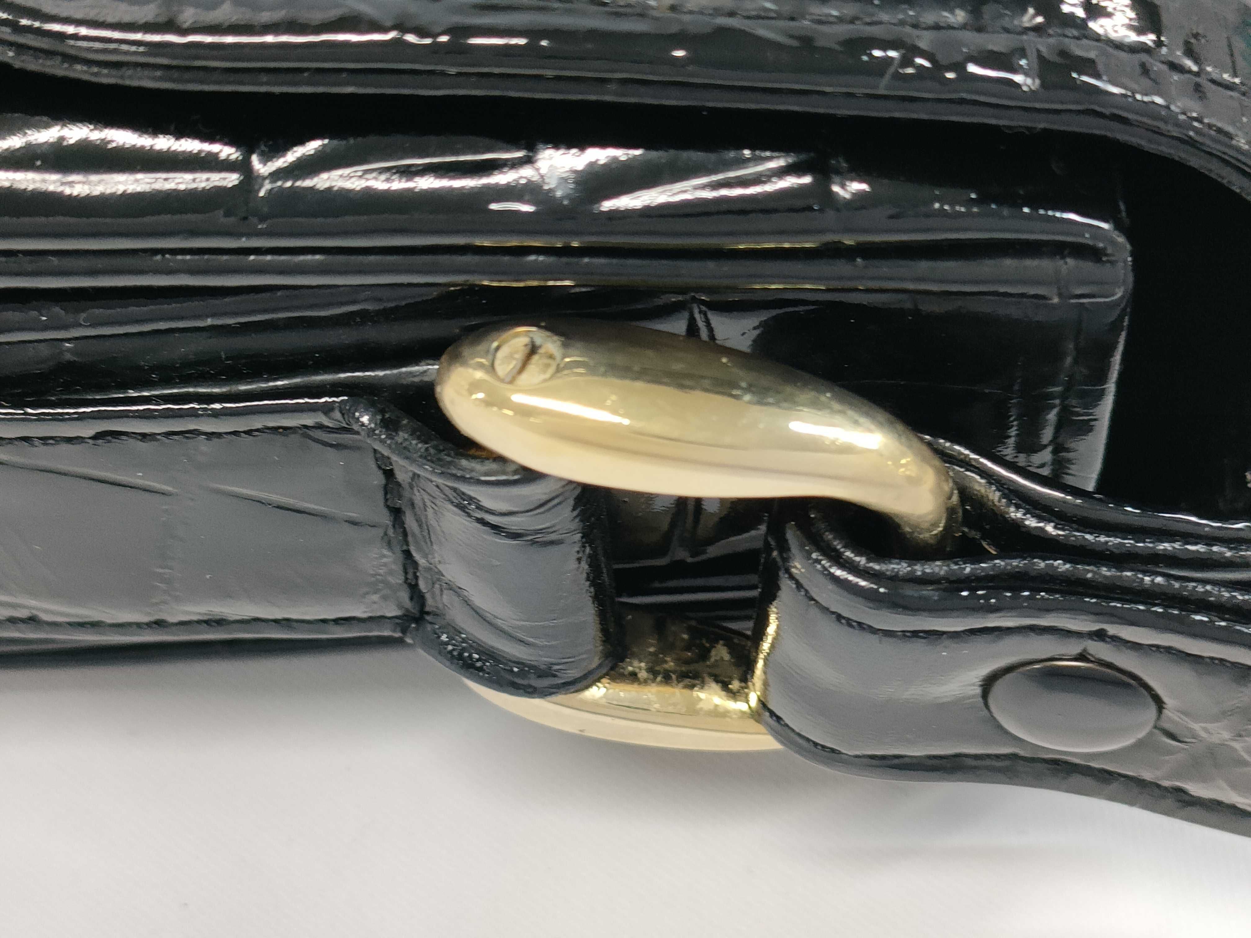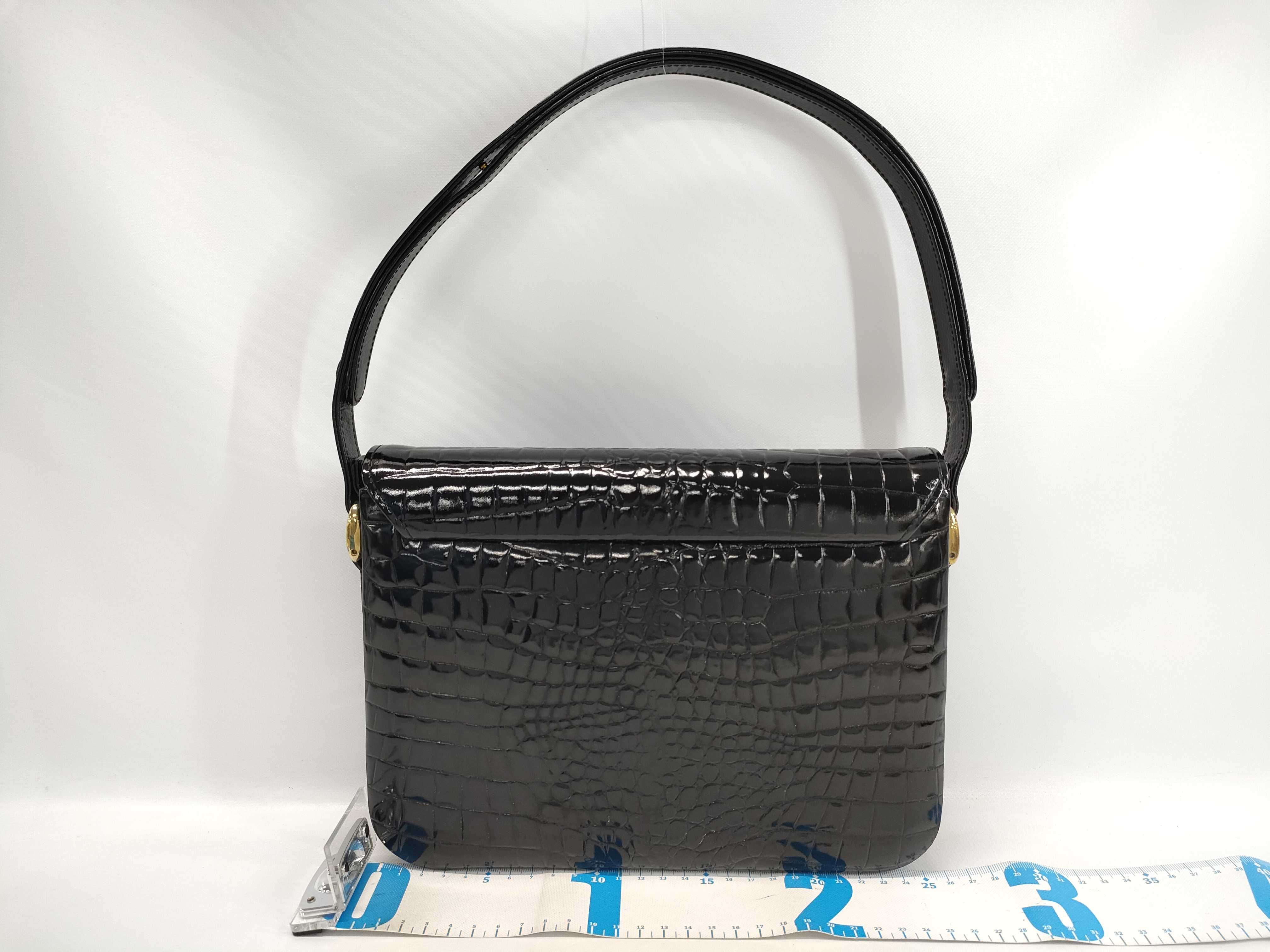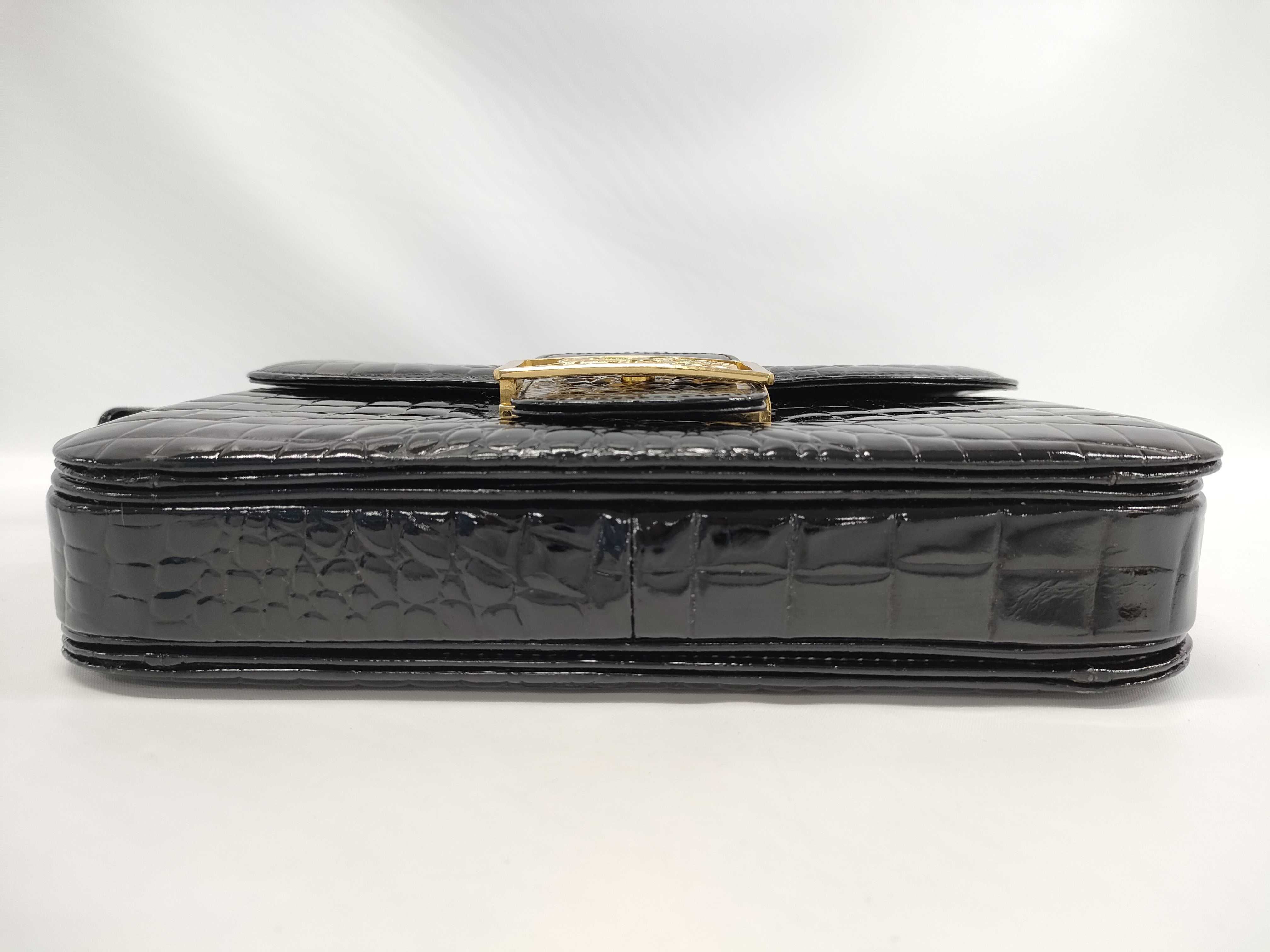 (10979_1671)▼CELINE クロコダイル 馬車金具 ブラック バッグ