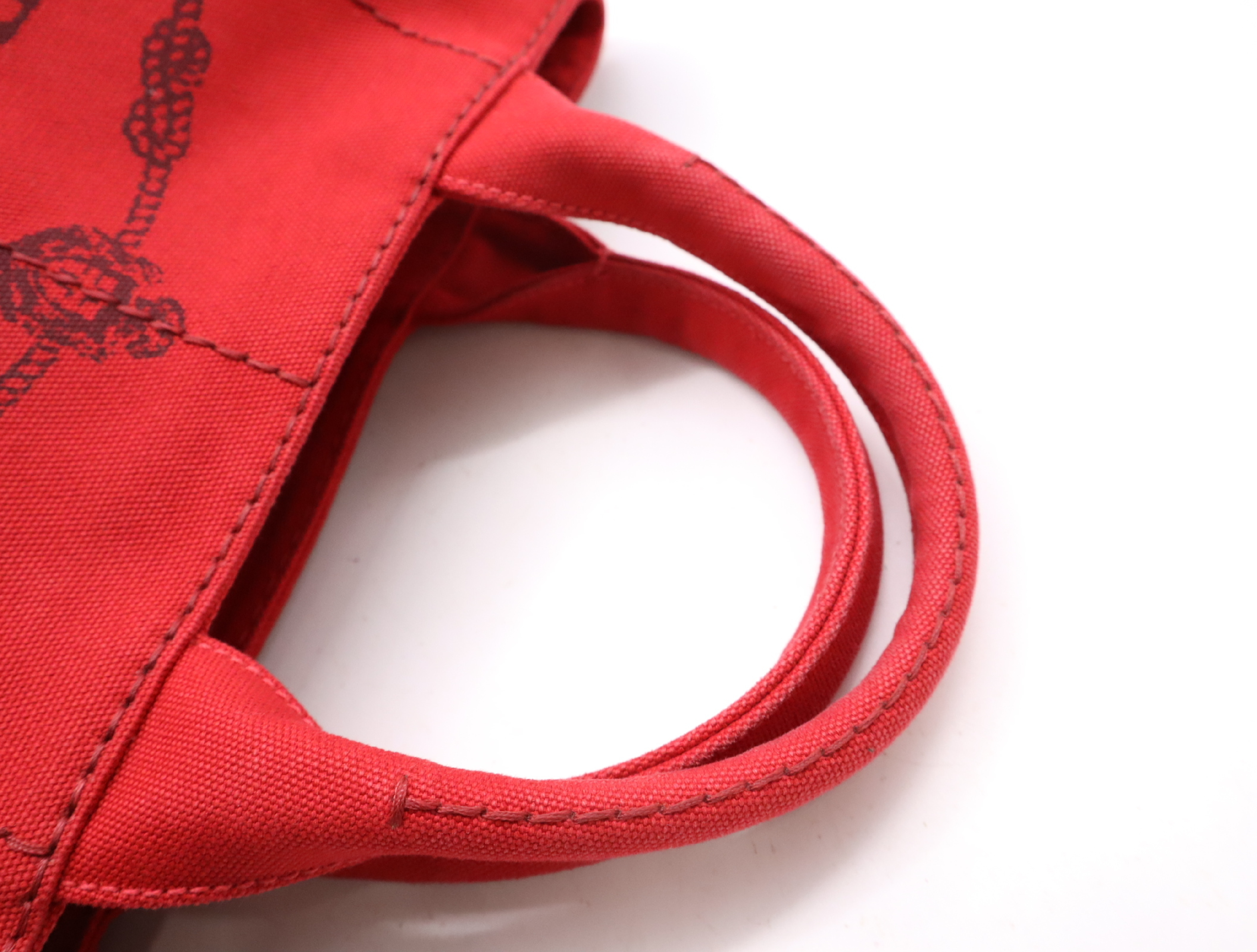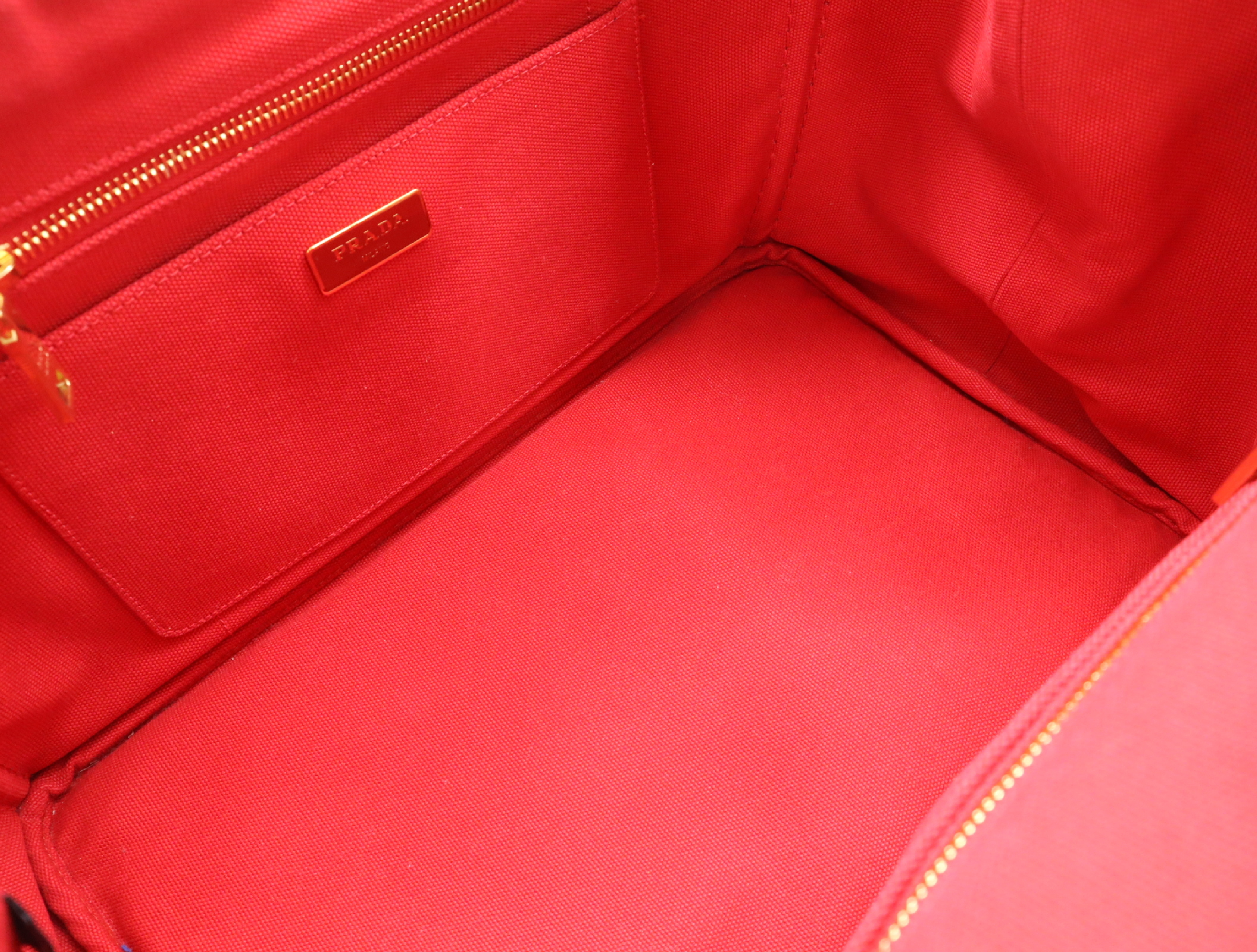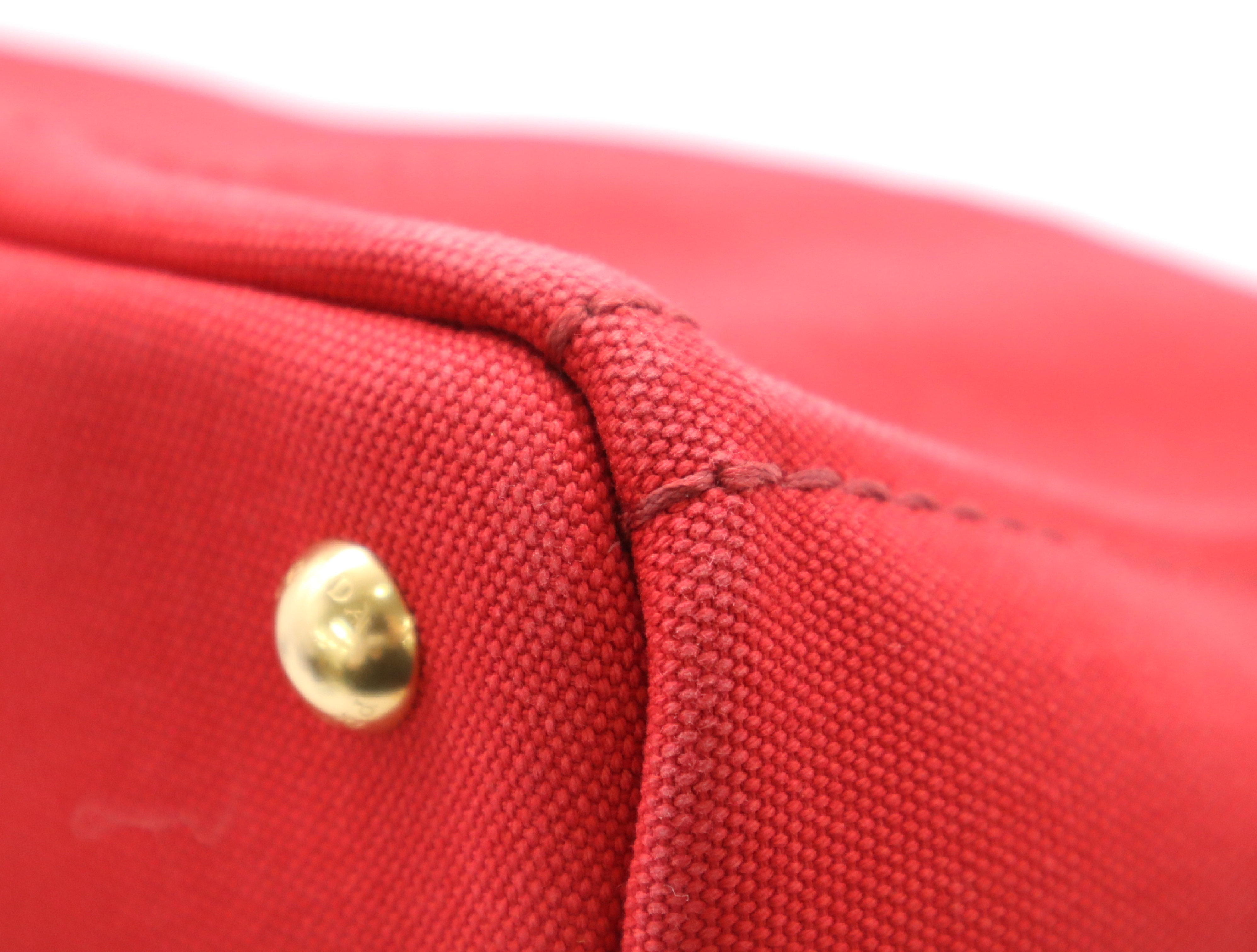 (10979_1741)PRADA キャンバスカナパトート レッドショルダーストラップ付 トートバッグ