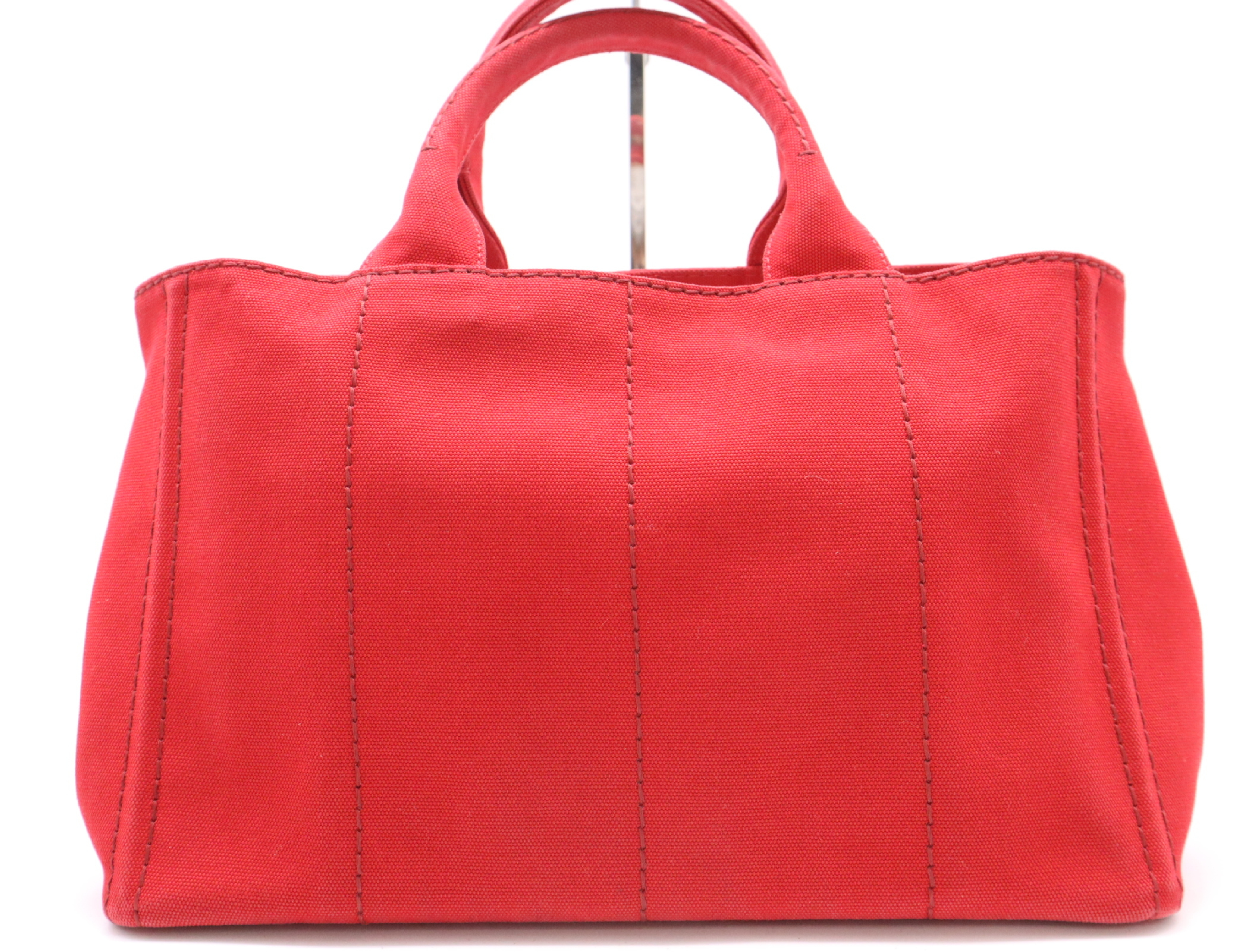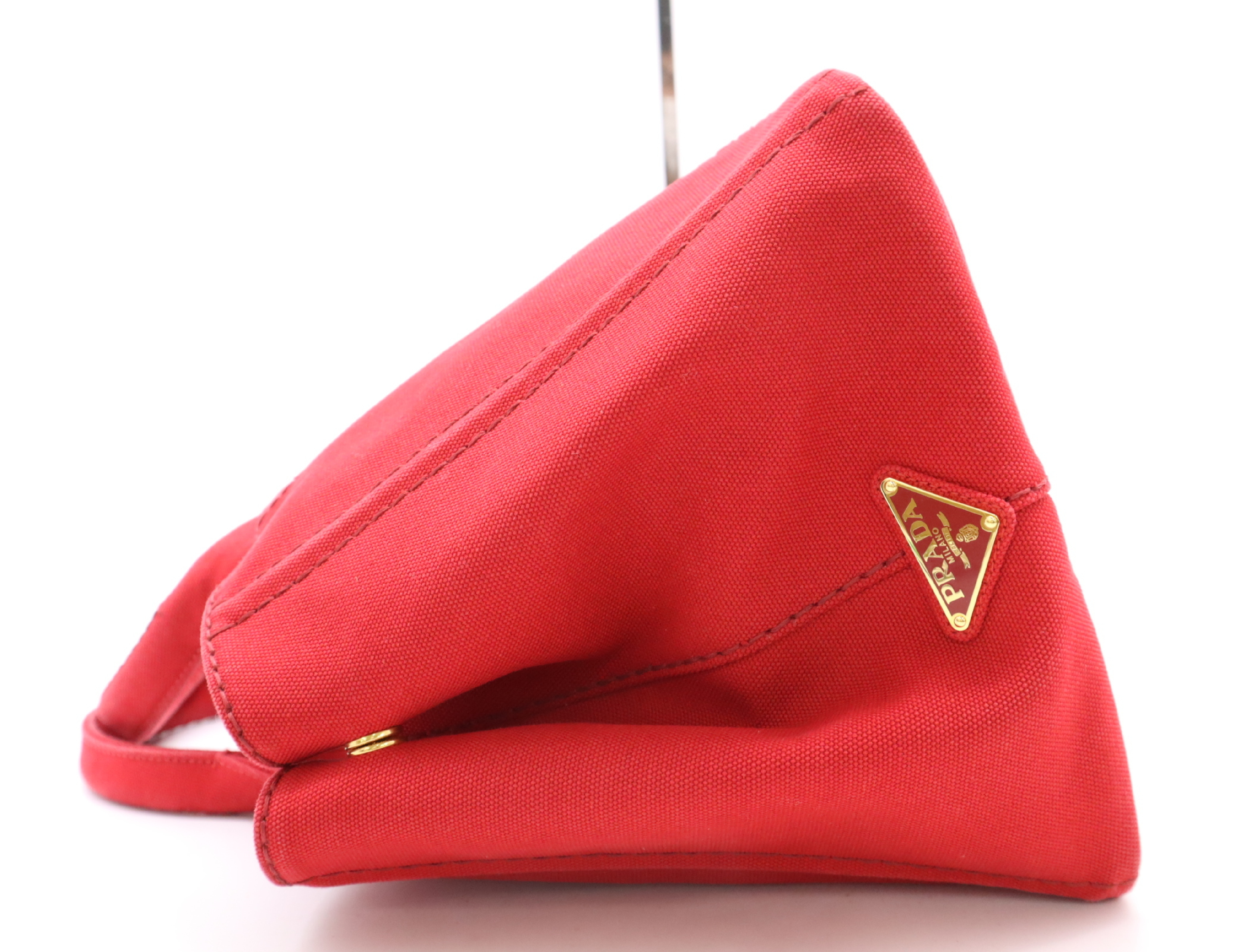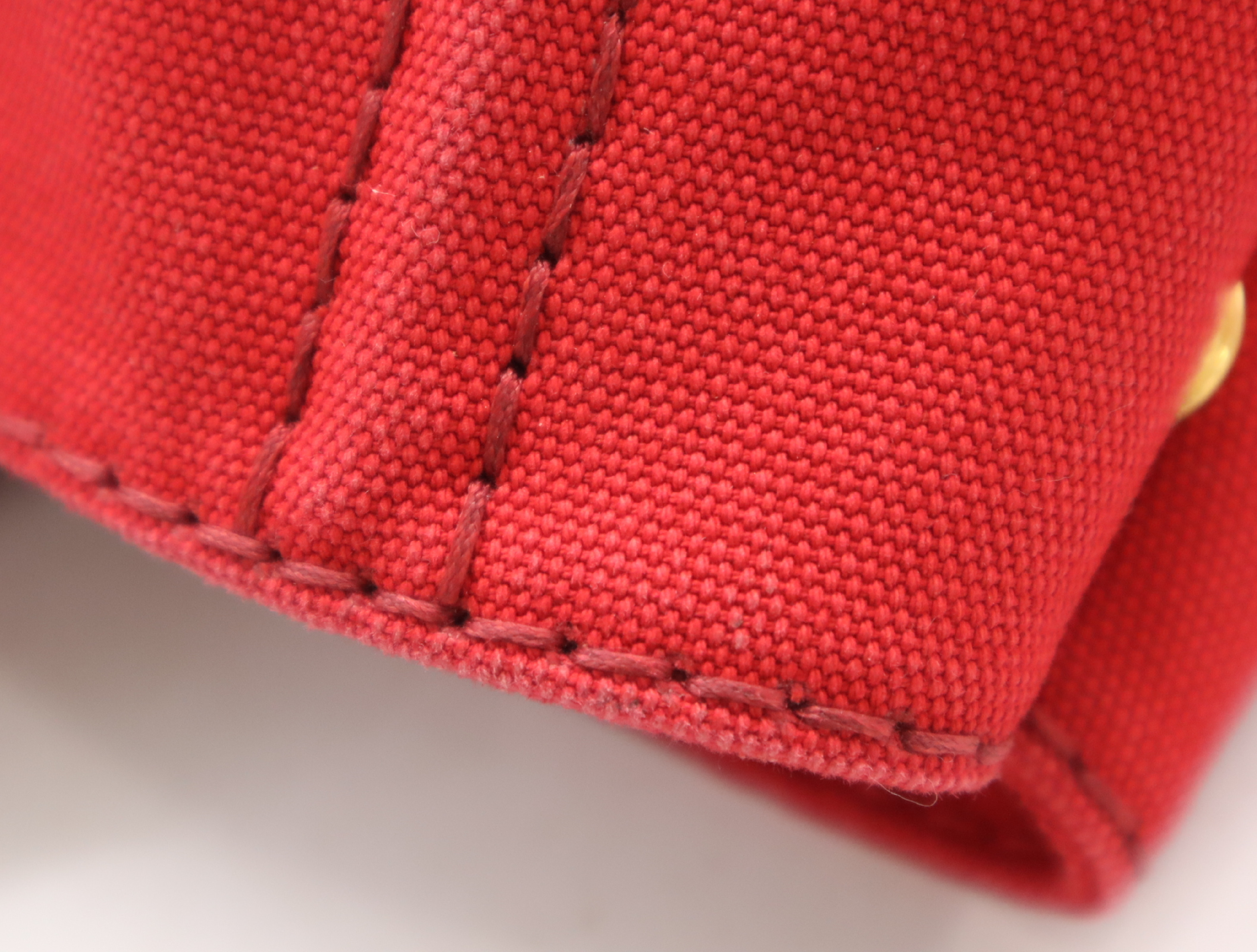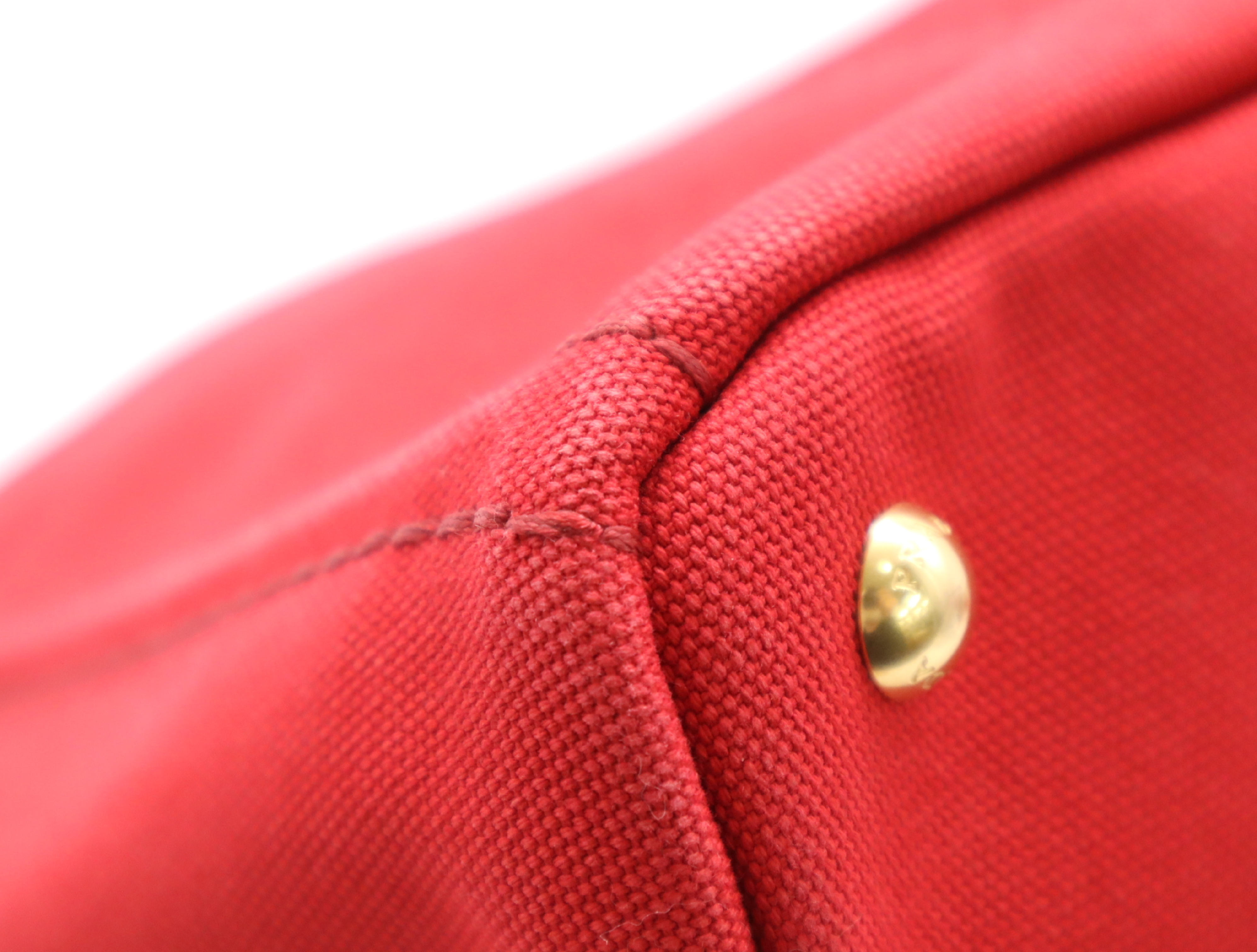(10979_1741)PRADA キャンバスカナパトート レッドショルダーストラップ付 トートバッグ