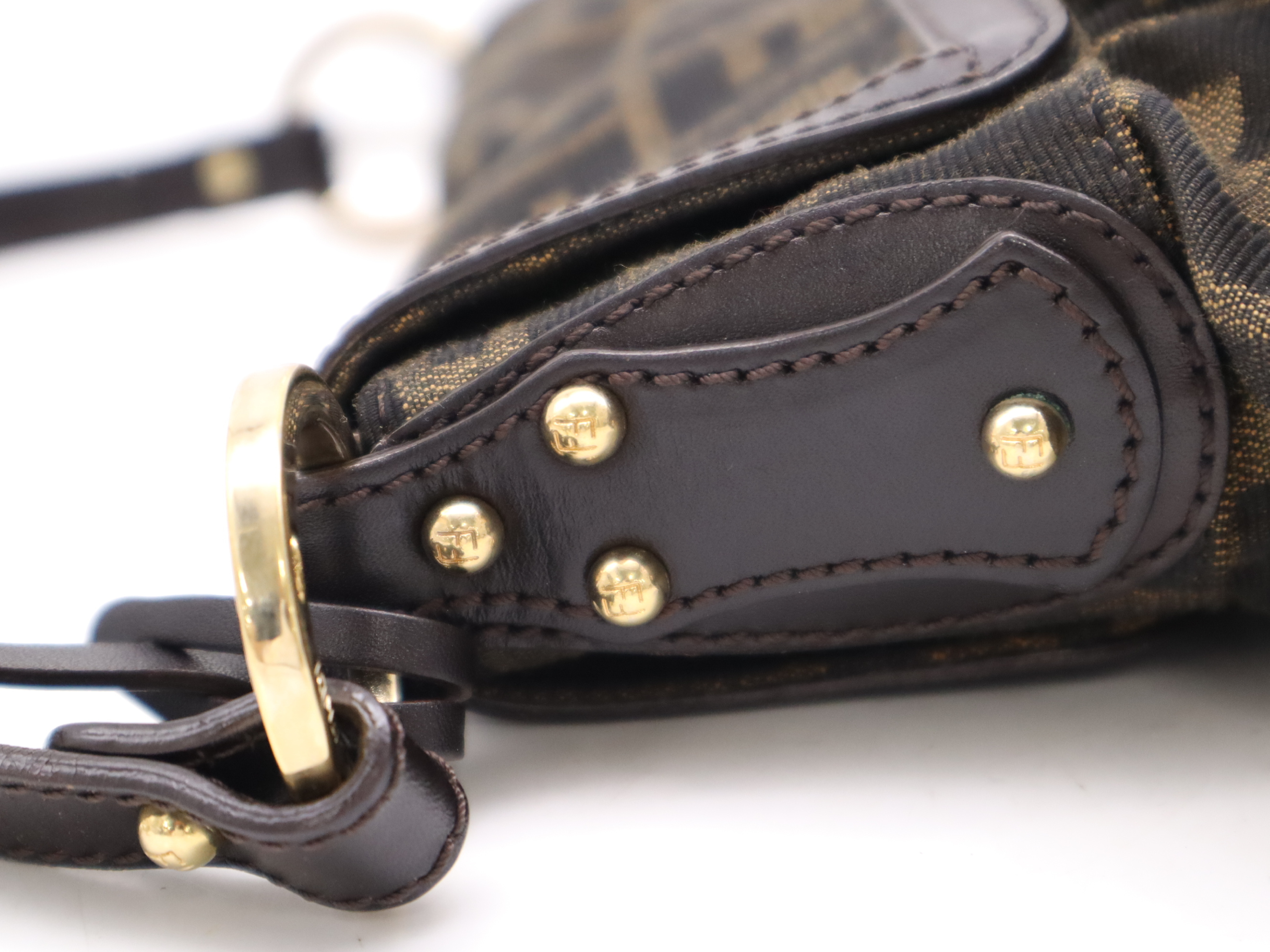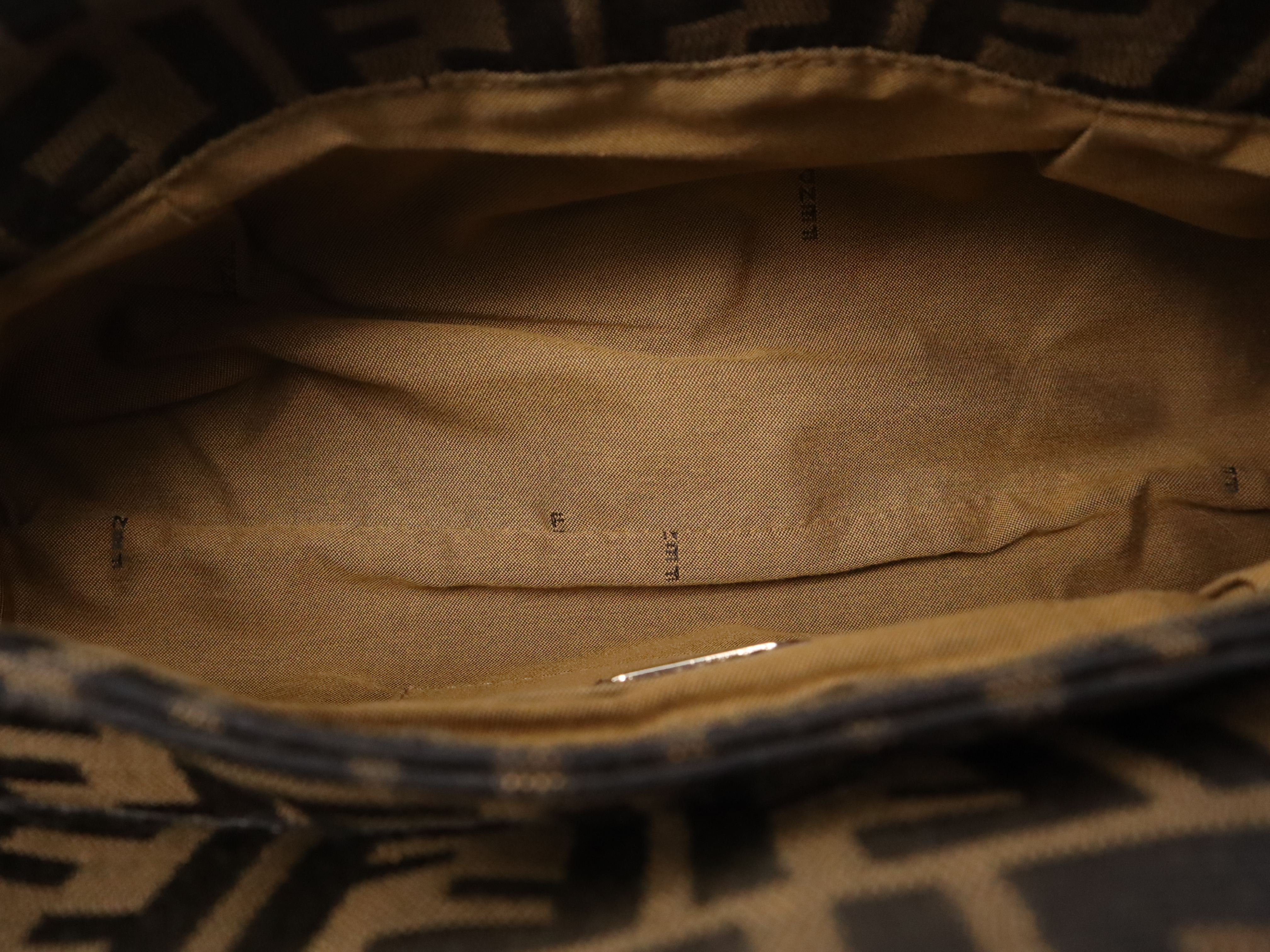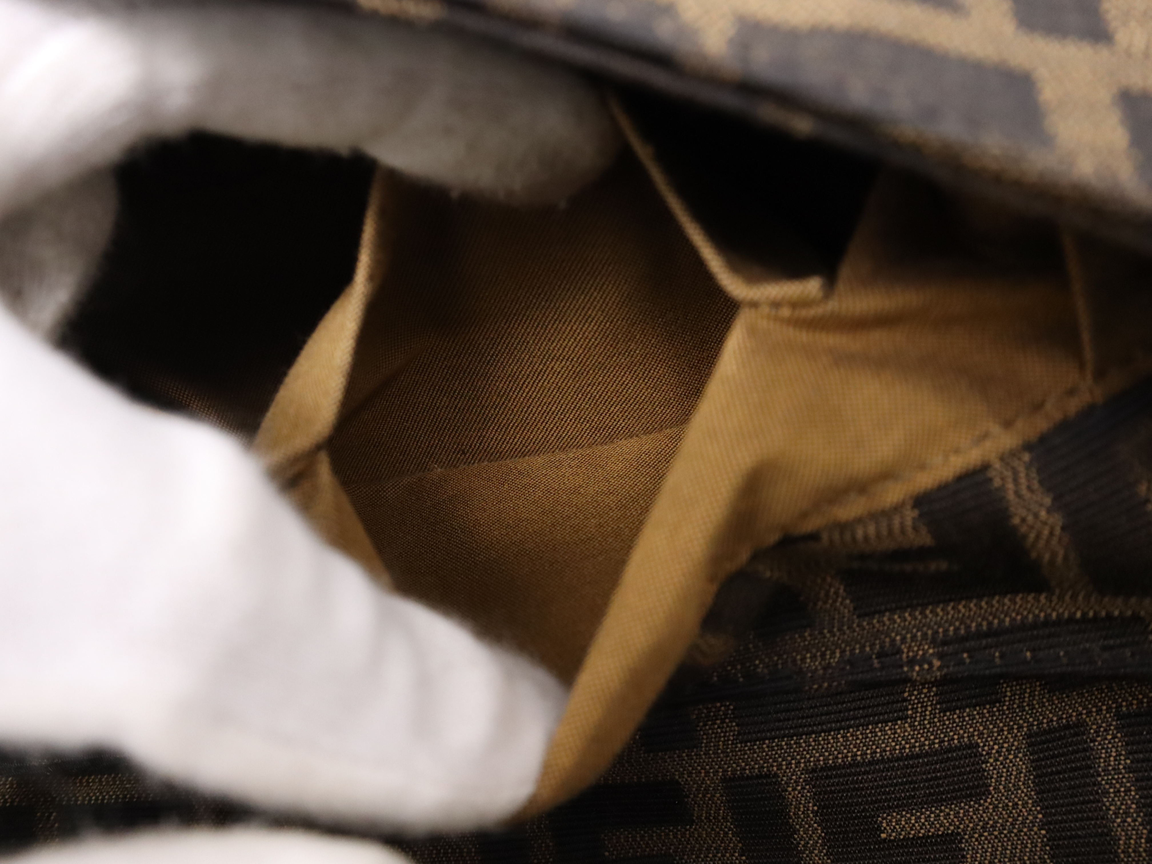 (10979_1976)FENDI ナイロンズッカ柄 シェフバッグ ブラウン ハンドバッグ