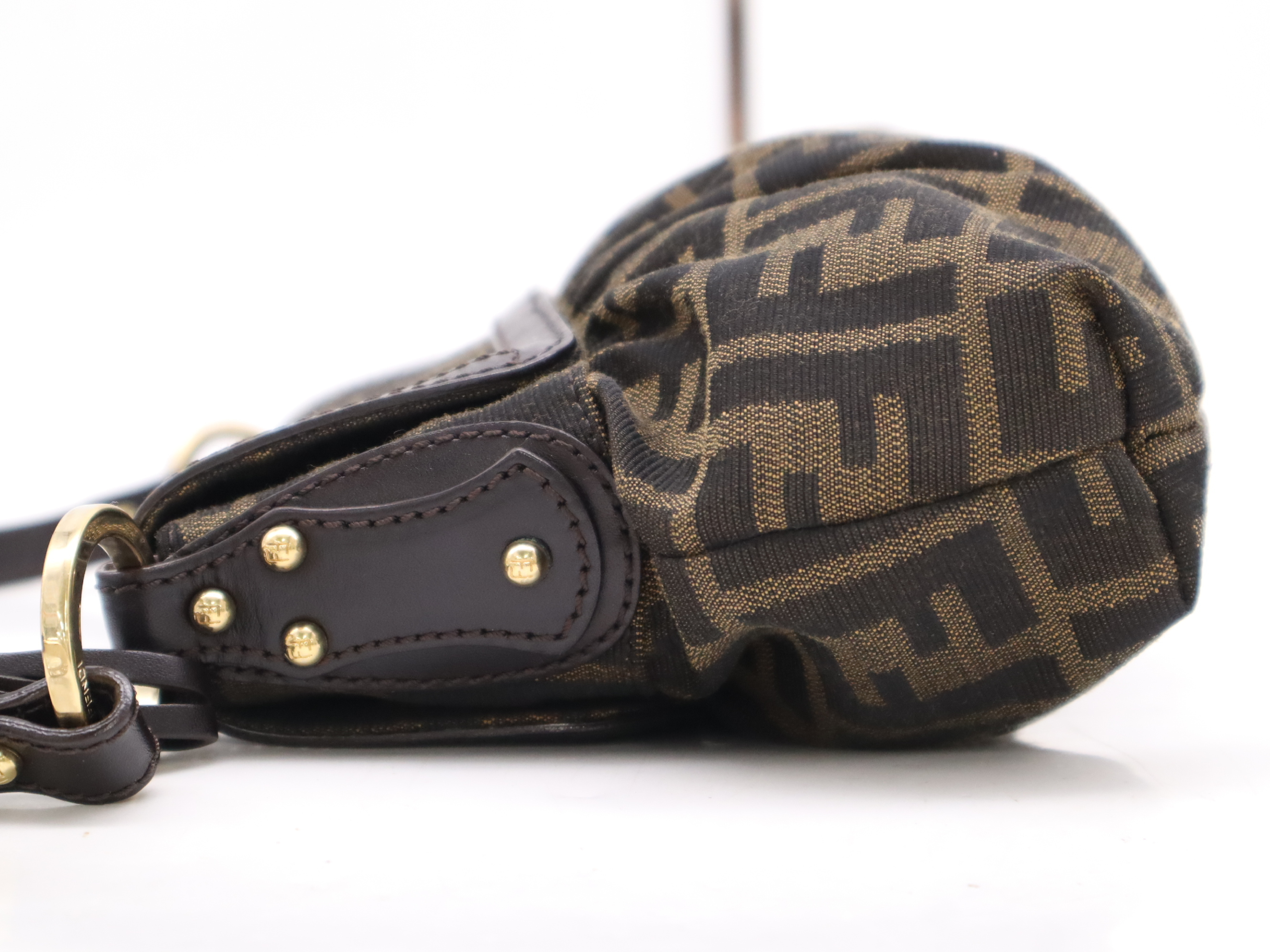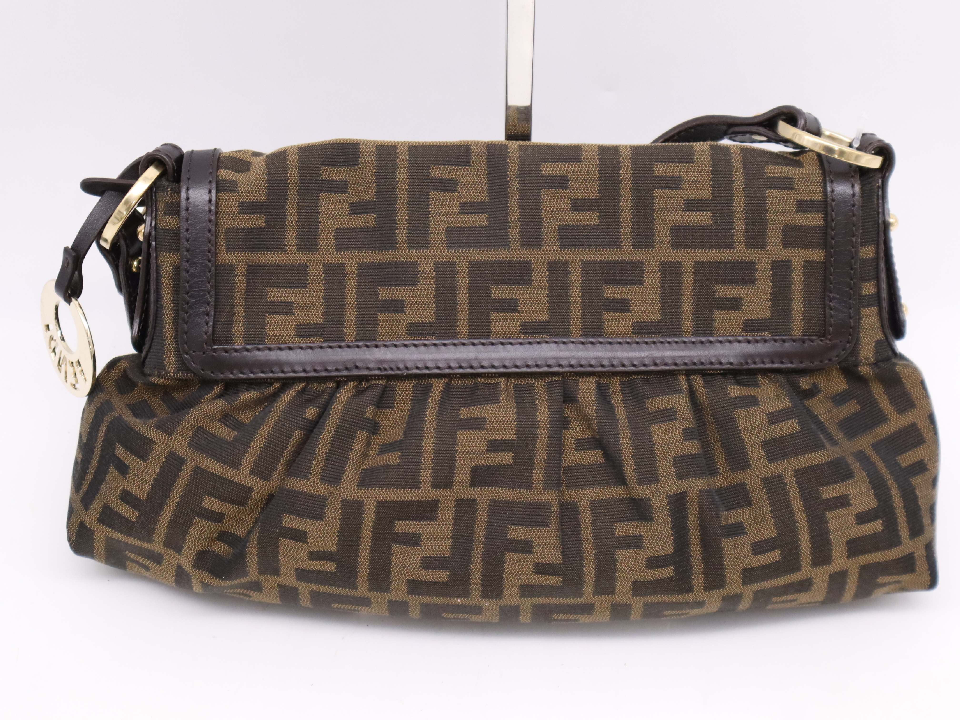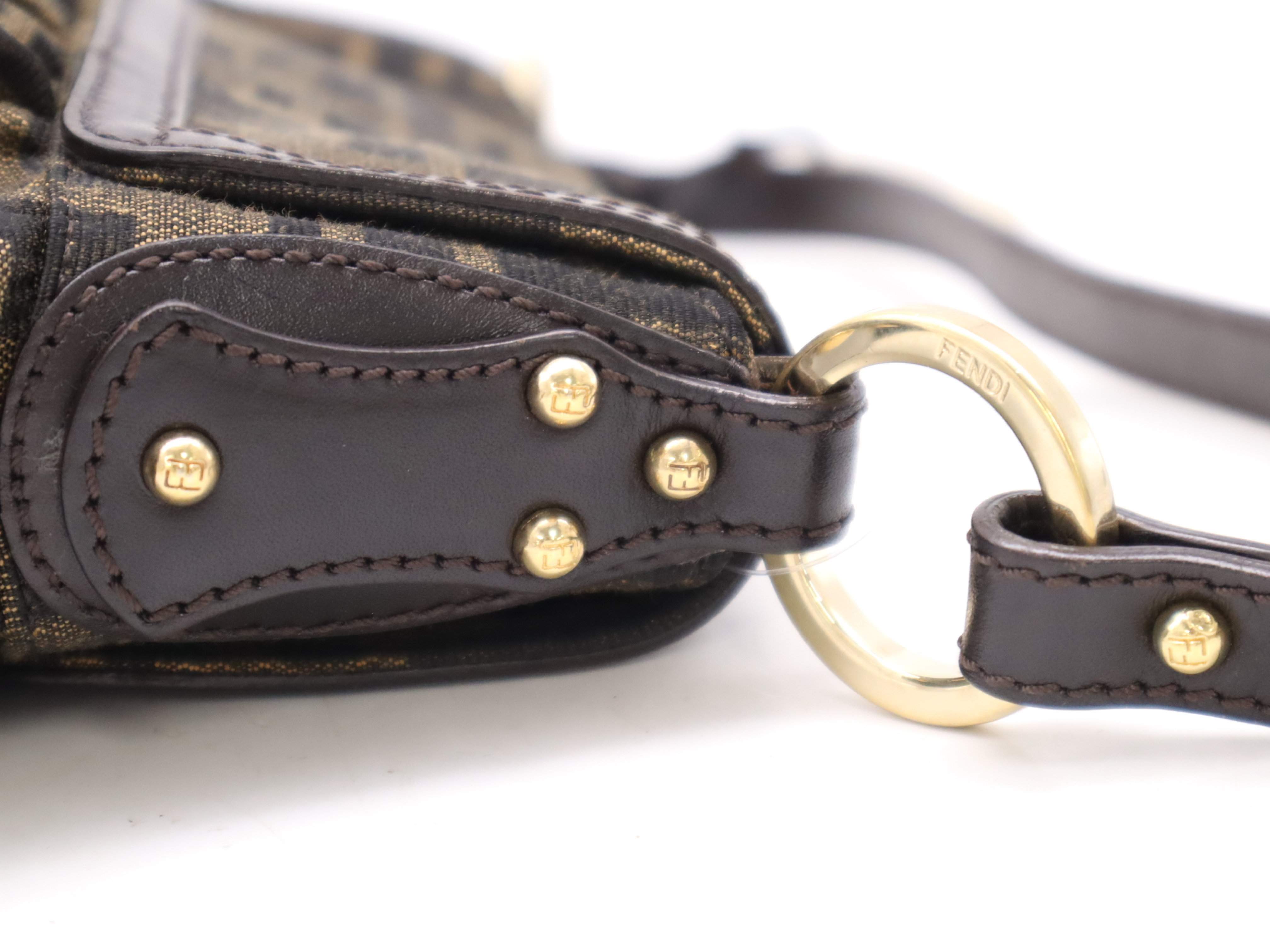 (10979_1976)FENDI ナイロンズッカ柄 シェフバッグ ブラウン ハンドバッグ