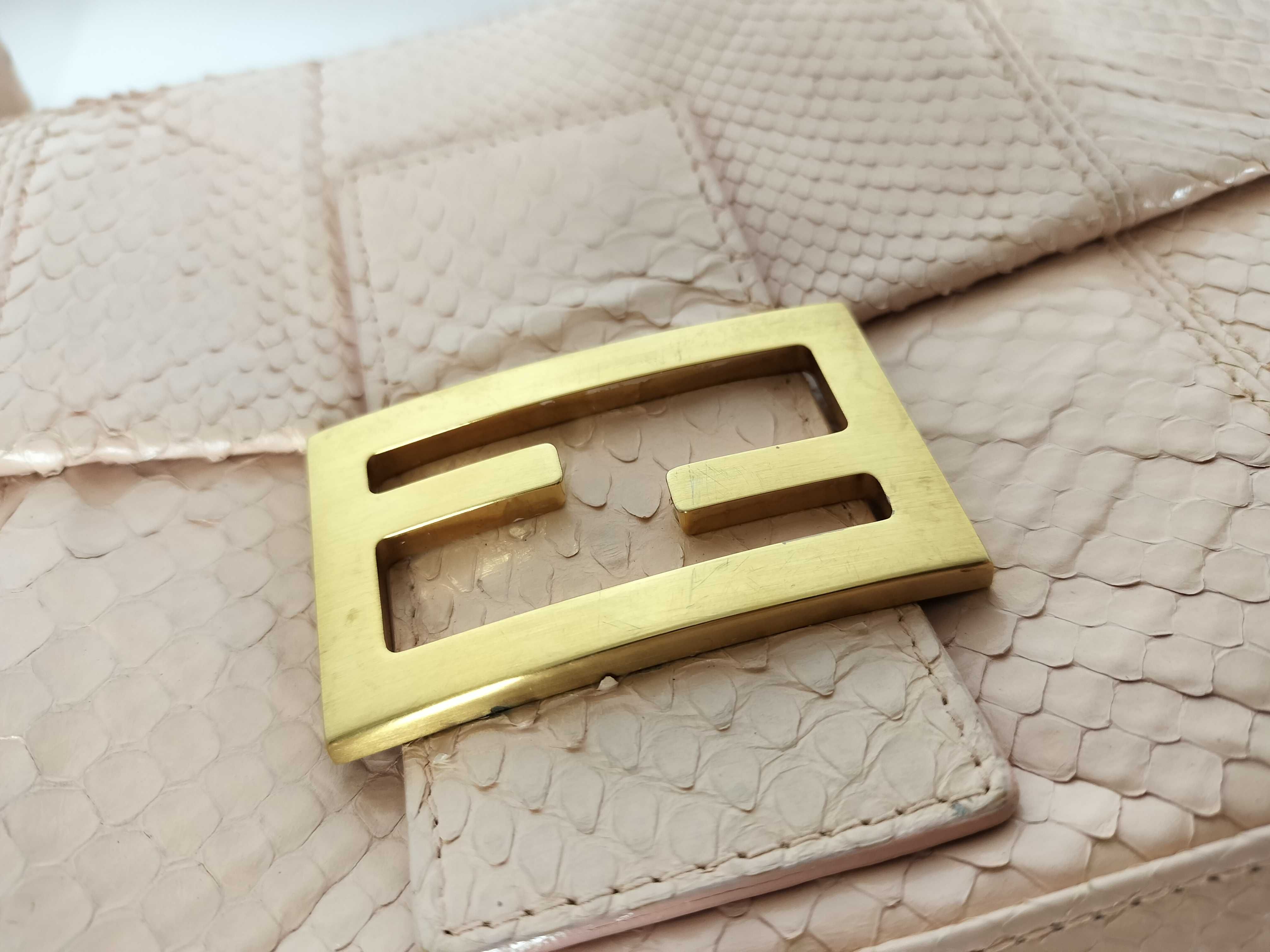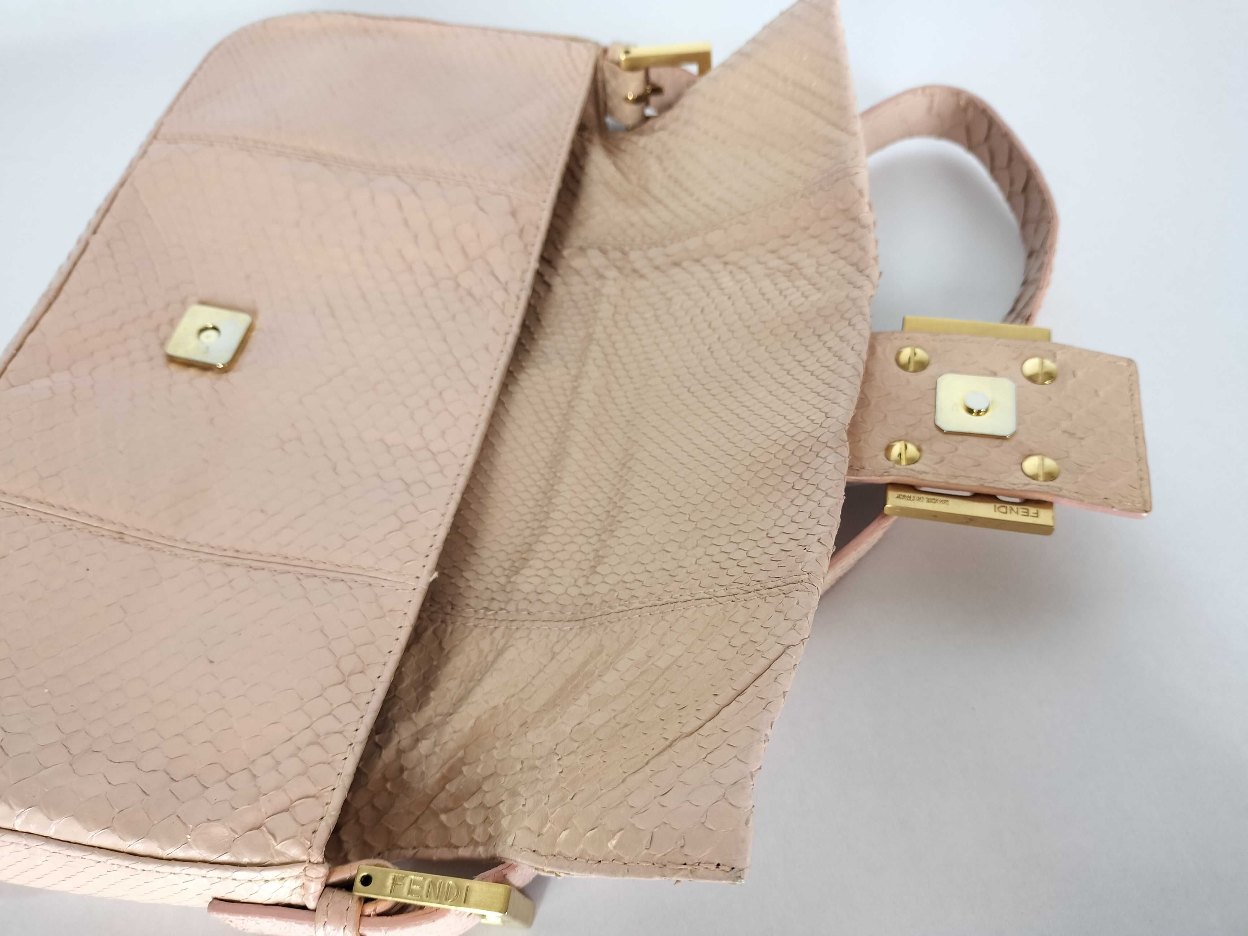 (10979_2023)FENDI マンマ FENDI マンマバケット ハンドバッグ 8BR000 ピンクベージュ パイソン ハンドバッグ