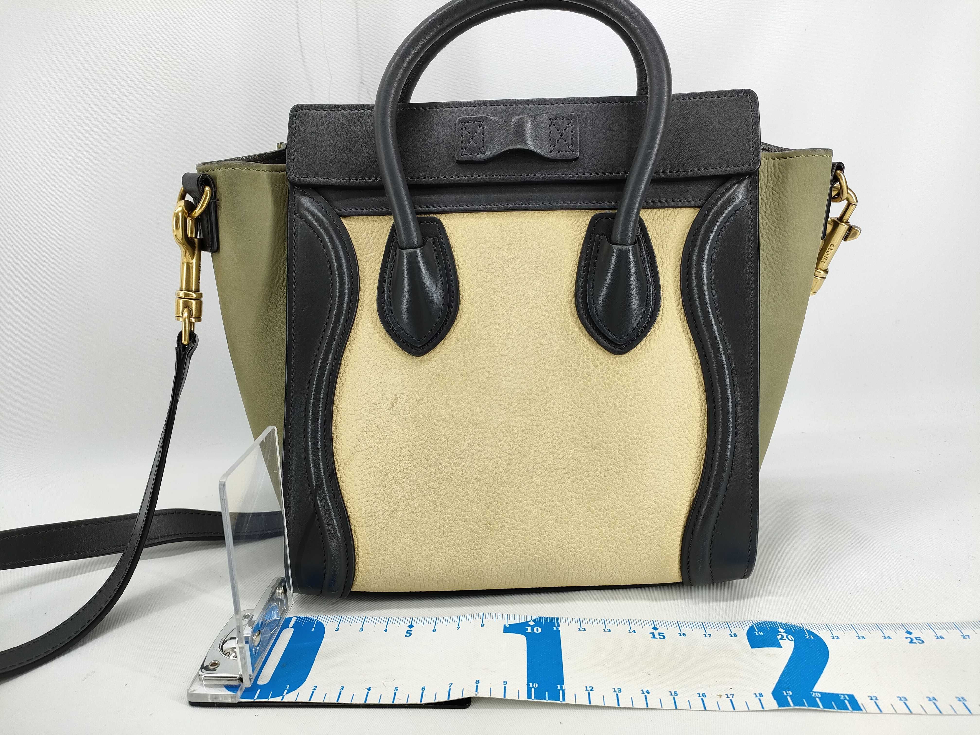 (10979_2111)CELINE CELINE セリーヌ ブラック ベージュ カーフ ナノ ラゲージ 2WAY ハンドバッグ ショルダーバッグ 168243AAC.15LK ハンドバッグ