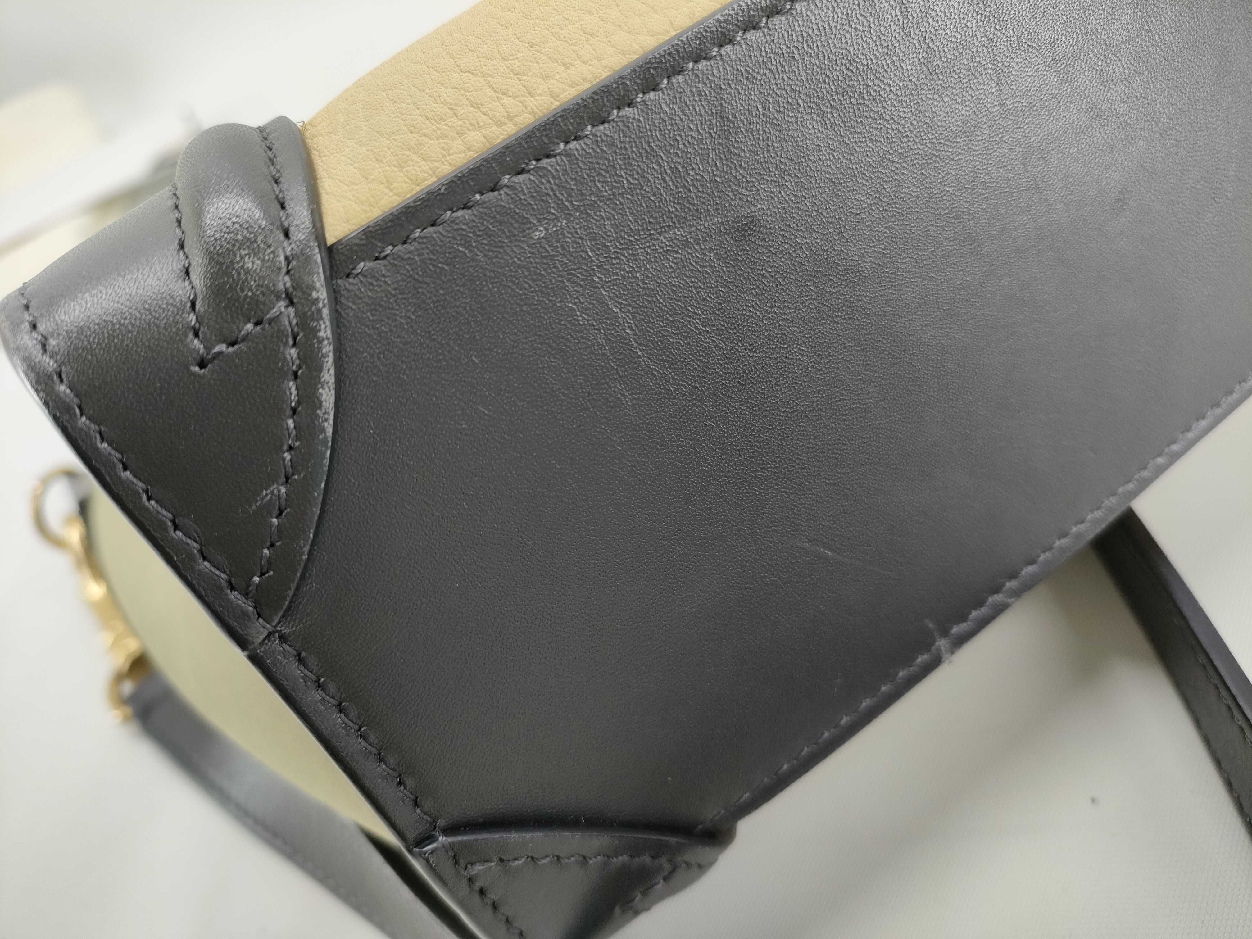 全体ヤケ汚れ(小) スレ傷(中) 型崩れ(小) 持ち手ヨレ(小) 付け根ヨレヒビ(小) 角スレ(小) 金具傷ハゲ(小) 縁スレヒビ(中)【付属品