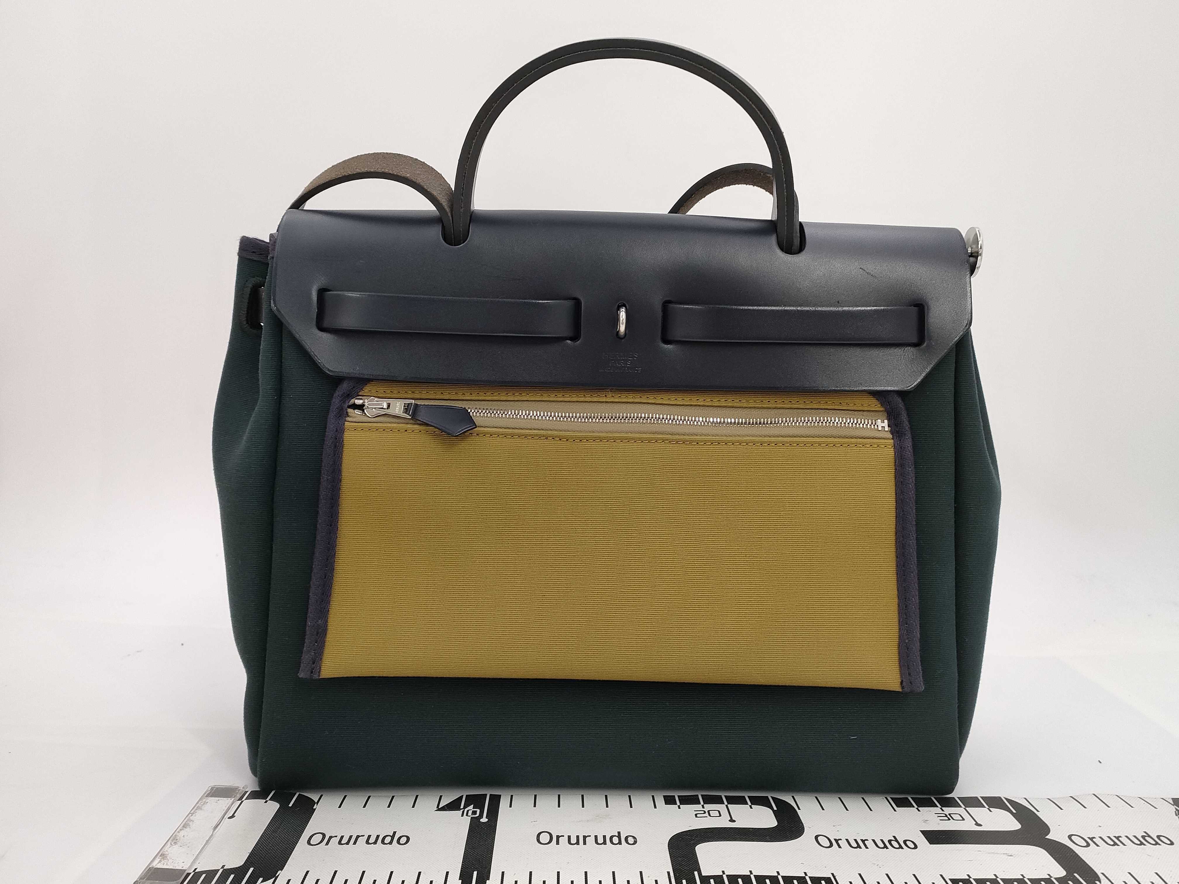 (A_0039)HERMES エルメス エールバッグ 31 ネイビー キャンバス カーフ SV金具 Z刻印 2WAY ショルダーバッグ