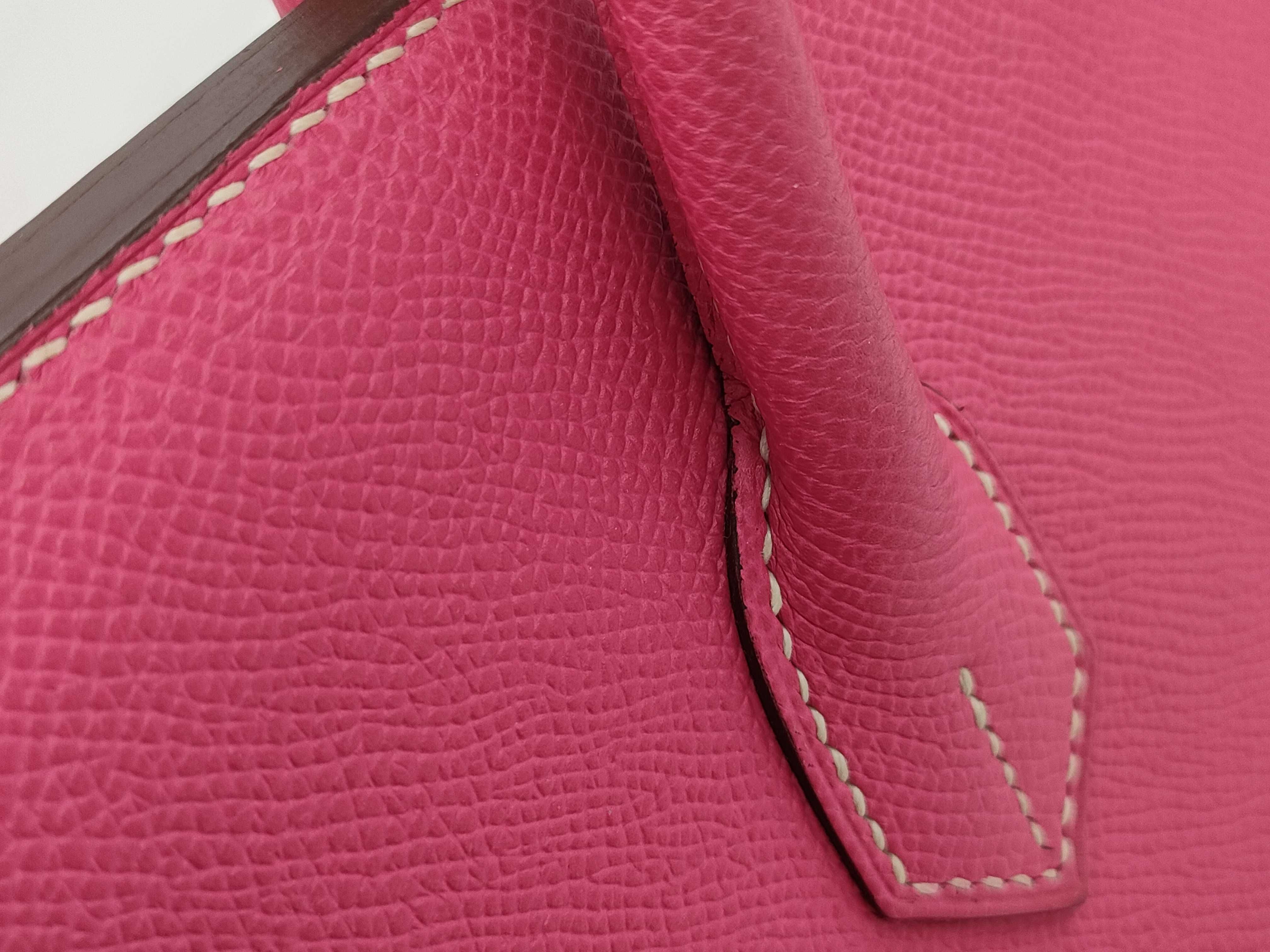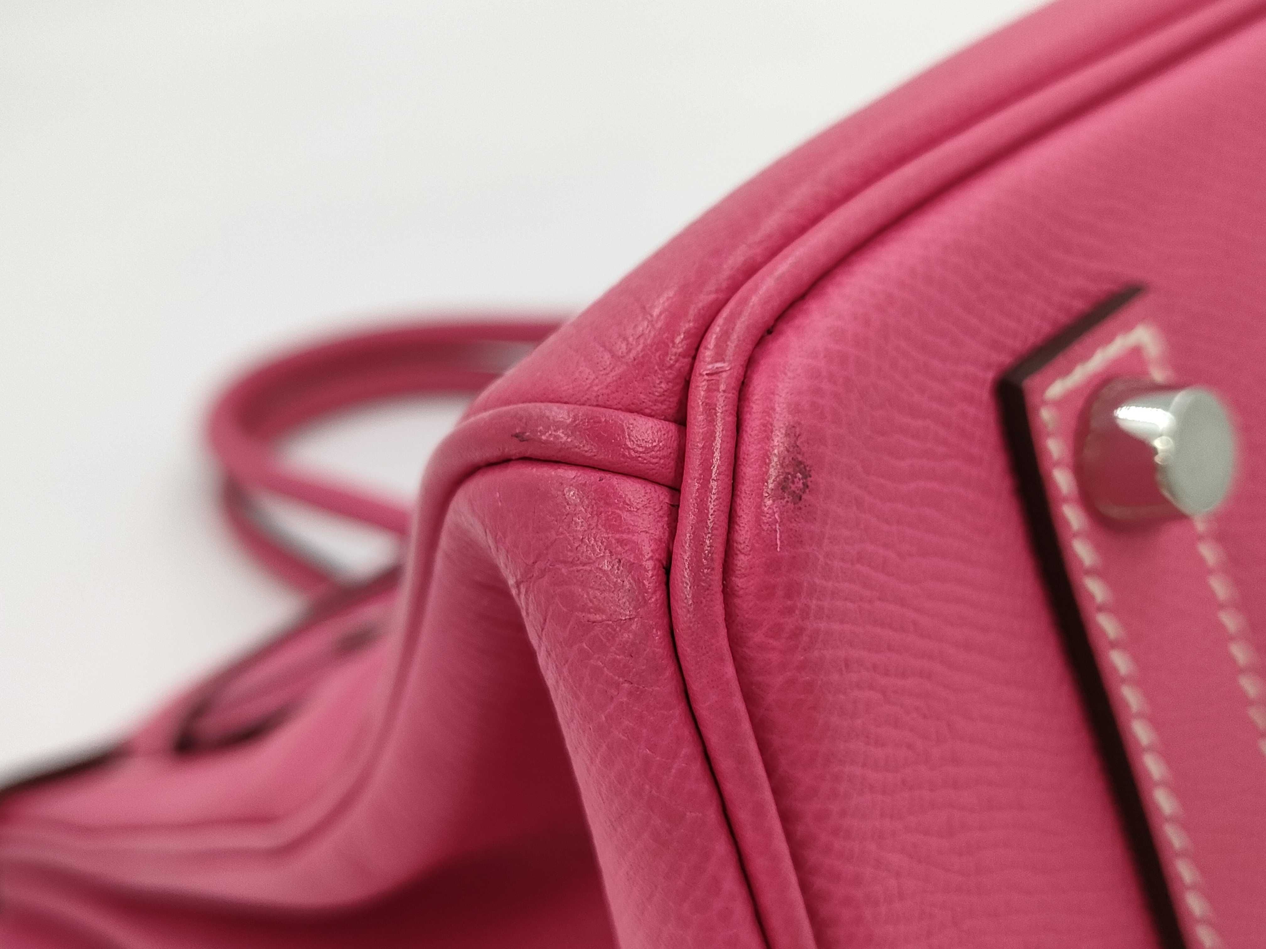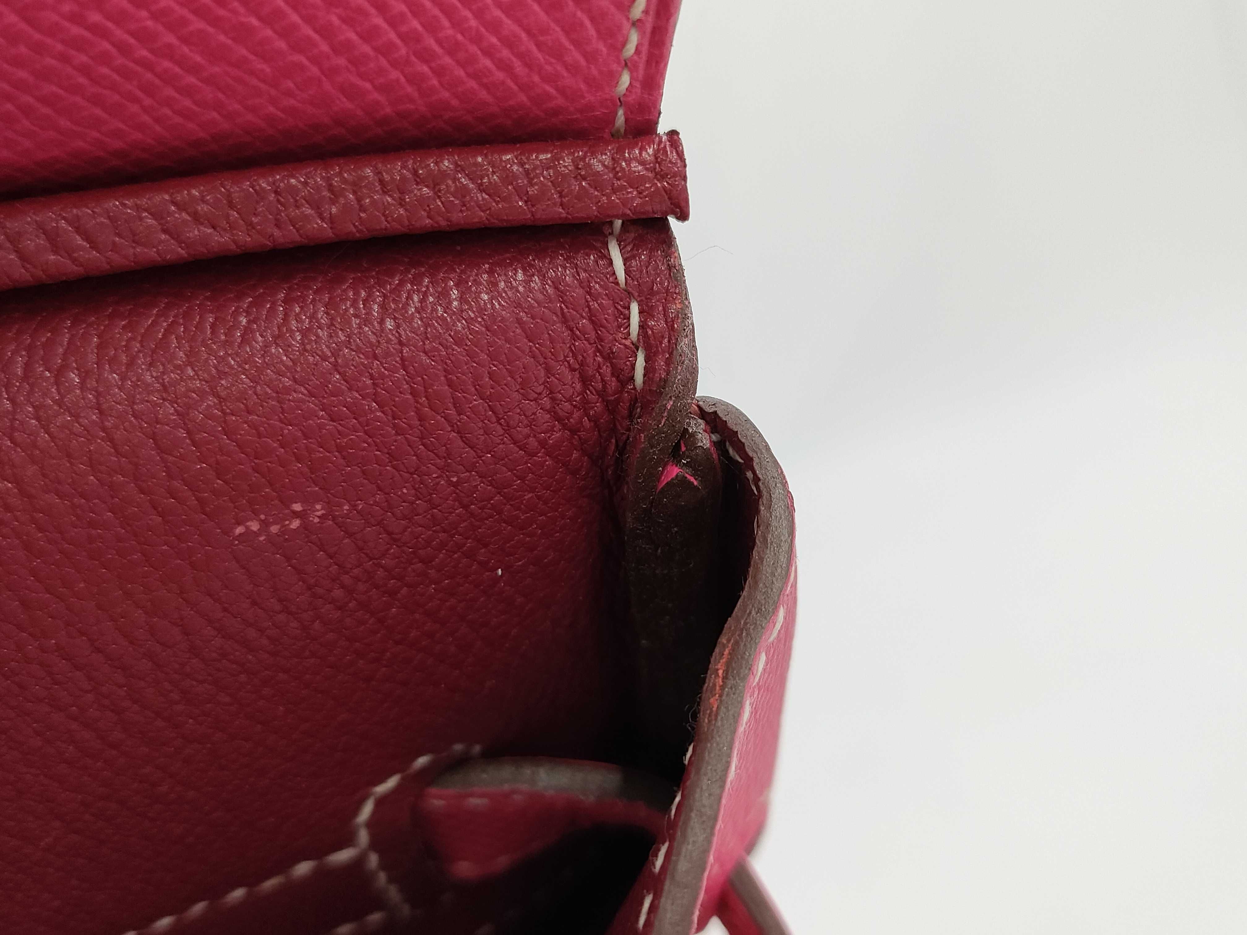 全体擦れ傷(小) 角縁擦れ汚れ(中) 補色有 金具擦れ傷(中) 持ち手擦れ汚れ(小) 間口縁コバ割れ(小) 内側擦れ傷(小) 内ポケット汚れ(小) 【刻印有