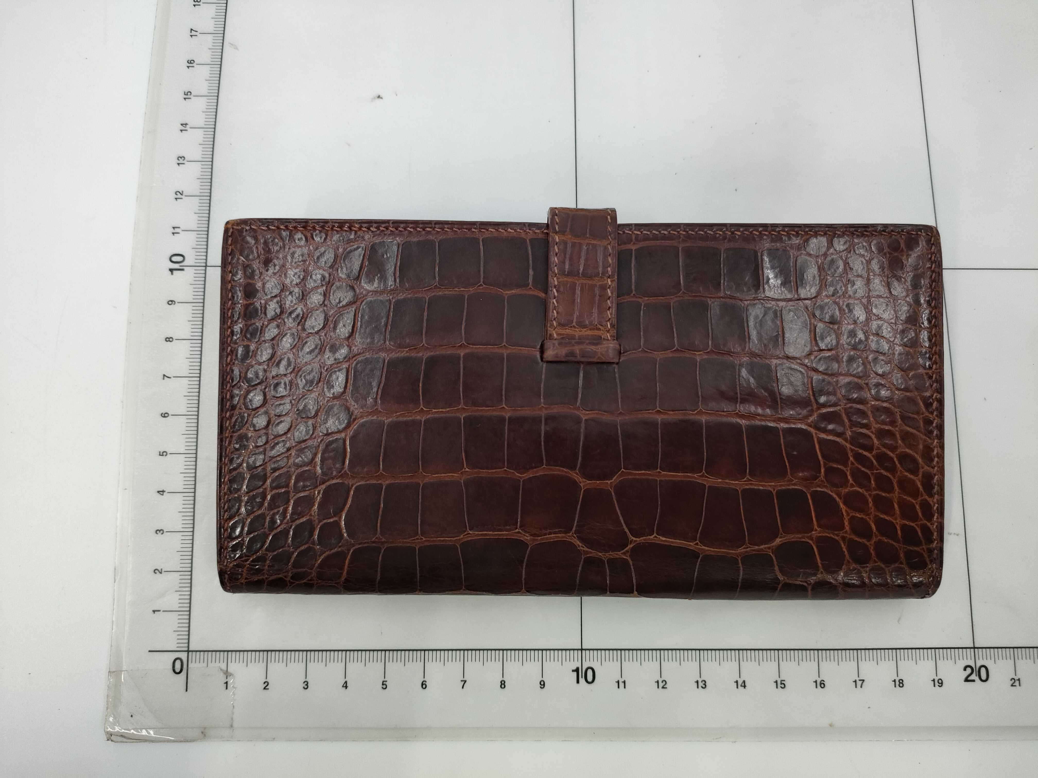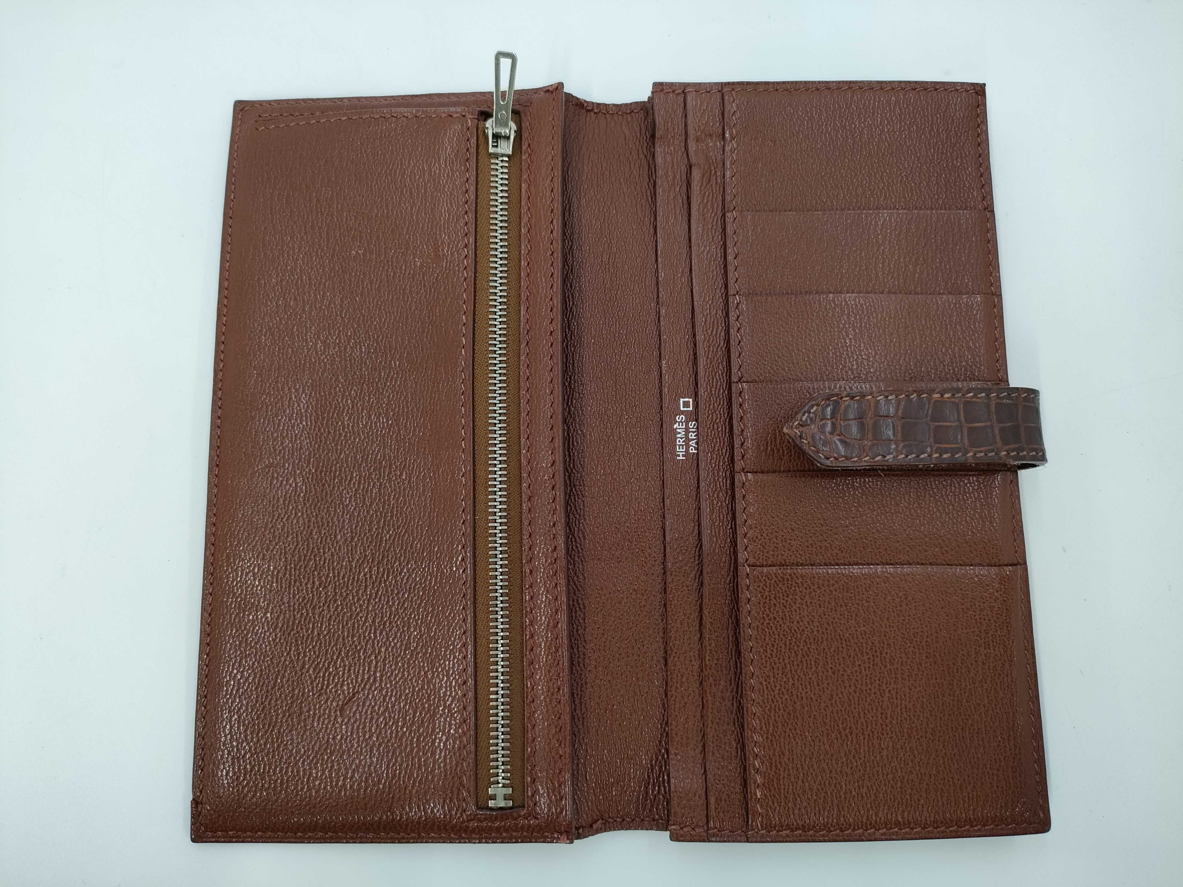 (A_0070)▼HERMES ベアンスフレ アリゲーター 茶色 箱 財布