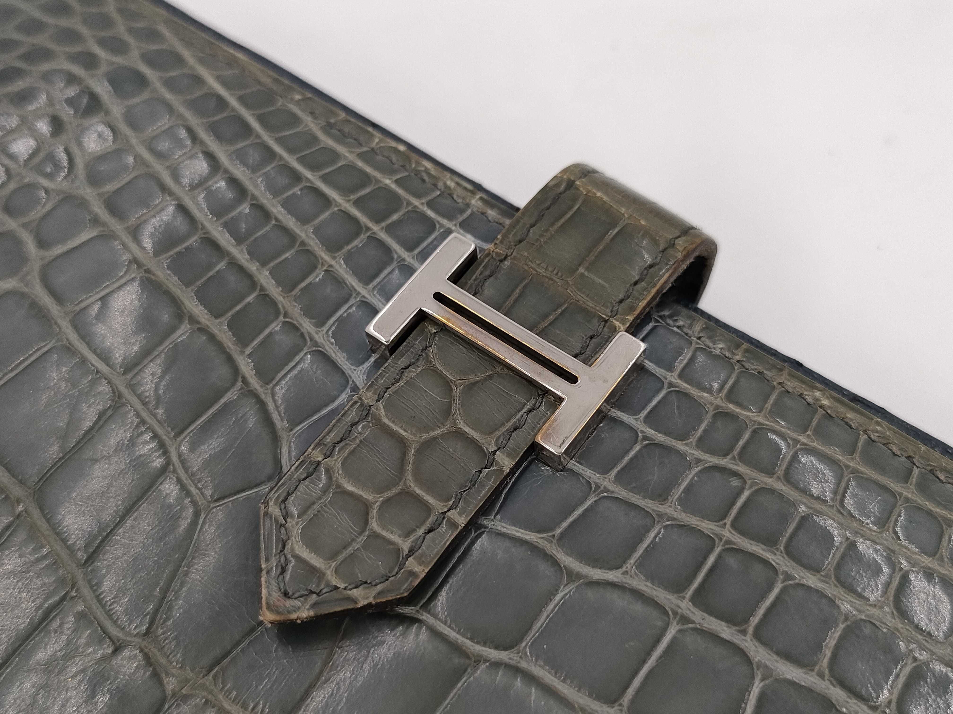 (A_0071)▼HERMES エルメス ベアンスフレ クロコ □P 財布